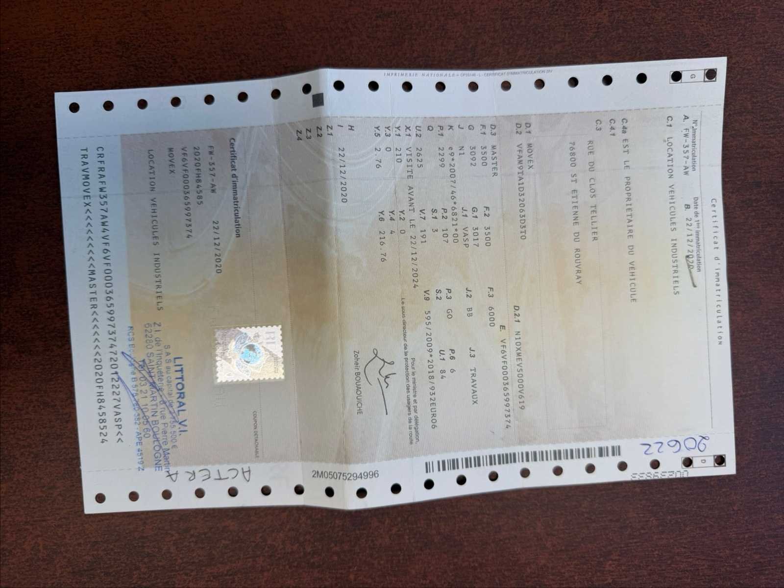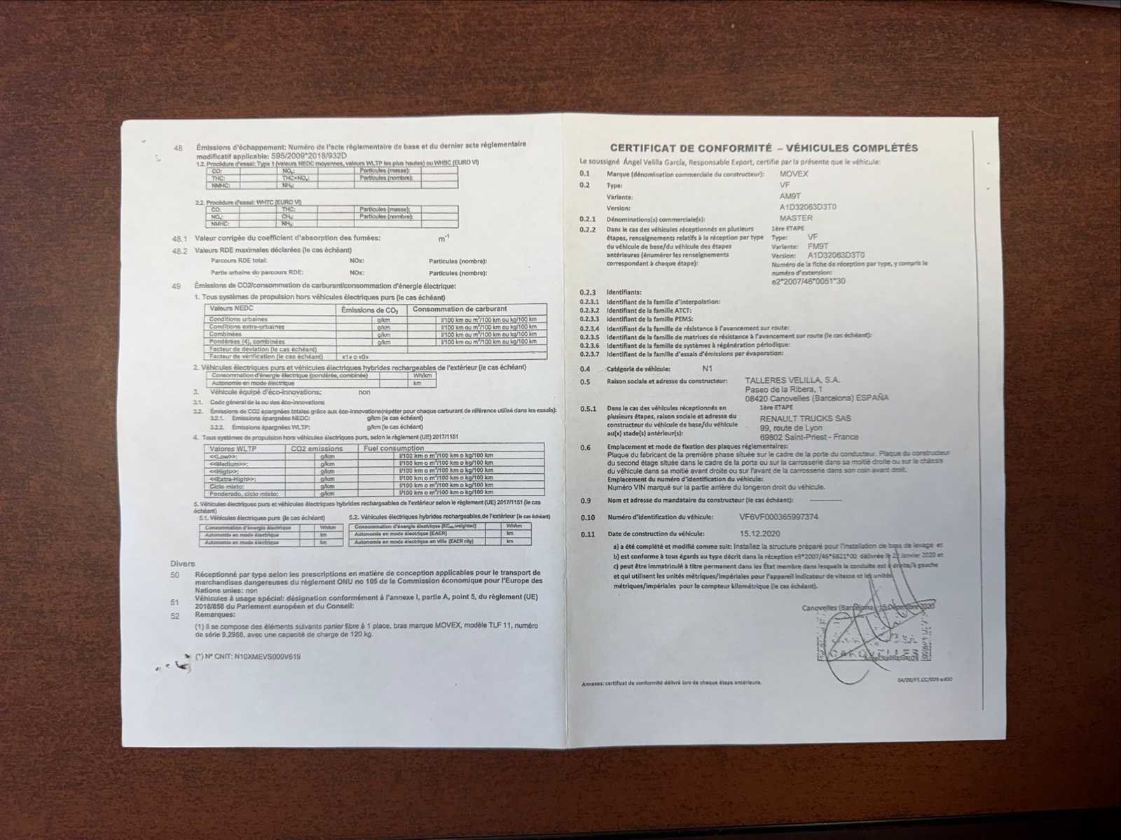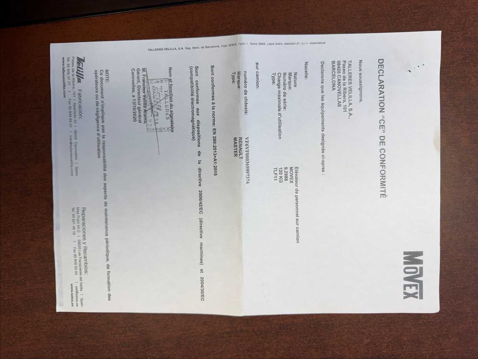 Pick-up truck met Movex persoonslift Serienummer 9.2988, maximale belasting van 120 kg, zie foto's Hij klimt naar 21 m Voertuig met douanegoedkeuring No Merk: Renault Type: VF Model: Master Bouwjaar: 2020 Chassisnummer: VF6VF000365997374 Afgelezen kilometerstand: 84911107km Vermogen (kW): 107kW Brandstof: Diesel Transmissie: Handboek Aantal zitplaatsen: 3 Kleur: Wit Nationaliteit documenten: Frankrijk Stuurwiel: Links Aantal sleutels: 2