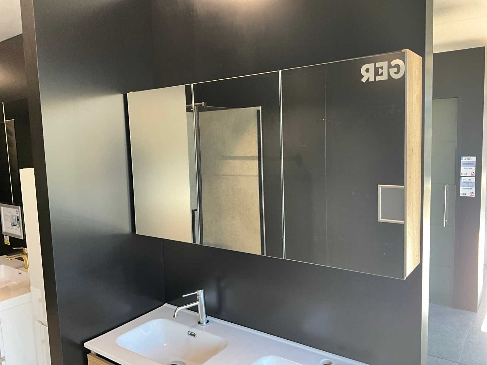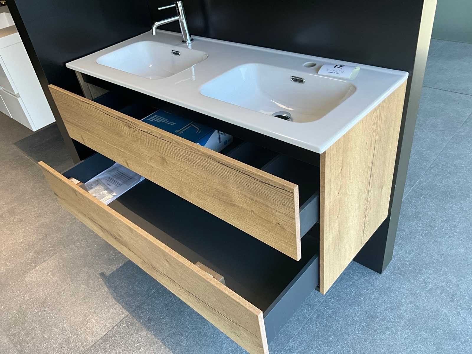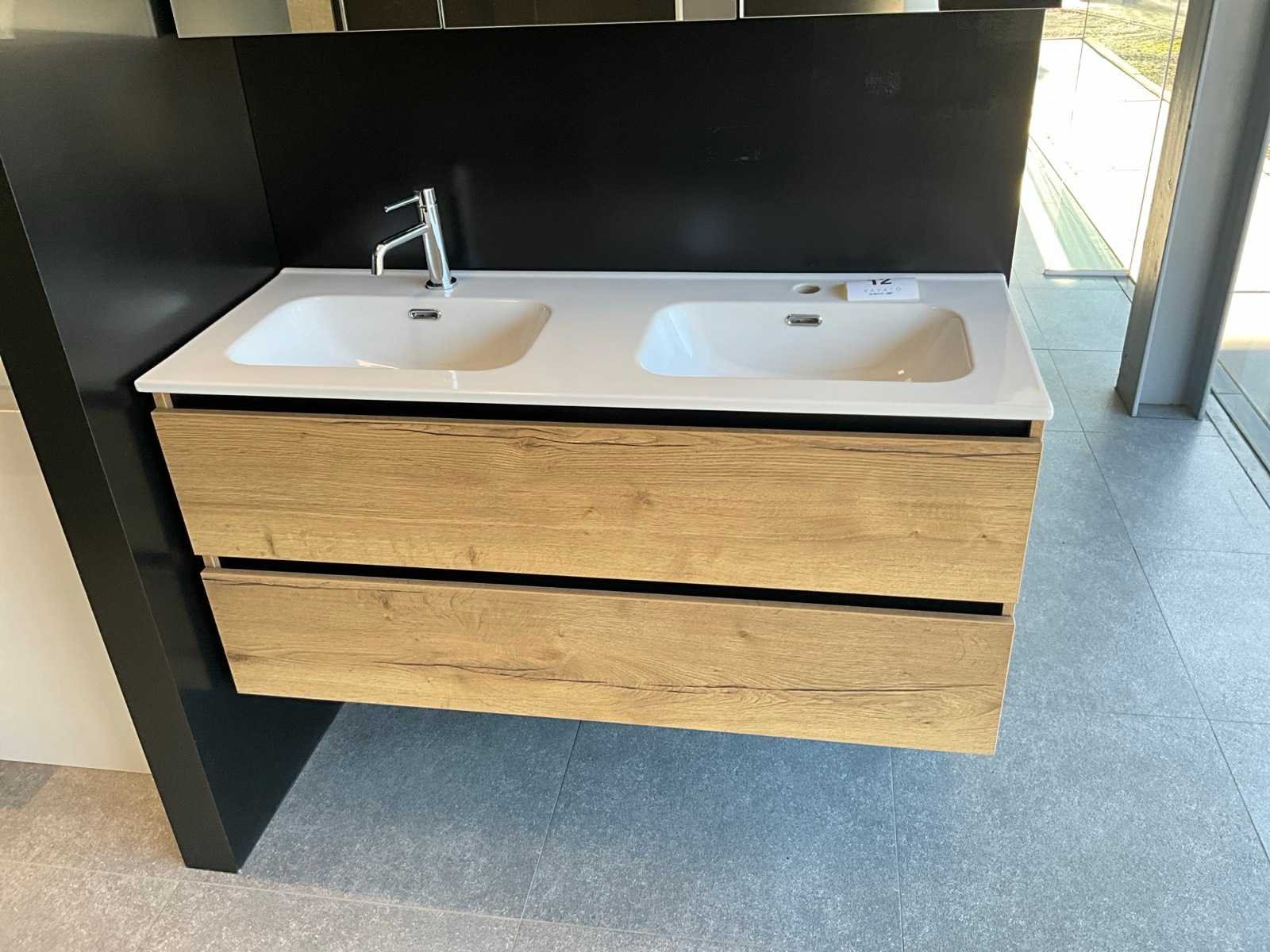 Bestaande uit onderkast voorzien van 2x lade met afmetingen:120x47x56cm, dubbele wastafel , 1x mengkraan ALLIBERT, spiegelkast voorzien van 3 deuren met afmetingen:120x18x64cm Nee Merk: Allibert Product type: Oracle