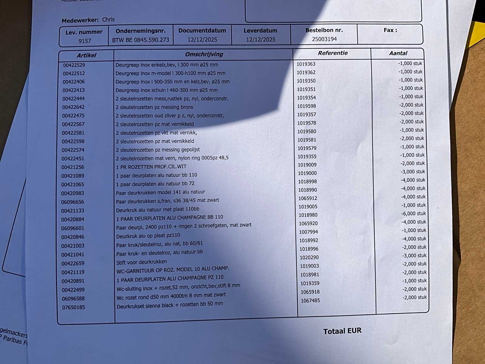 Waaronder diverse deurkrukken, diverse rozetten,… Nee Merk: Yale