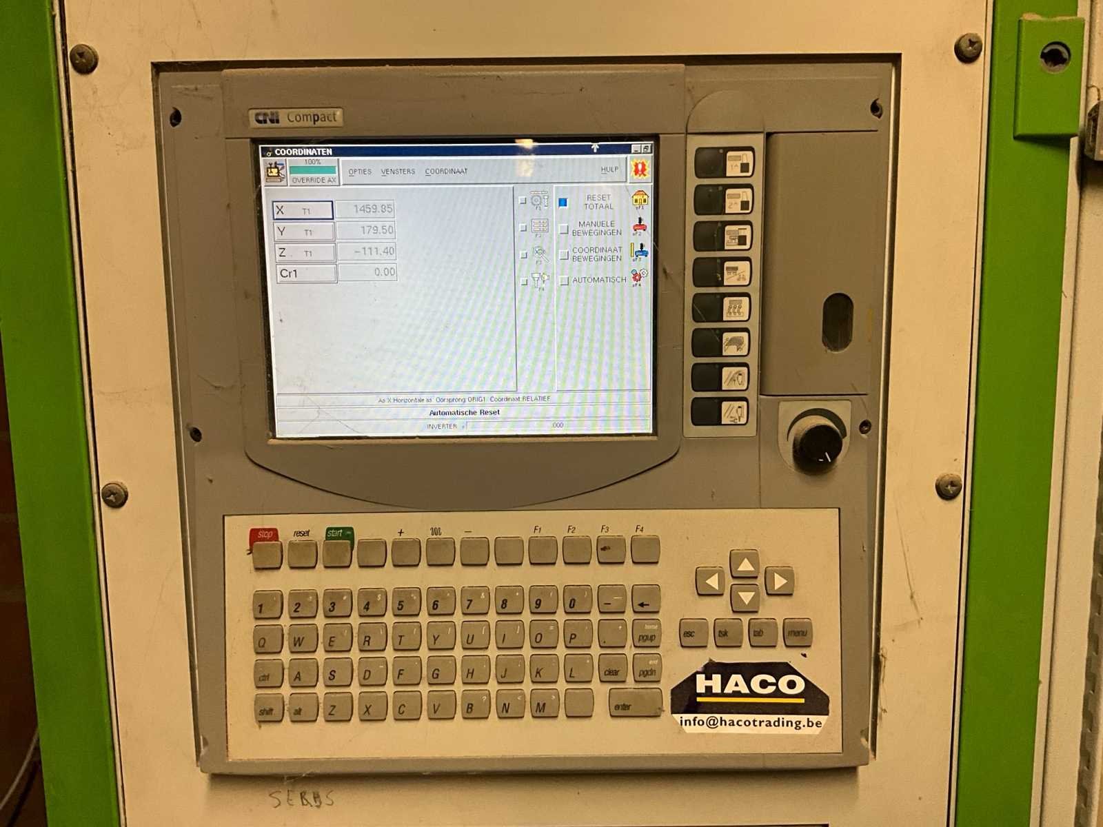 Deze machine is werkend, maar staat al even stil. De machine heeft een nazicht nodig om deze terug perfect te laten werken. No Merk: Biesse Type: Rover 24 S Bouwjaar: 2001 Serienummer: 16221 Machinegewicht: 3450kg