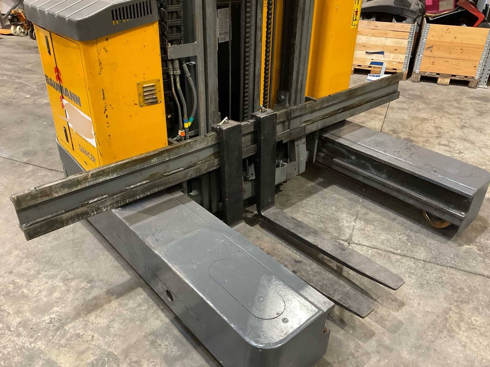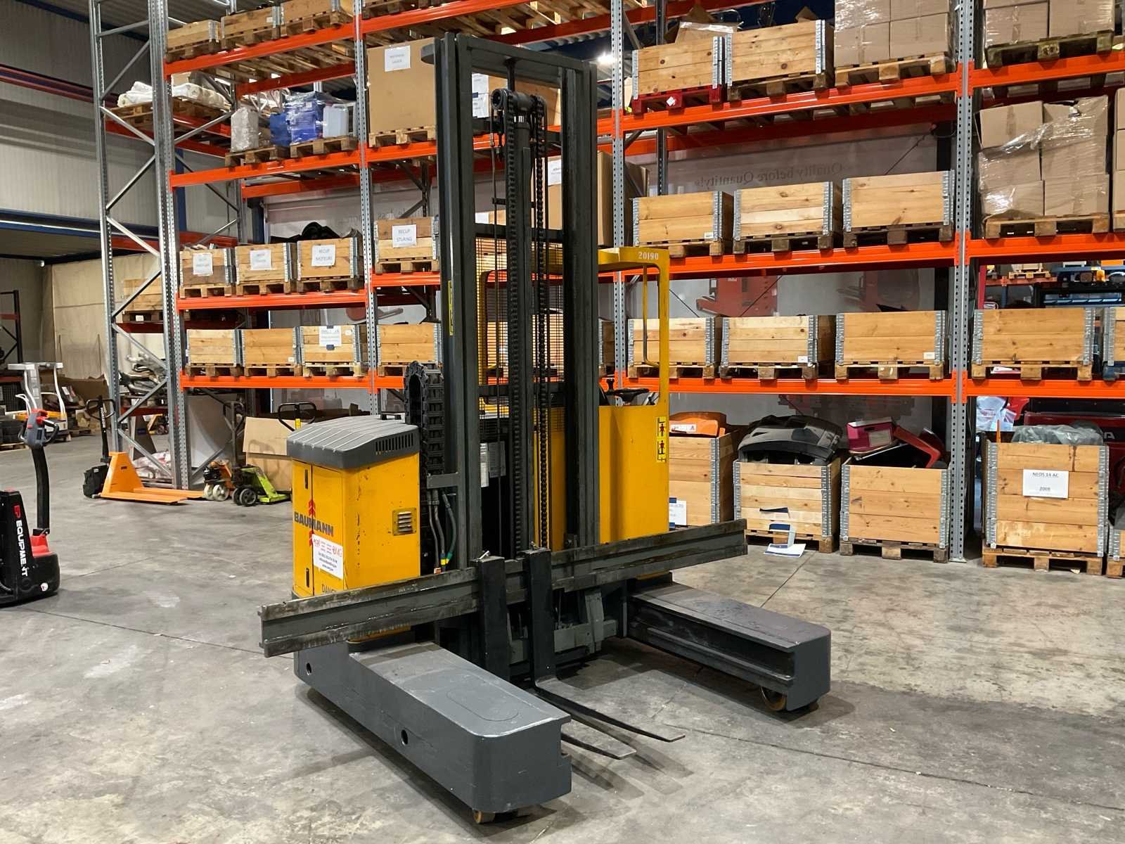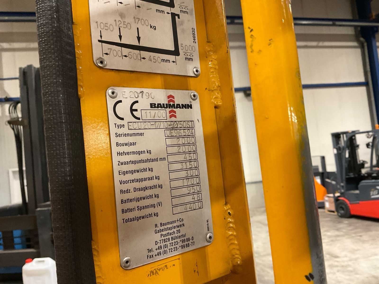 Voert alle functies uit No Merk: Bauman Type: ECU20-17 Bouwjaar: 2000 Serienummer: 0E96524 Elektrisch: true Hefvermogen: 2000kg Hefhoogte: 5000mm Lepellengte: 90mm Accu lader: true Afgelezen urenstand: 8756 Eigen gewicht: 4000kg