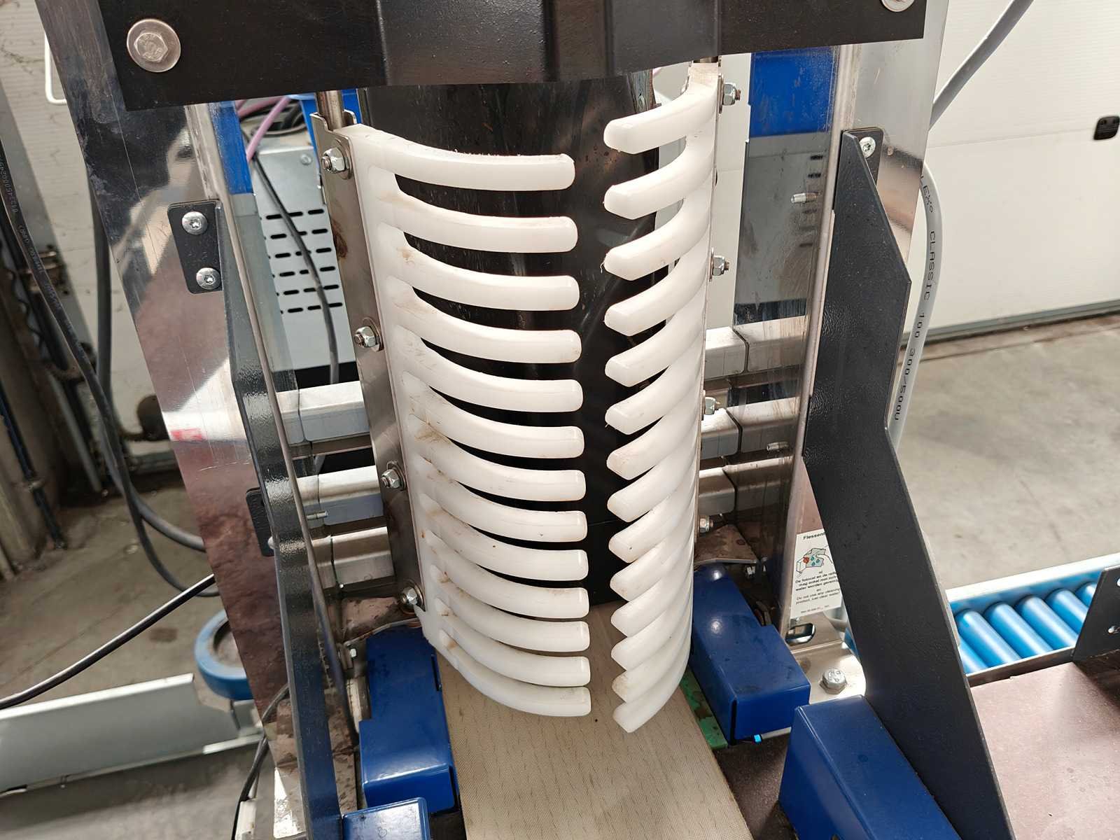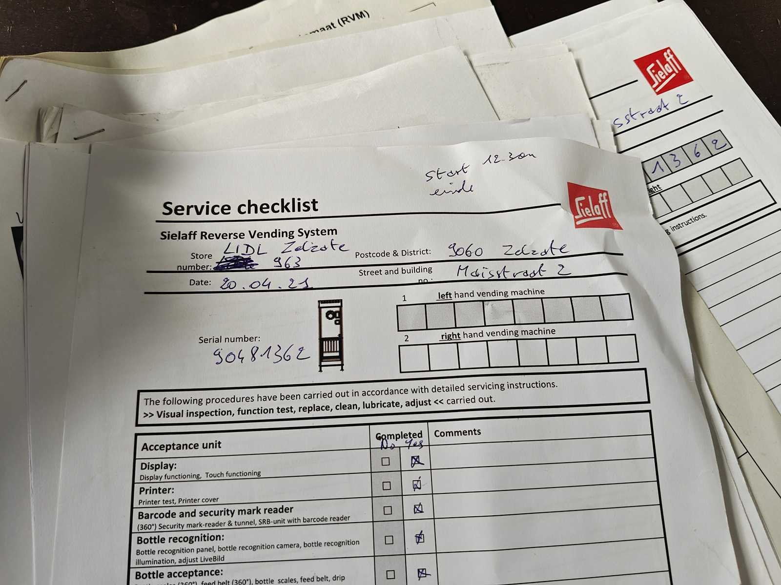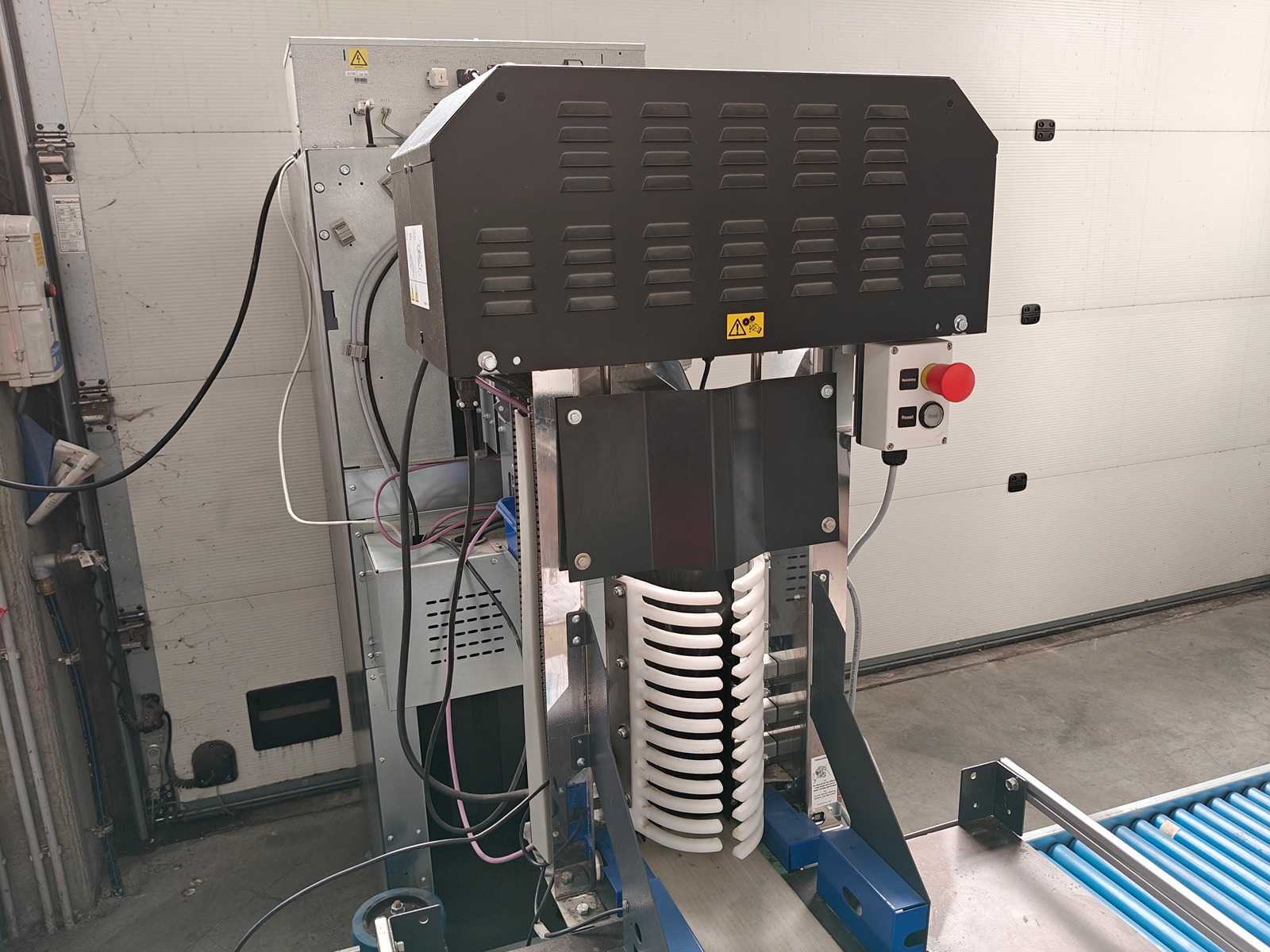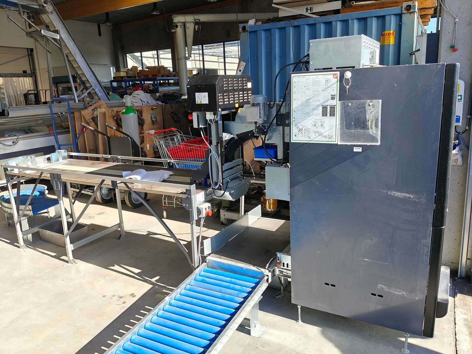 400 volt / 3 phase (Meer technische details op de foto's) Voorzien van originele nederlandstalige handleiding Details afmetingen: - Automaat: (BxDxH): 620mm x 1270mm x 1930mm - lange bruine tafel (3000mm x 950mm x 1800mm) - Blauwe bochtige rollenbaan(1700mm x 800mm x 470mm) - Blauwe rechte rollenbaan (2050mm x 590mm x 330mm) - lage bruine net na automaat ( 1050mm x 690mm x 51mm) Gratis geladen op vrachtwagen. No Merk: Sielaff Model: Sivario 360 Gewicht: 400kg