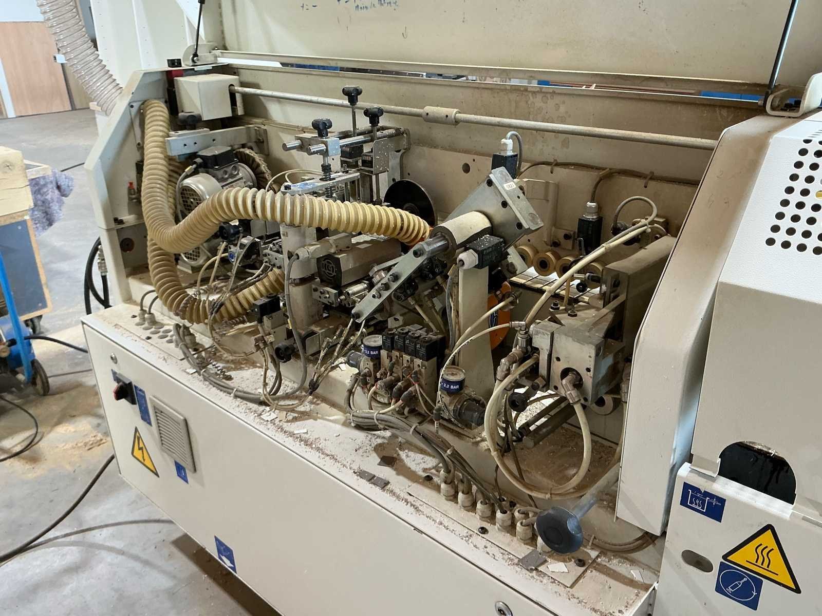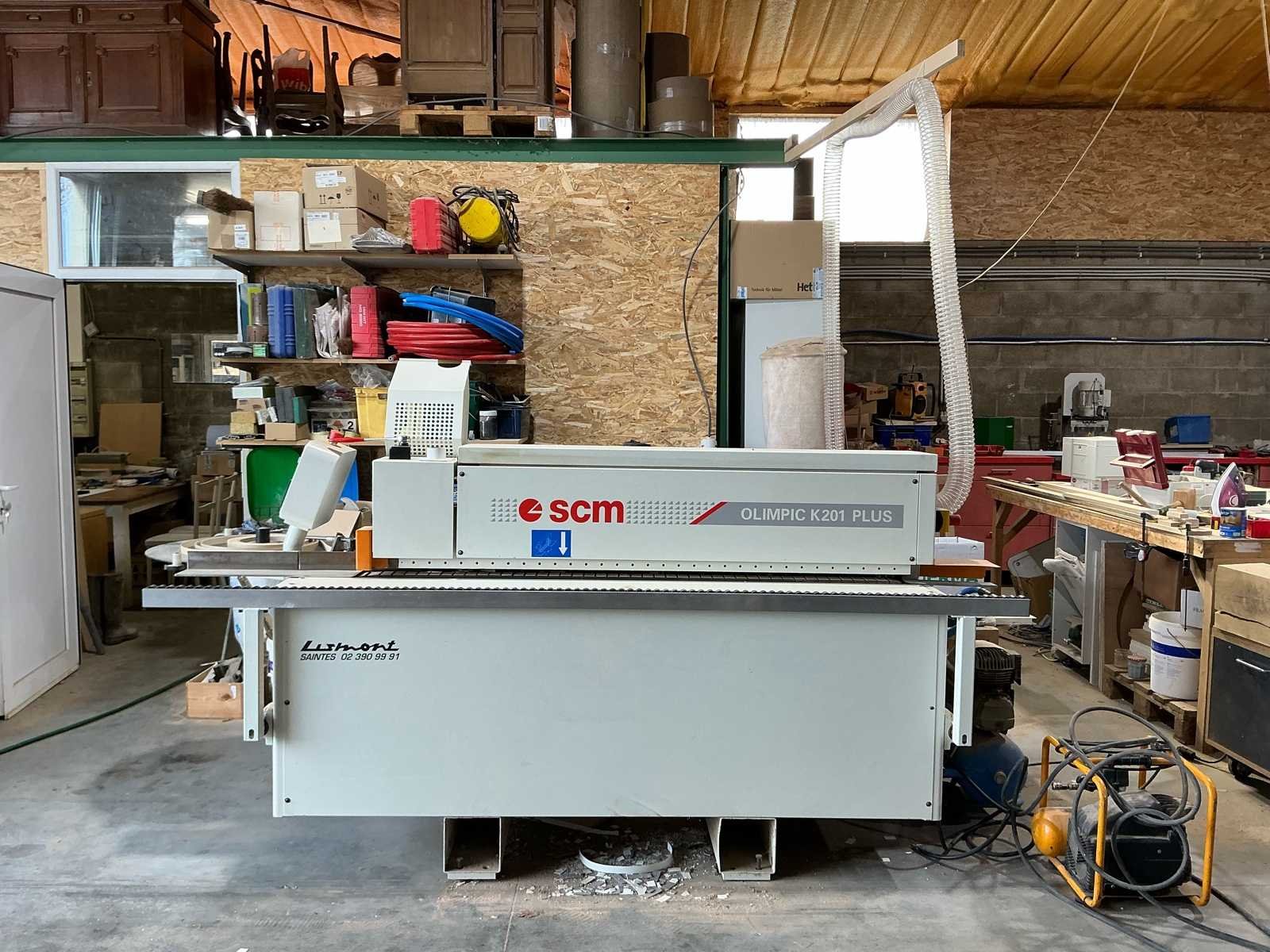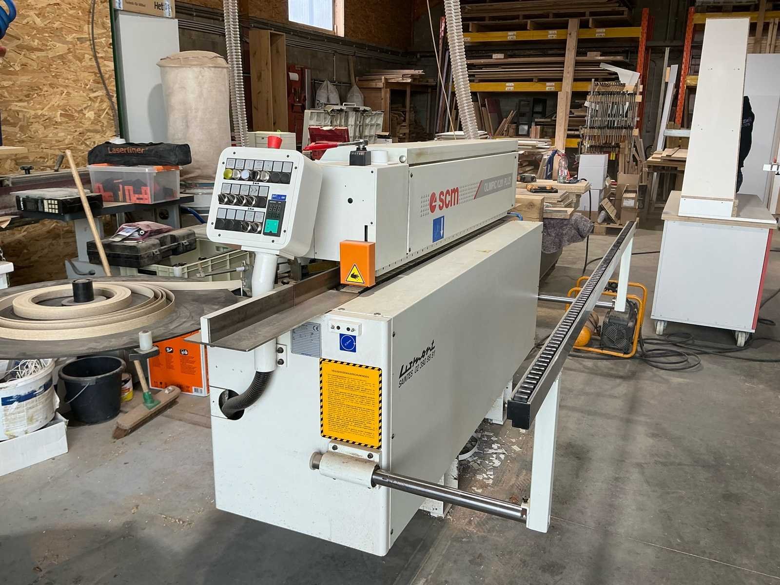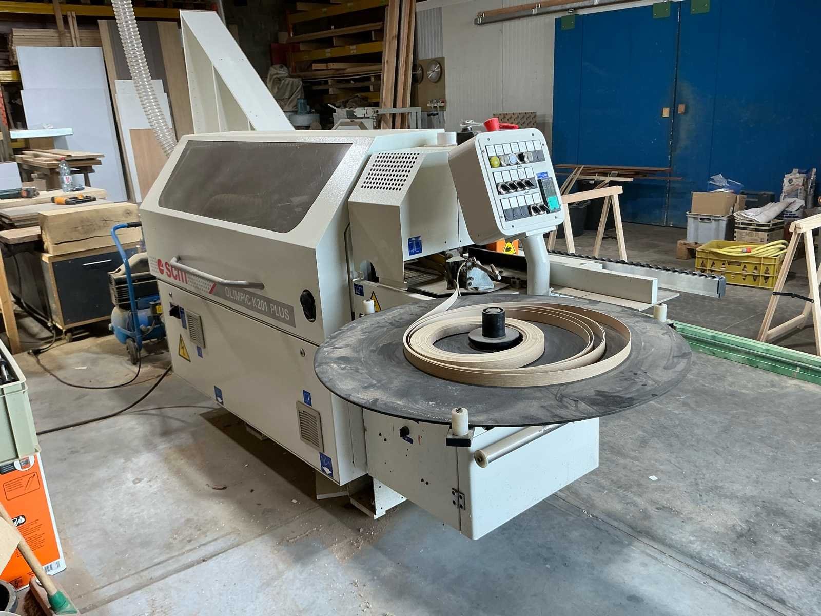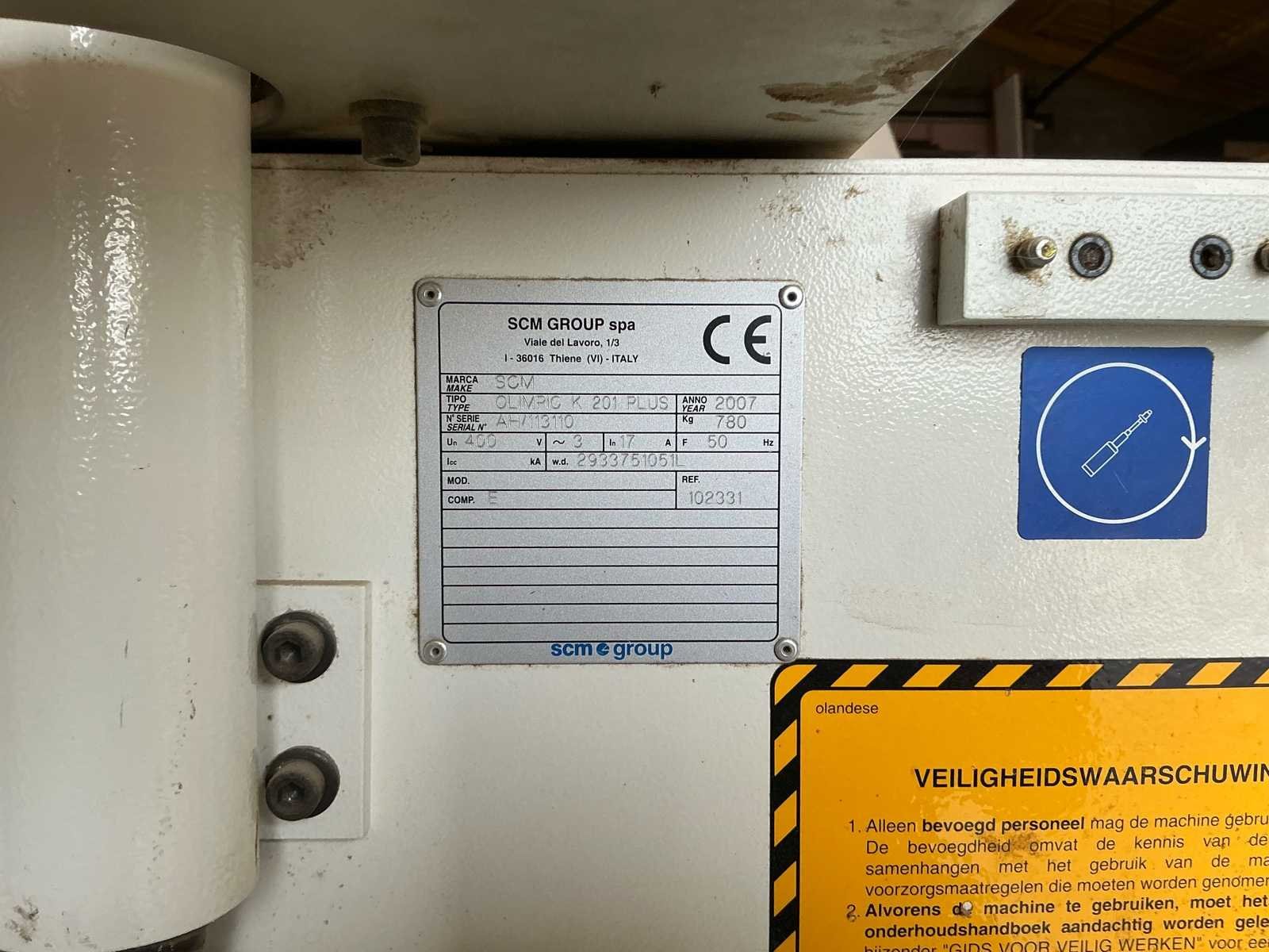 Industriële randbandmachine in goede staat en functionerend. No Merk: SCM Type: Olimpic K. 201 plus Bouwjaar: 2007 Serienummer: AH113110 Gewicht: 780kg Afmeting l: 3300mm Afmeting b: 1200mm Afmeting h: 1400mm