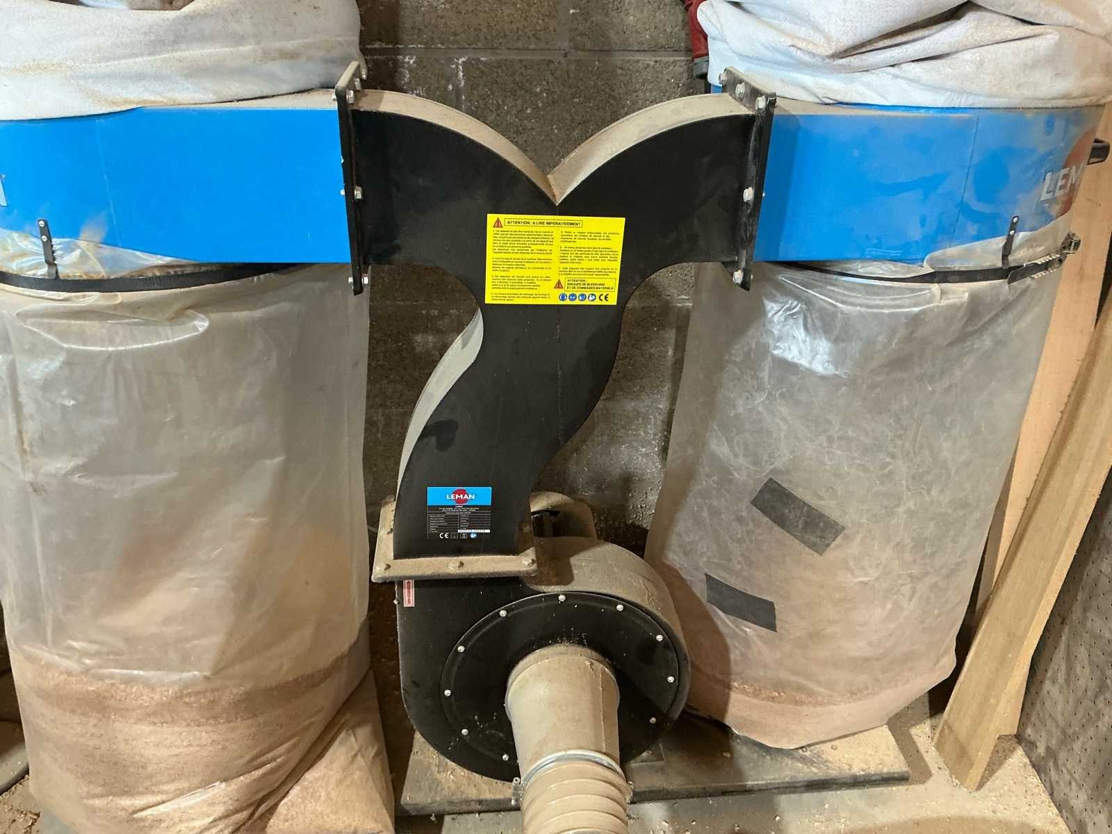 De stofzuiger is in goede staat. Functioneel. • Motorvermogen: 2200 W (3 pk) • Voeding: 230 V – 50 Hz • Rotatiesnelheid: 2950 tpm • Schroefdiameter: 300 mm • Aantal aansluitingen: 3 x 100 mm • Luchtstroom: 2864 m³/u • Capaciteit: 2 x 150 liter No Merk: Leman Type: ASP 302 Aspirateur pour bois Bouwjaar: 2022 Serienummer: 202205302035 Aansluiting: 230V