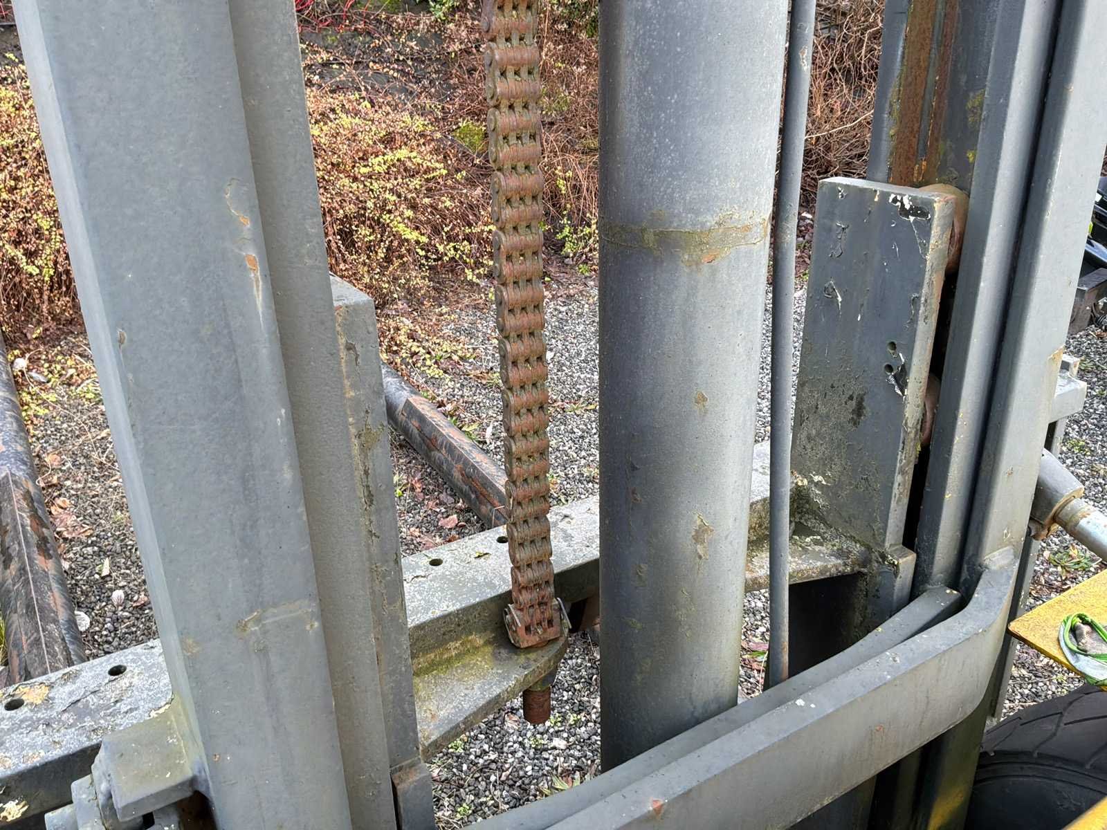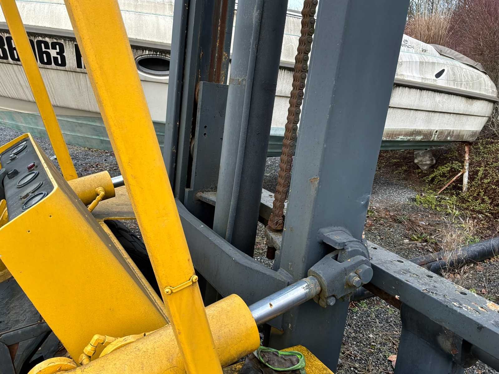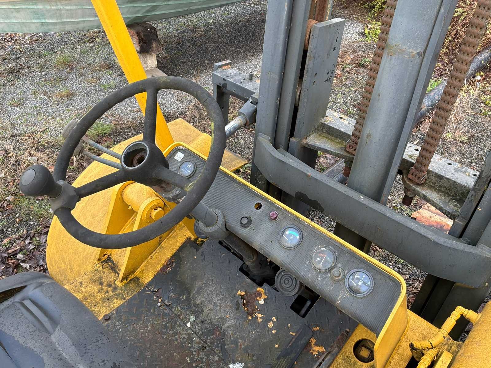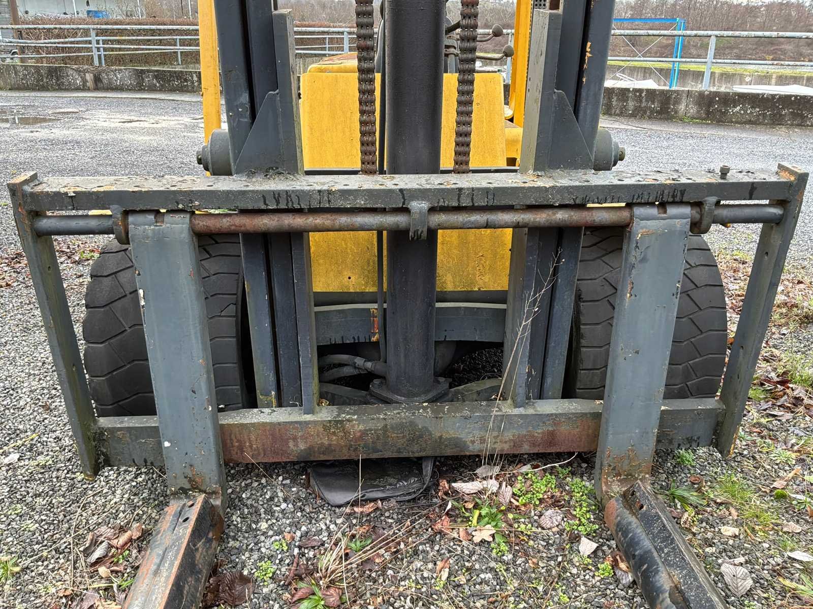 No Merk: Hyster Type: H150F Serienummer: D6E3373X Brandstof: Diesel Mast: Verticaal Aantal wielen: 4 Afgelezen urenstand: 13728 Hefvermogen: 6750kg Hefhoogte: 5200mm Diesel: true