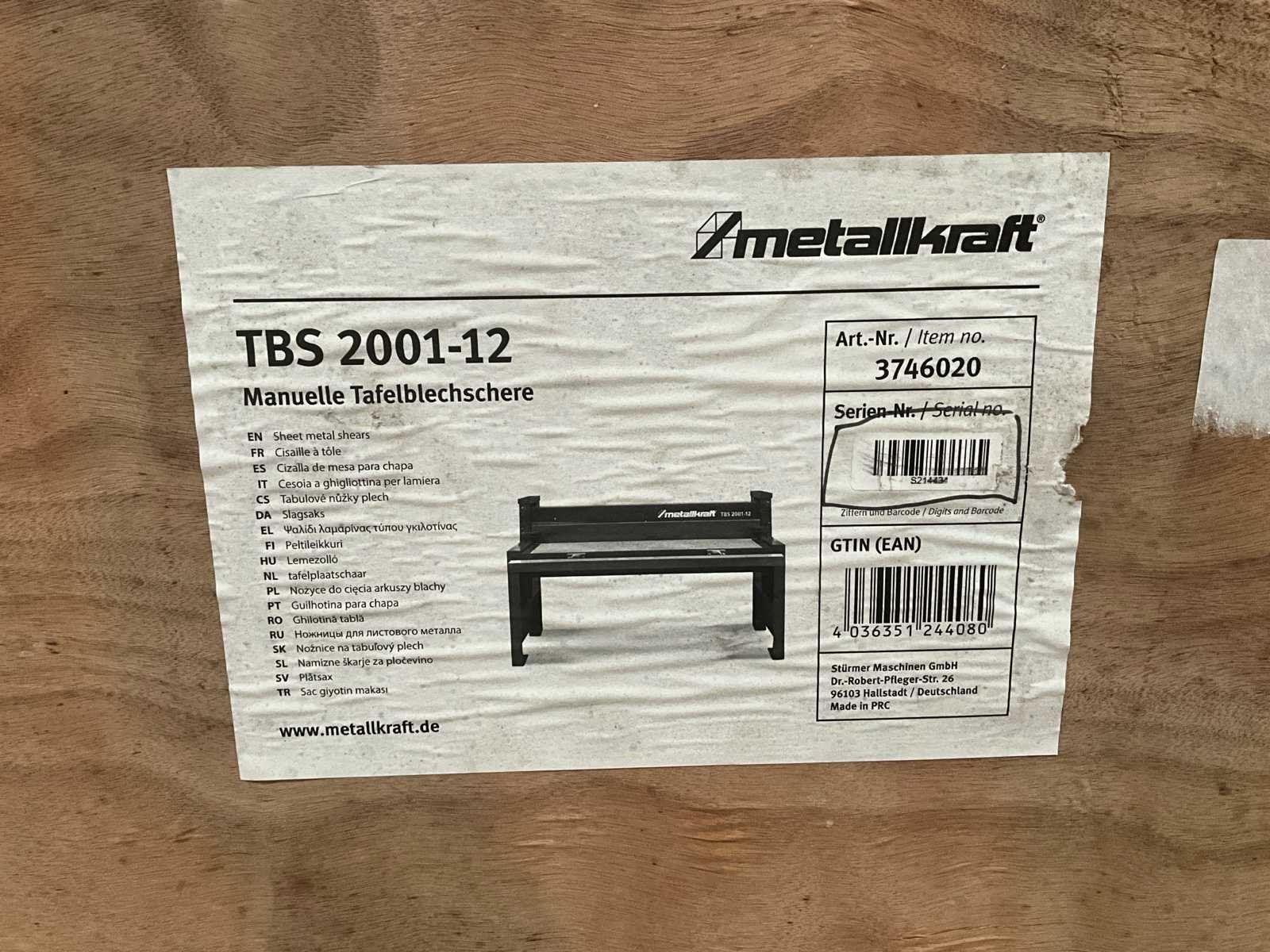 Maximale snijdikte: 1,2 mm Volledig nieuwe apparatuur, nog steeds verpakt, nooit geassembleerd No Merk: Metall-Kraft Type: TBS 2000-12 Snijlengte: 2000mm Afgelezen urenstand: 0 Machinegewicht: 545kg