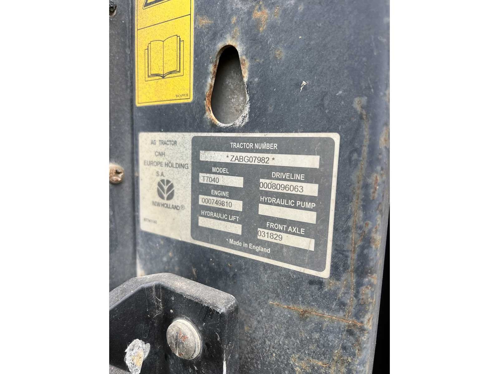 Syncro Nee Merk: New Holland Type: T7040 4WD SA Bouwjaar: 2010 Serienummer: ZABG07982(01) Motorvermogen (kW): 172kW Afgelezen urenstand: 17847 Versnellingsbaktype: Autocommand Bandenmaat voor: 600/65R28 Bandenmaat achter: 650/65R42 Frontgewichtenset: true Cabine: true Luchtgeveerde stoel: true Eigen gewicht: 7900kg Totale afmeting L: 5800mm Totale afmeting Breedte: 2800mm Totale afmeting Hoogte: 3300mm Kentekenpapieren compleet?: true Chassisnummer: ZABG07982(01) Datum eerste toelating: 02/09/2010 Nationaliteit documenten: BE