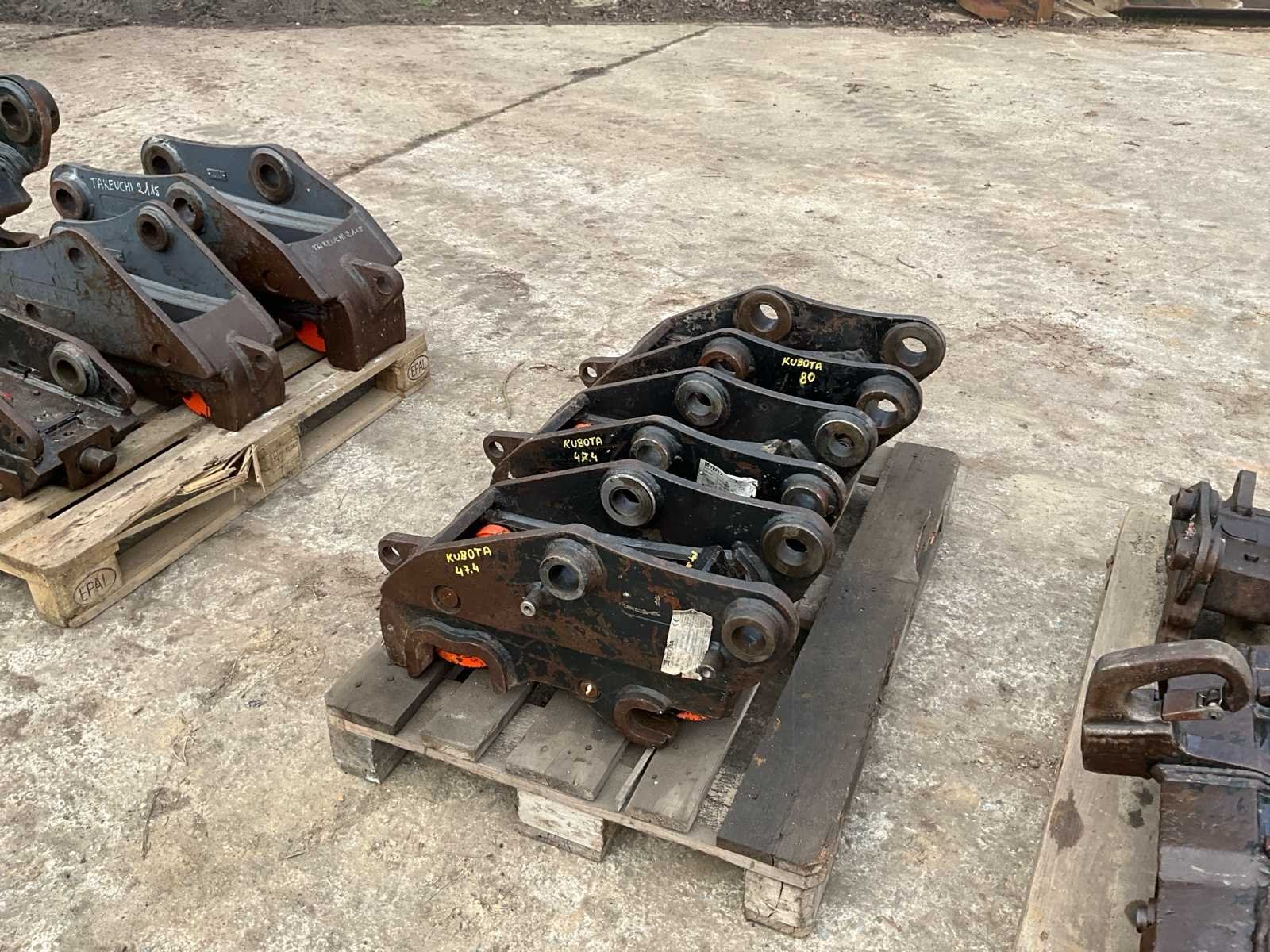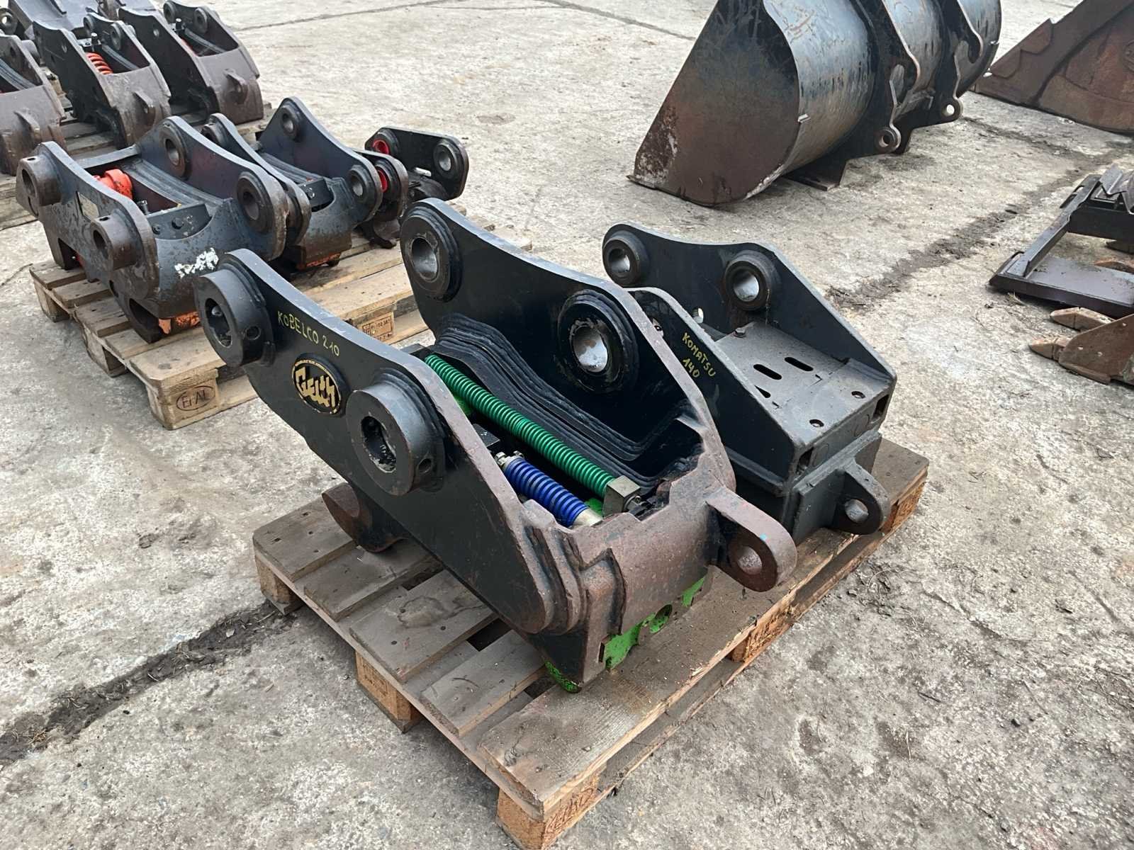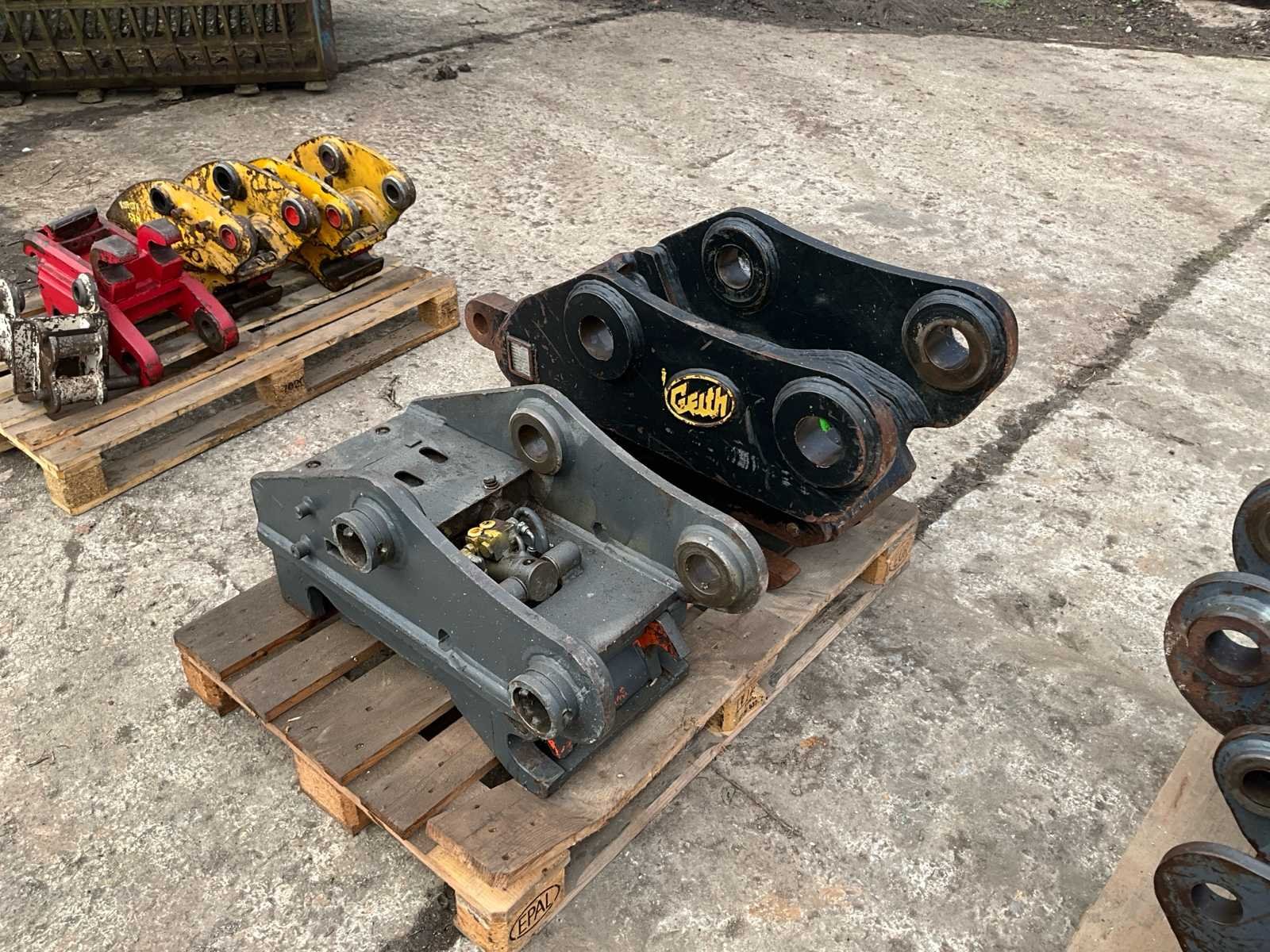 Lot bestaande uit meerdere hydraulische en mechanische snelwissels voor graafmachines. Geschikt voor verschillende tonnages. Ideaal voor aannemers of dealers van grondverzetmachines. Kenmerken • Meerdere types en maten • Gebruikte staat • Volledig perceel No