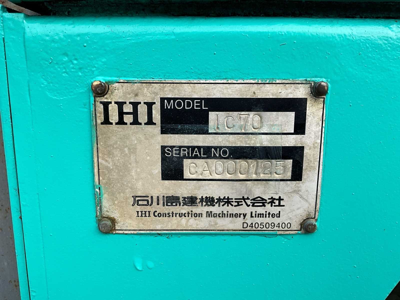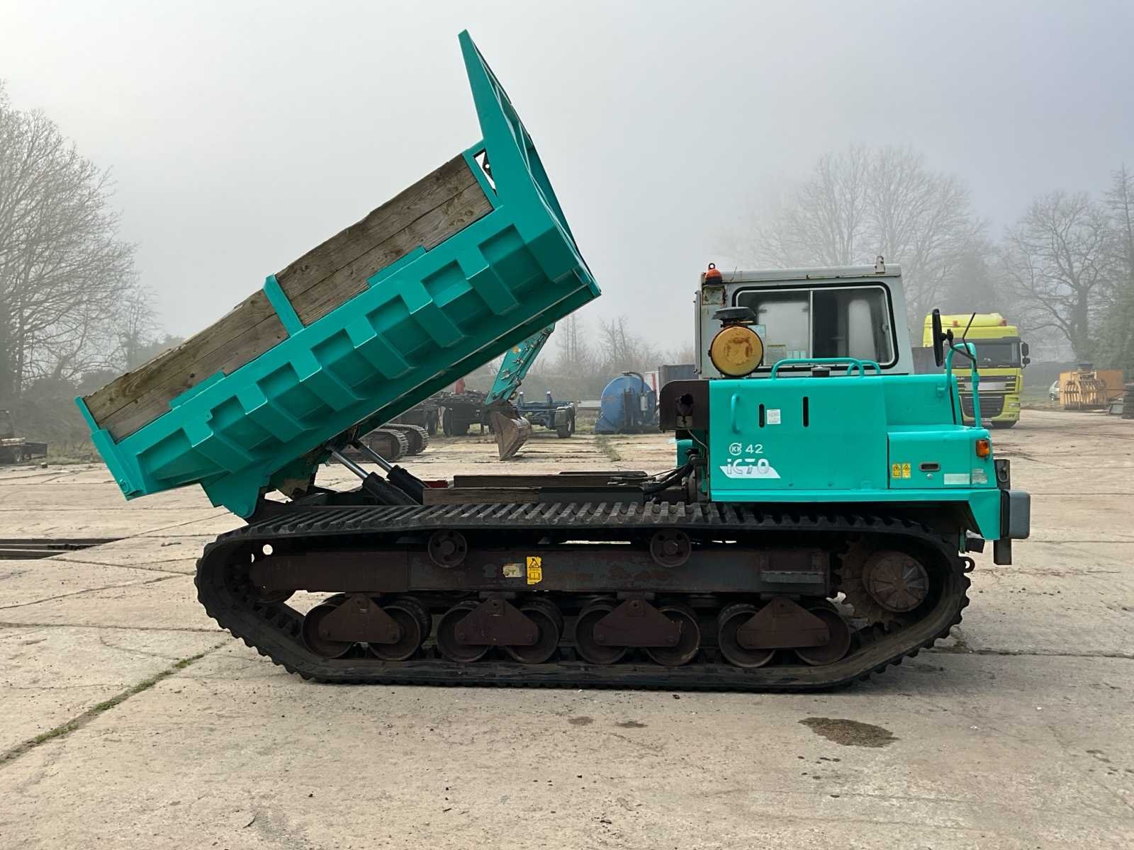 Merk: IHI Model: IC70 Type: Rupsdumper / rupser dumper Rupsdumper in nette en goed werkende staat. Machine heeft slechts 2179 werkuren, wat zeer laag is voor dit type. Uitgerust met cabine en hydraulisch kiepbak. Rupsen en onderstel in degelijke staat. Altijd gebruikt voor lichte werkzaamheden. Kenmerken • Lage draaiuren (2179h) • Cabine uitvoering • Hydraulische kiepbak • Goede algemene staat No Merk: IHI Type: IC70 Brandstof: Diesel Bandenmaat: Tracks Cabine: true Afgelezen urenstand: 2179