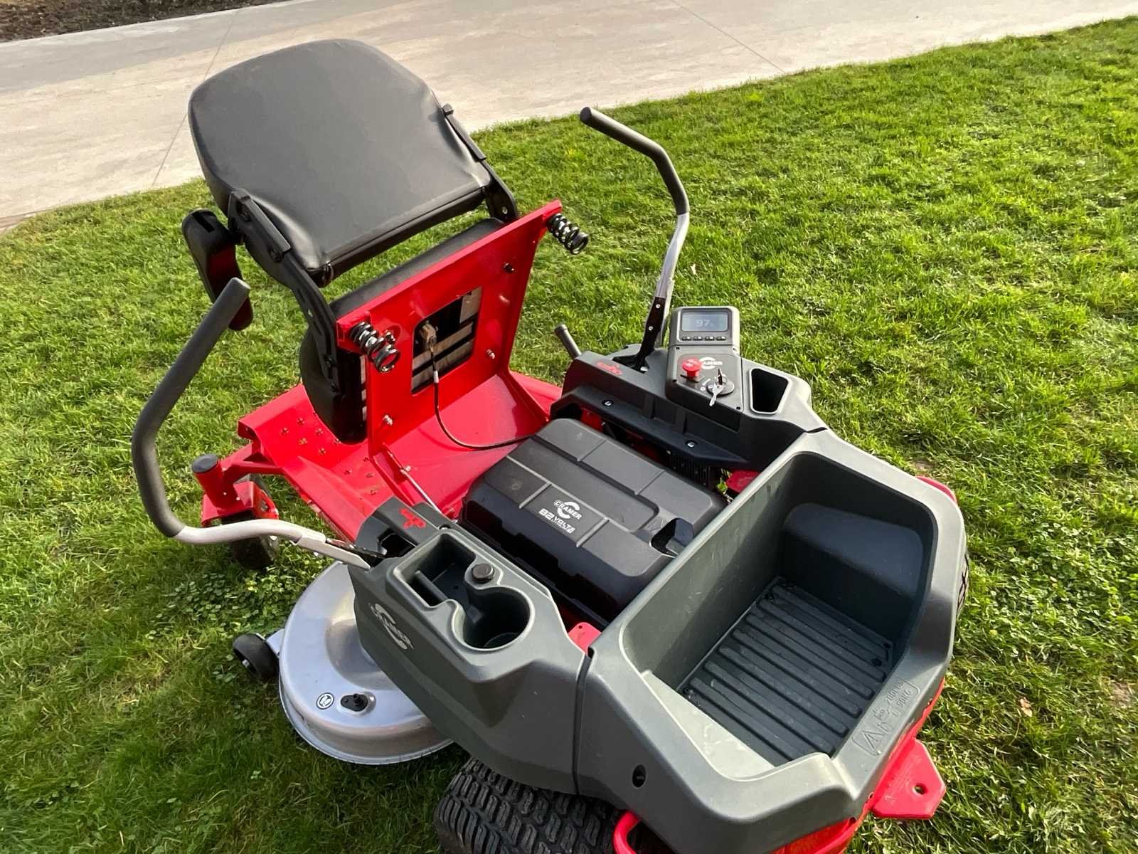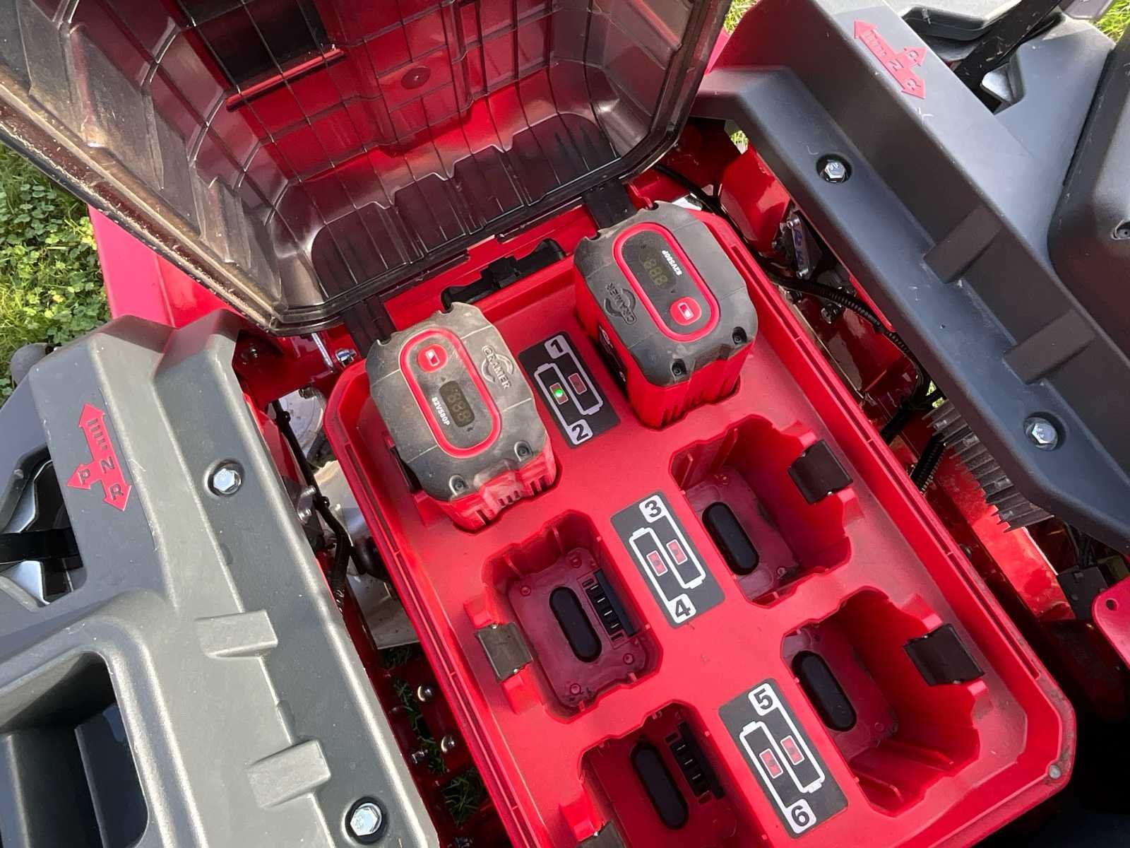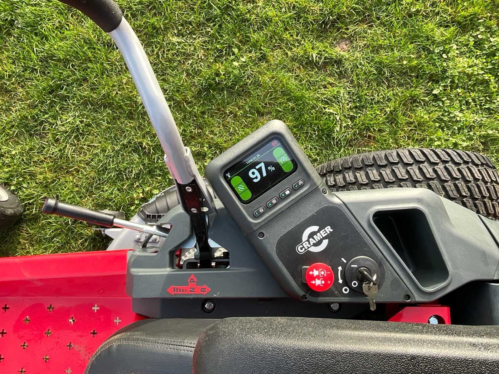 Nieuwstaat! amper 51,2 werkuren 2 batterijen inbegrepen! No Merk: Cramer Type: 82ZT107 Bouwjaar: 2024 Serienummer: 1012301110002059 Werkbreedte: 107cm Zelfrijdend: true Brandstof: Accu (82V Lithium) Elektrisch aangedreven: true Eigen gewicht: 300kg Totale afmeting L: 210cm Totale afmeting Breedte: 135cm Totale afmeting Hoogte: 115cm