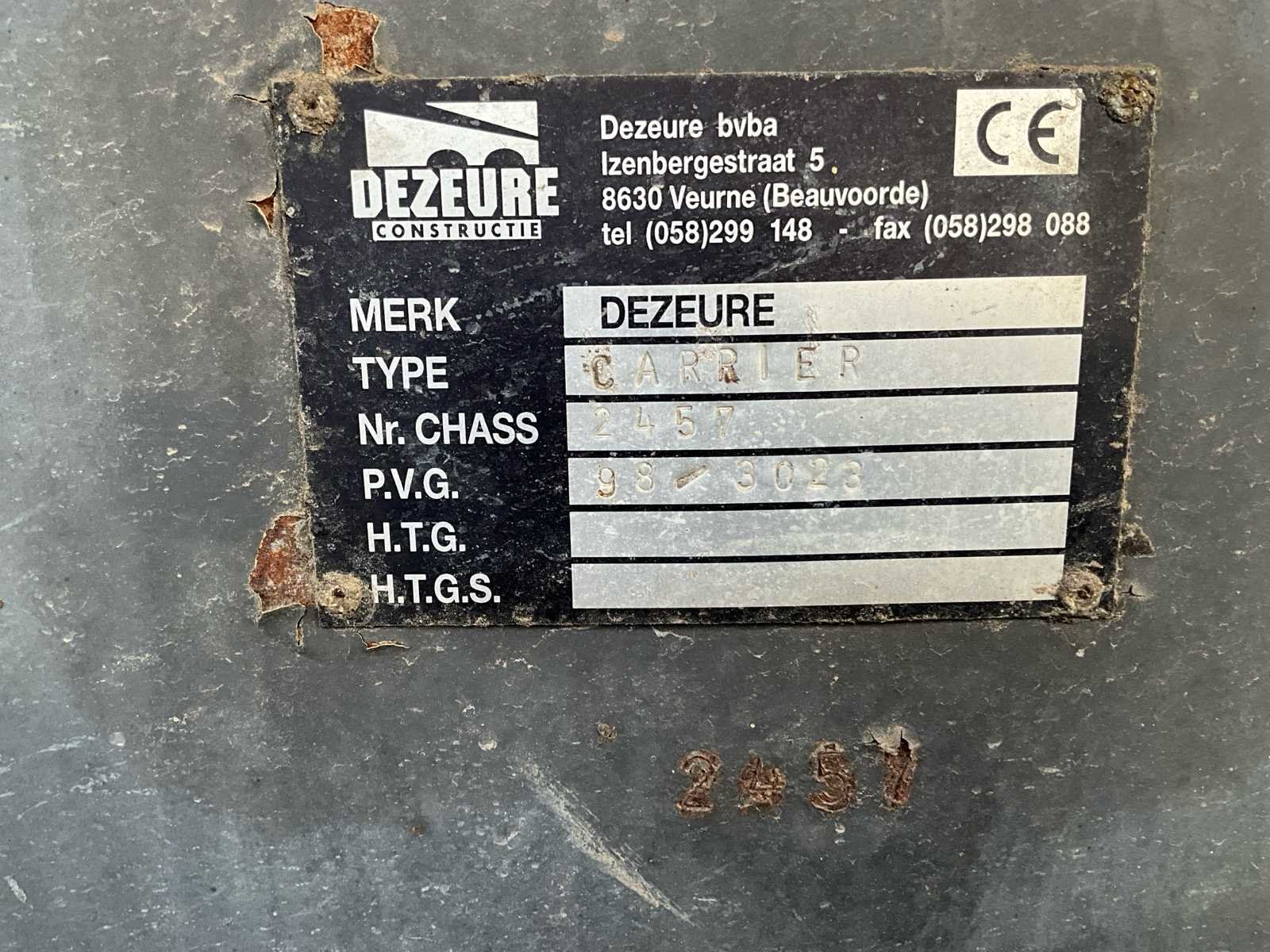 No Merk: Dezeure Type: Carrier Serienummer: 2457 Aantal assen: 2 Bandenmaat: 650 Totaal max. gewicht: 18t Hydraulische remmen: true Stuuras: true Totale afmeting L: 7500mm Totale afmeting Breedte: 2500mm Totale afmeting Hoogte: 2500mm