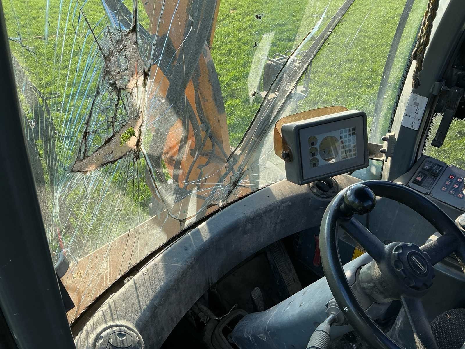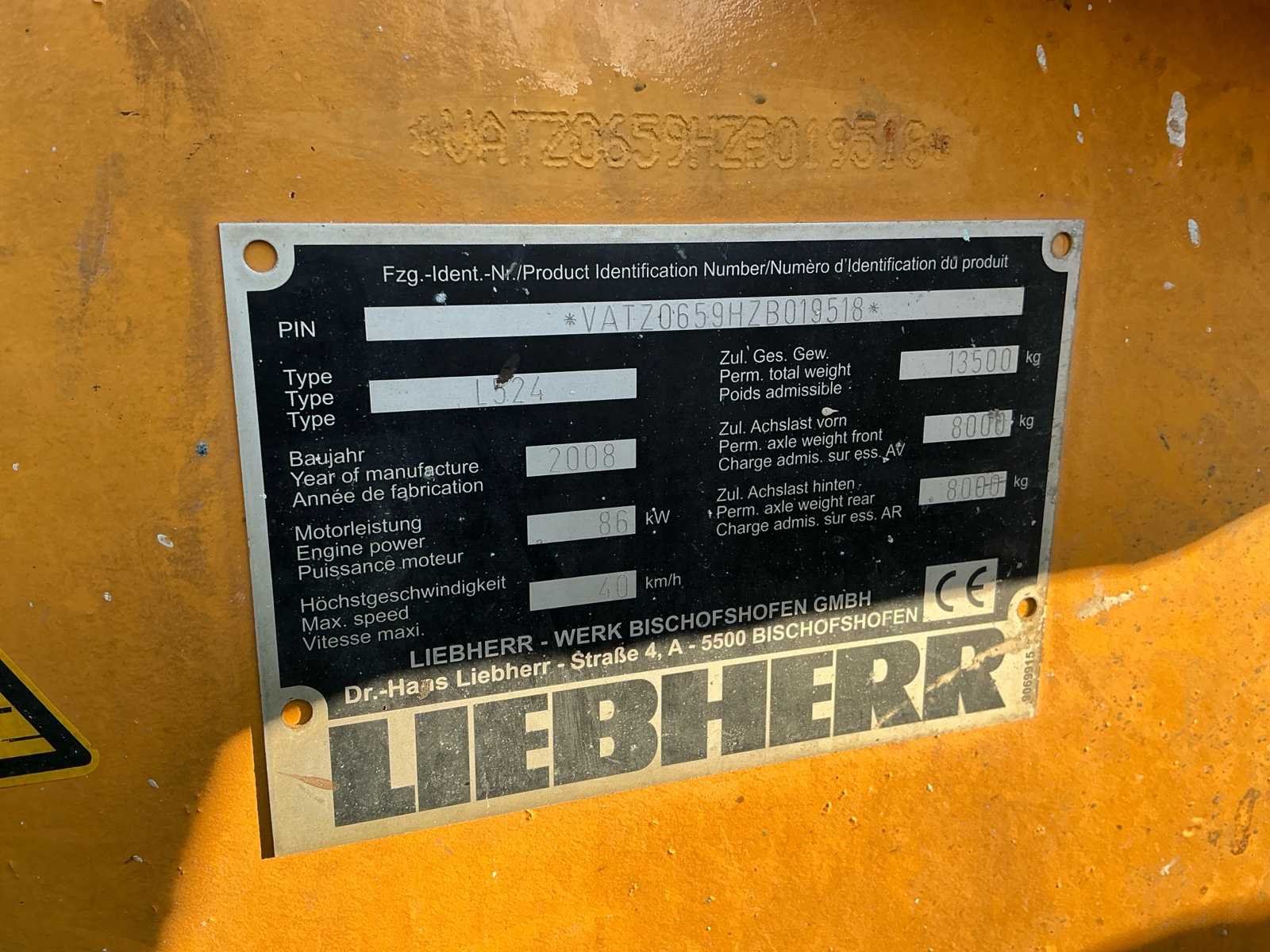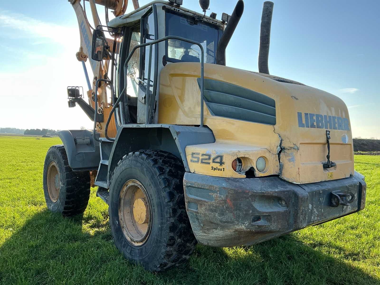 Hydraulische snelwissel. Zonder graafbak. Rijd in eerste versnelling, vertraagd bij opschakelen. Voorruit stuk (zie foto). Start zeer goed op. No Merk: Liebherr Bouwjaar: 2008 Type: L524 Motorvermogen (kW): 86kW Cabine: true Afgelezen urenstand: 11900hr Brandstof: Diesel