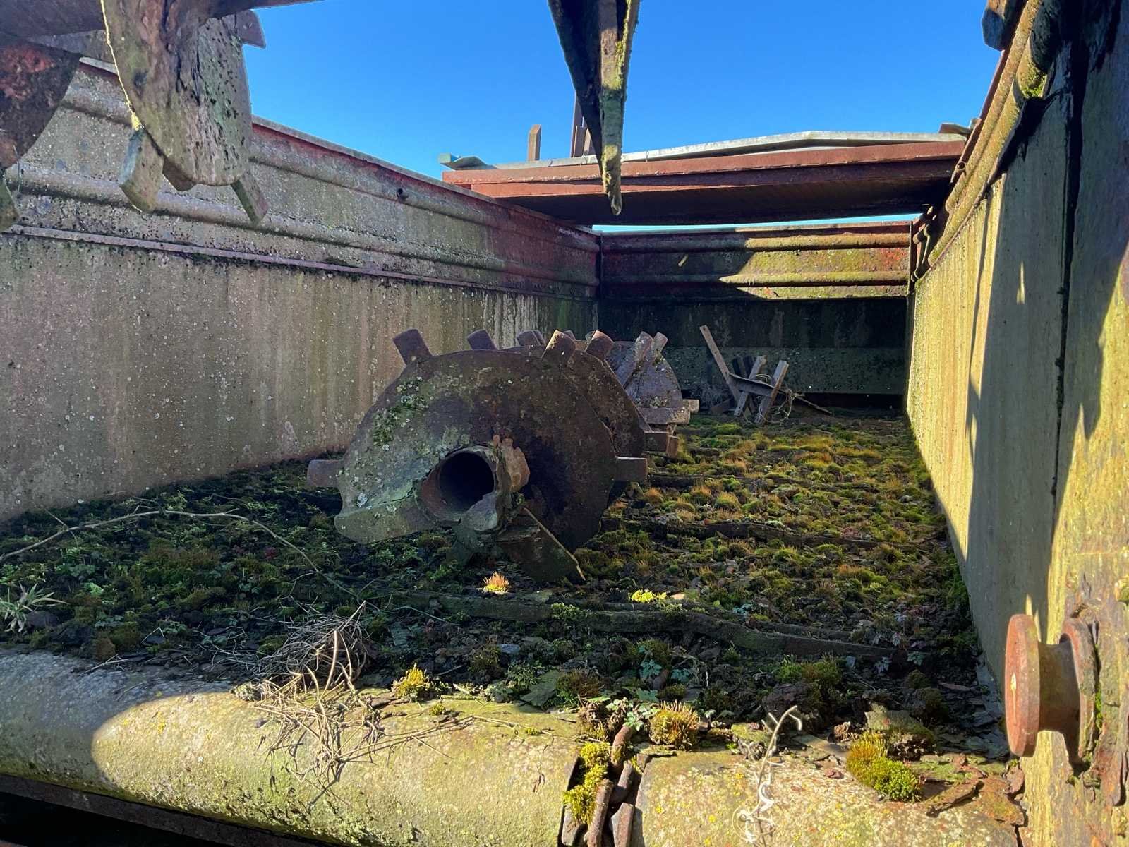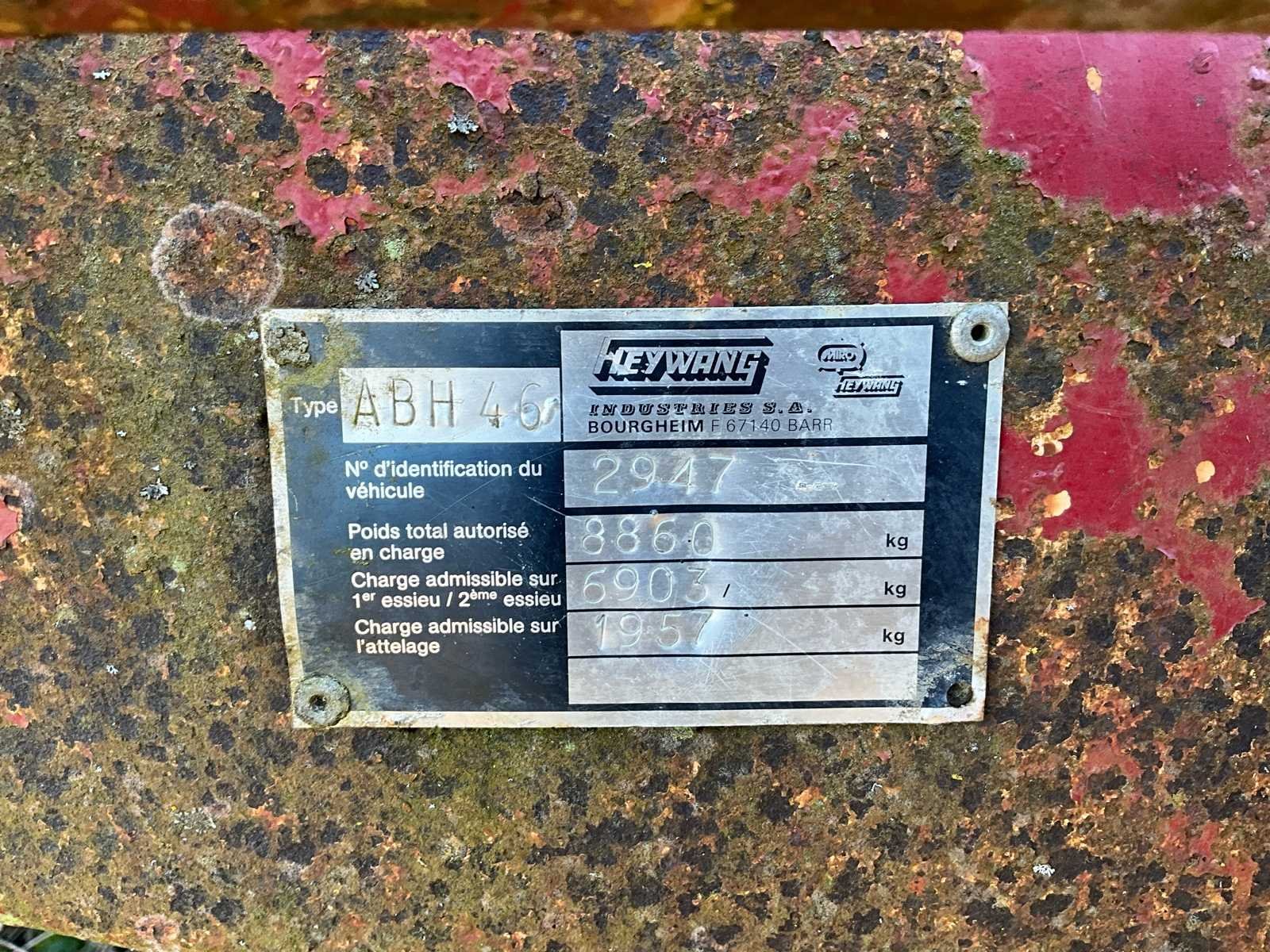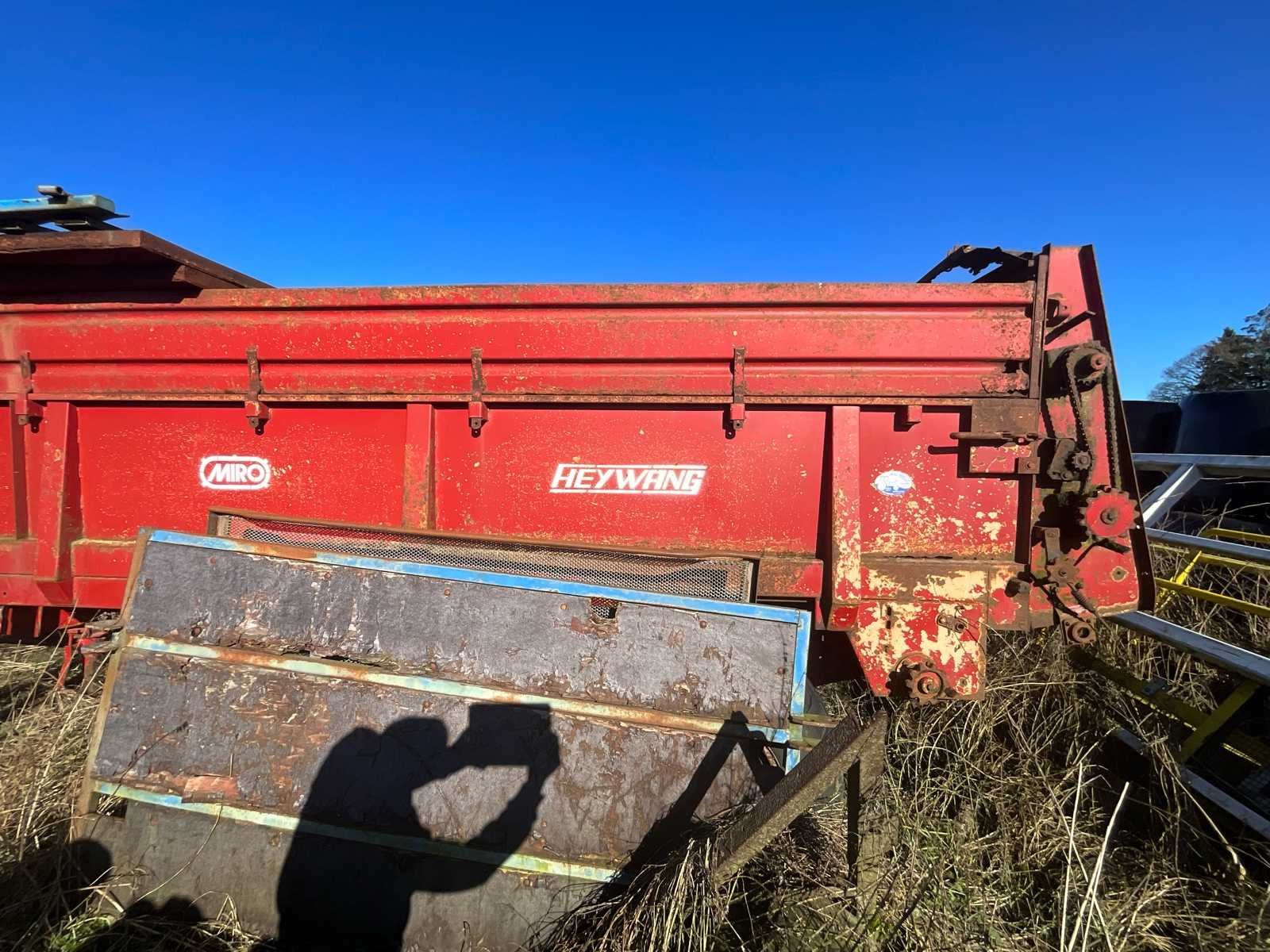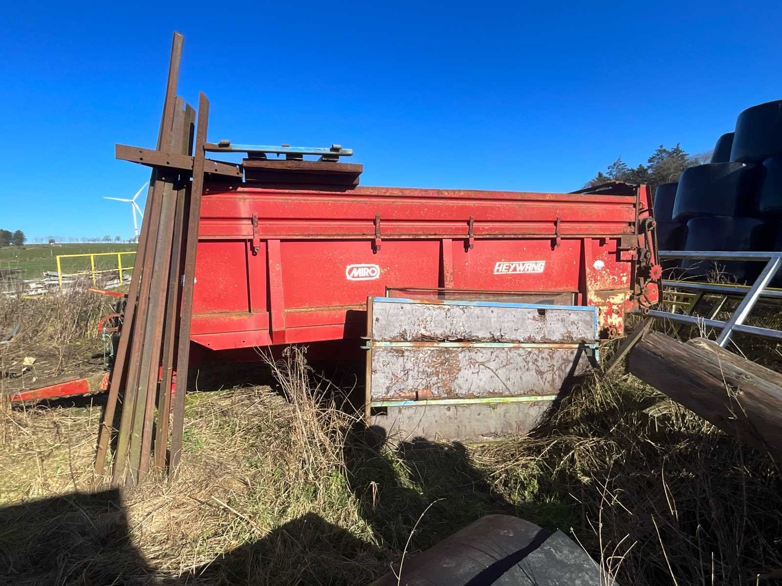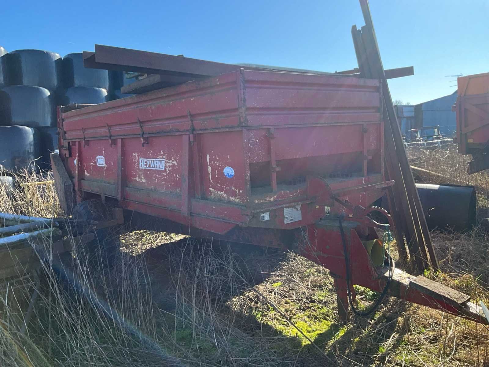 De spreider werkt niet meer, maar kan als kiepbak worden gebruikt of worden omgebouwd voor andere transportvormen No Merk: HeyWang Type: ABH 46 Serienummer: 2947