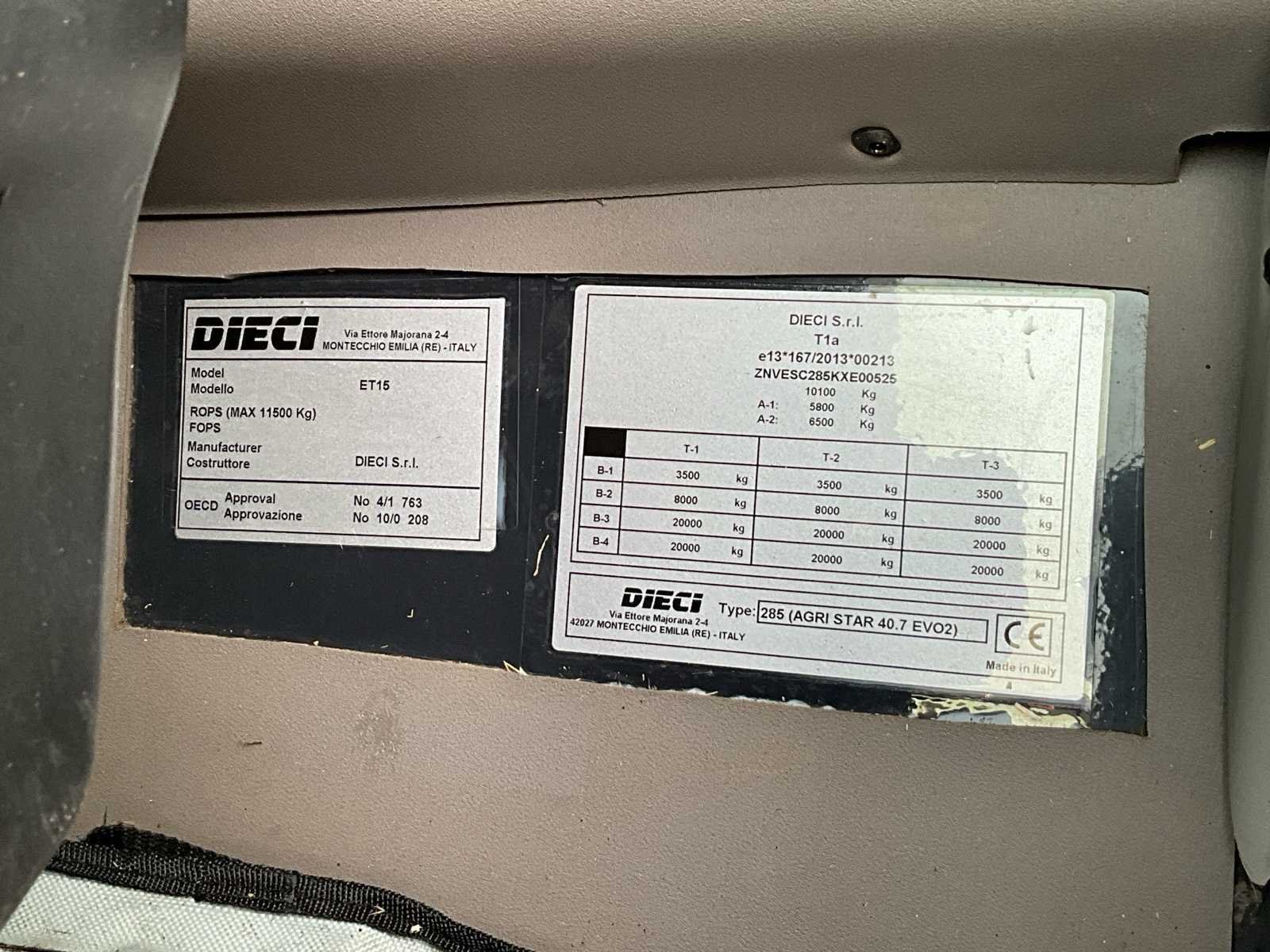 De apparatuur werkt perfect en is nauwelijks gebruikt, ze zijn nooit geregistreerd. De apparatuur heeft een Manitou-snelkoppel. No Merk: Dieci Type: Agri star 40.7 Evo2 Bouwjaar: 2019 Serienummer: Znvesc285kxe00525 Motorvermogen (kW): 96kW Cabine: true Vierwielaandrijving 4x4: true Afgelezen urenstand: 293