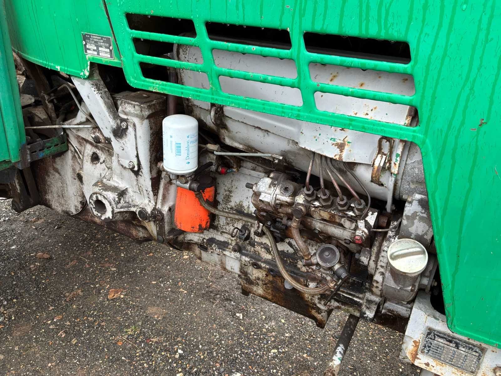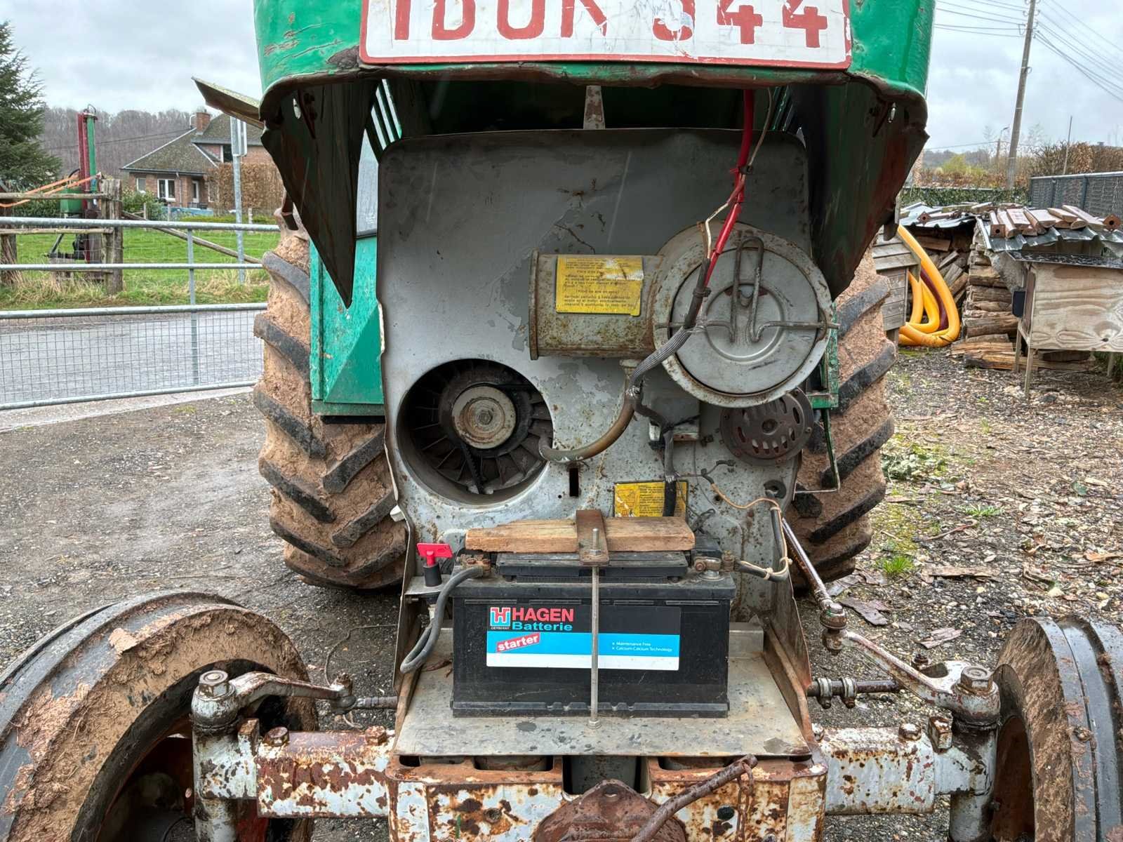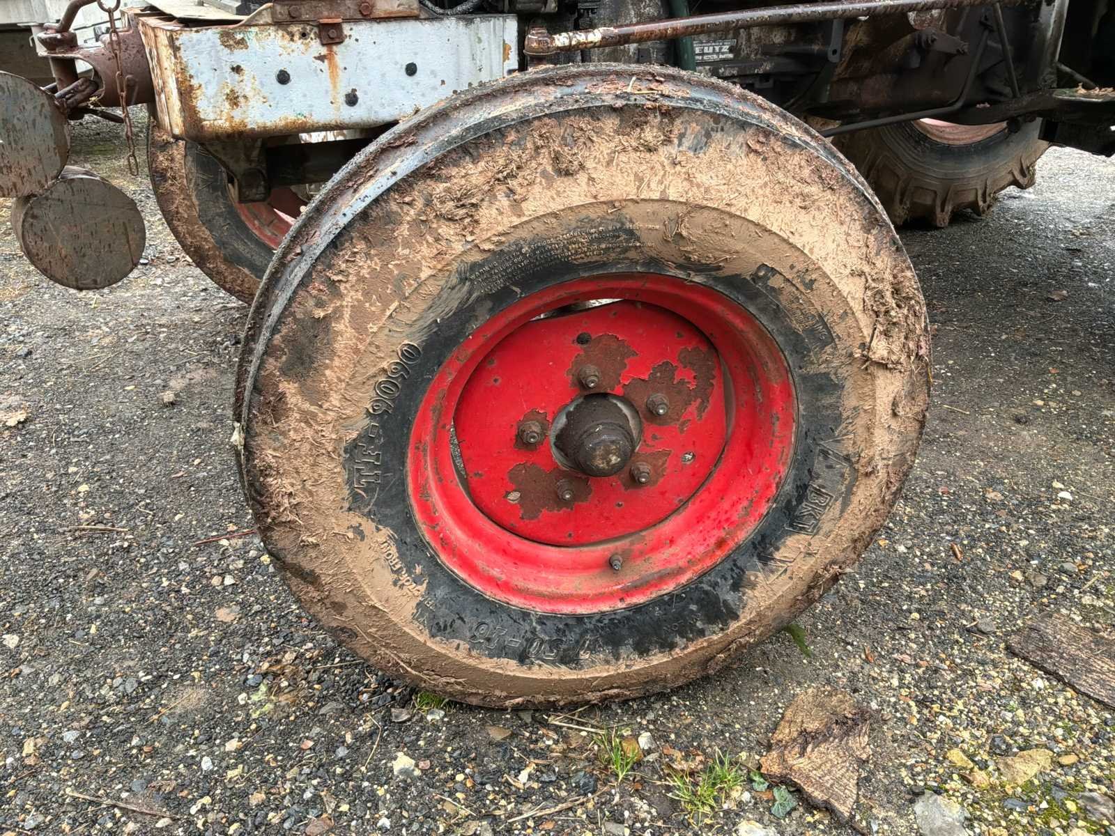 Luchtkoelingsmotor. Bij de verkoop van de tractor is een militaire aanhanger inbegrepen, evenals een benette, een sneeuwploeg om te lassen en een vrachtwagenas. No Merk: Deutz Type: 6006 Bouwjaar: 1973 Serienummer: 75631664 Eigen gewicht: 2570kg