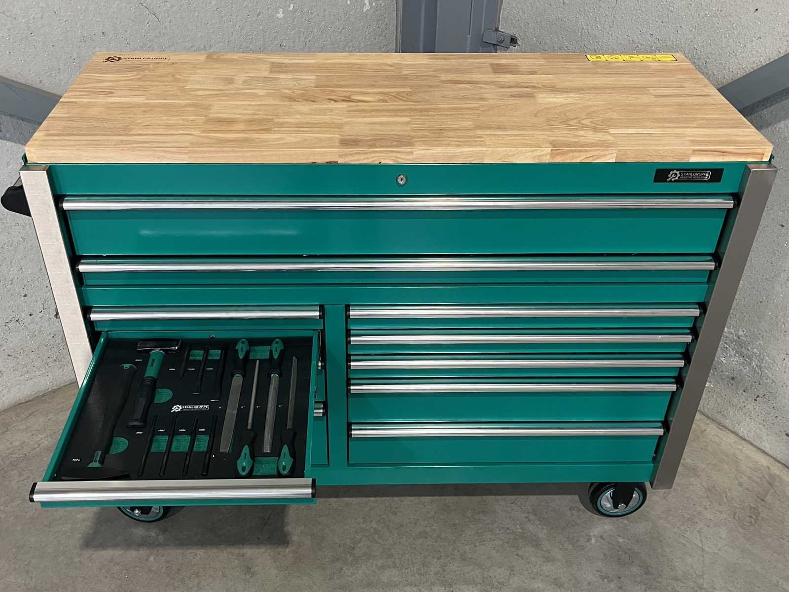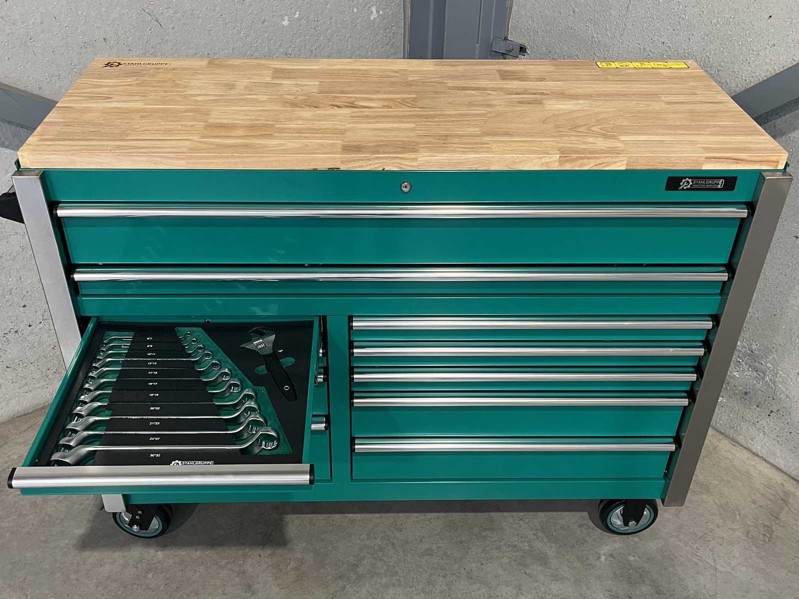 <li><b>Heavy Duty gereedschapswagen</b></li> <li><b>gebruik:</b> voor professionals</li> <li><b>aantal laden:</b> 11 laden</li> <li><b>aantal gevulde laden:</b> 9 gevulde laden</li> <li><b>gereedschap:</b> chroom-vanadium gereedschap</li> <li><b>inhoud:</b> <ul> <li>29-delige ring-steeksleutel set (6 mm - 50 mm)</li> <li>3 ratelsleutel sets met doppen & bitsen (1/4”, 3/8” & 1/2”)</li> <li>11-delige ring-ringsleutel set (6*7 mm - 30*32 mm)</li> <li>verstelbare moersleutel</li> <li>12-delige tangen set</li> <li>2 hamers & 4 vijlen</li> <li>puntslag en beitel set</li> <li>12 schroevendraaiers</li> <li>inbussleutels, Torxsleutels, precisiegereedschap</li> <li>21-delige T-sleutelset</li> <li>34-delige krachtdoppen set (12 mm - 50 mm) + Torx & inbus doppen & ratelsleutel 3/4,”</li> <li>LED-lamp, zaag, schaar, mes, meetgereedschappen</li> <li>enzovoort...</li> </ul> </li> <li><b>staat:</b> ongebruikt, in de originele verpakking</li> <li><b>afmetingen:</b> L 140 x B 60 x H 110 cm</li> Nee Merk: Stahlgruppe Type: SG56
