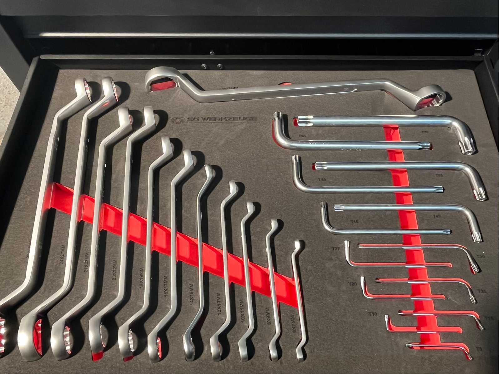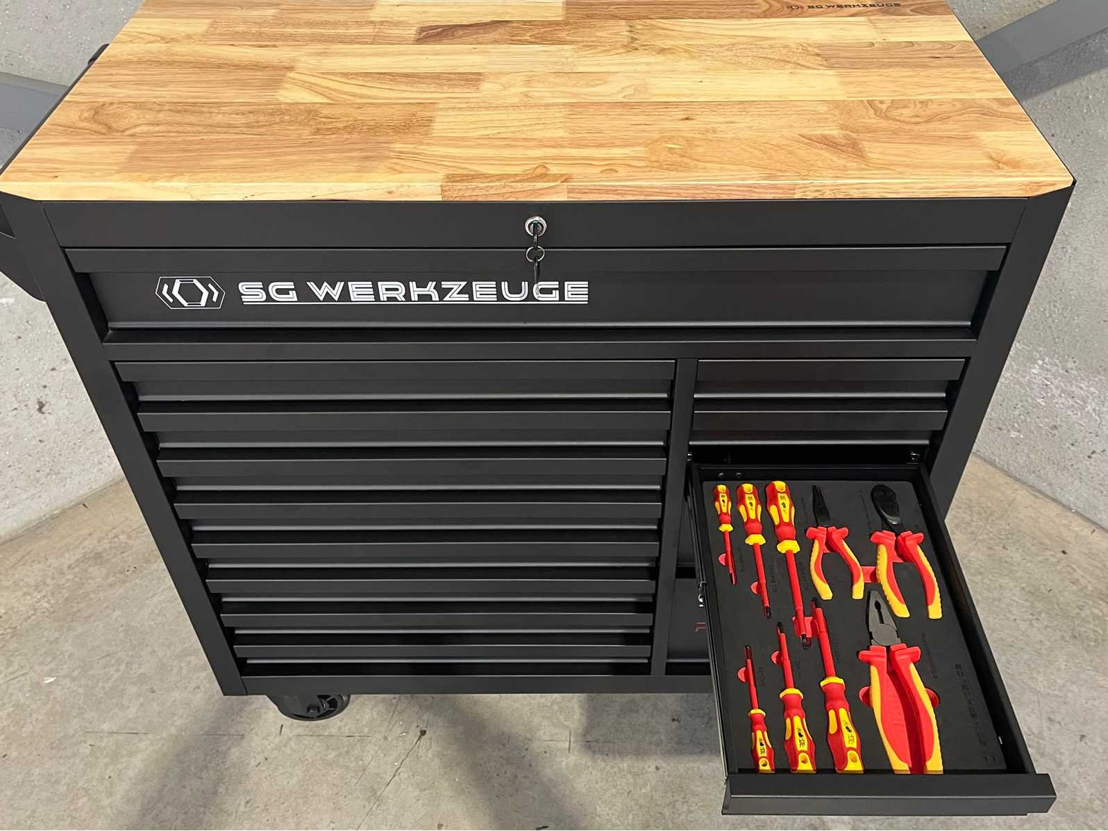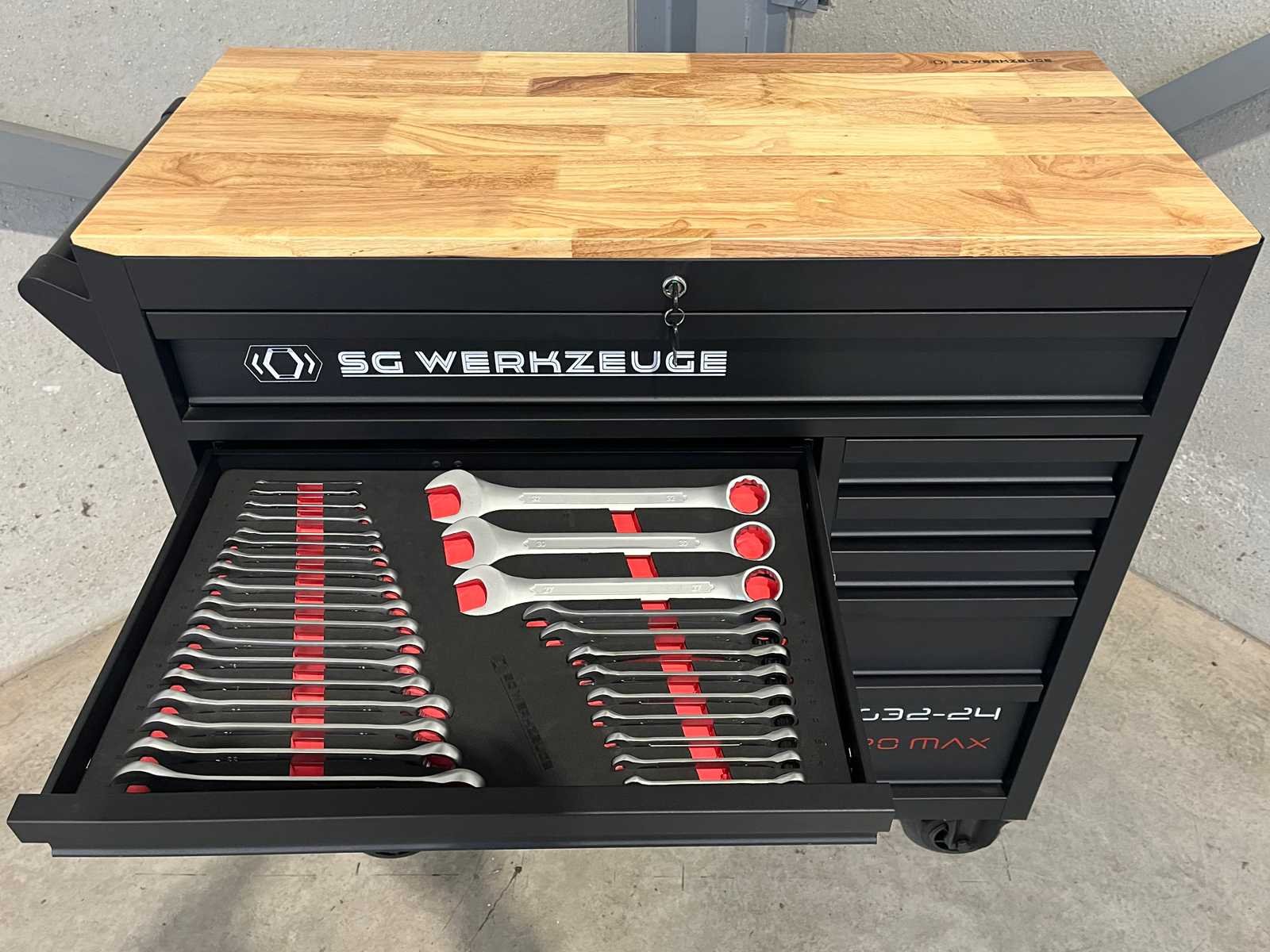 <ul> <li><strong>Merk:</strong> Stahlgruppe</li> <li><strong>Type:</strong> SG32-24</li> <li><strong>Aantal laden:</strong> 14 laden</li> <li><strong>Aantal gevulde laden:</strong> 11 gevulde laden</li> <li><strong>Materiaal:</strong> Chrome Vanadium gereedschap</li> <li><strong>Inhoud:</strong> <ul> <li>3 complete dopsleutelsets (1/2”, 3/8” & 1/4”)</li> <li>momentsleutel (20-210 Nm)</li> <li> ring-steeksleutelset (6-32 mm) + steek & ring-ratelsleutelset (8-19 mm)</li> <li>ringsleutelset (6-32 mm) & Torx sleutelset (T6-T70)</li> <li>beitels en pendrijvers (18 stuks)</li> <li>T-greep dopsleutels ( 6-14 mm) & vijlen (4 stuks)</li> <li>schroevendraaiers (21 stuks)</li> <li>T-greep inbussleutels (10 stuks) & T-greep Torxsleutels (10 stuks)</li> <li>diverse tangen (9 stuks)</li> <li>krachtdoppen (34 stuks)</li> <li>diverse hamers (3 stuks)</li> <li>VDE-gereedschap (9 stuks)</li> <li>enzovoort...</li> </ul> </li> <li><strong>Staat:</strong> ongebruikt, in de originele verpakking</li> </ul> Nee Merk: Stahlgruppe Type: SG32-24