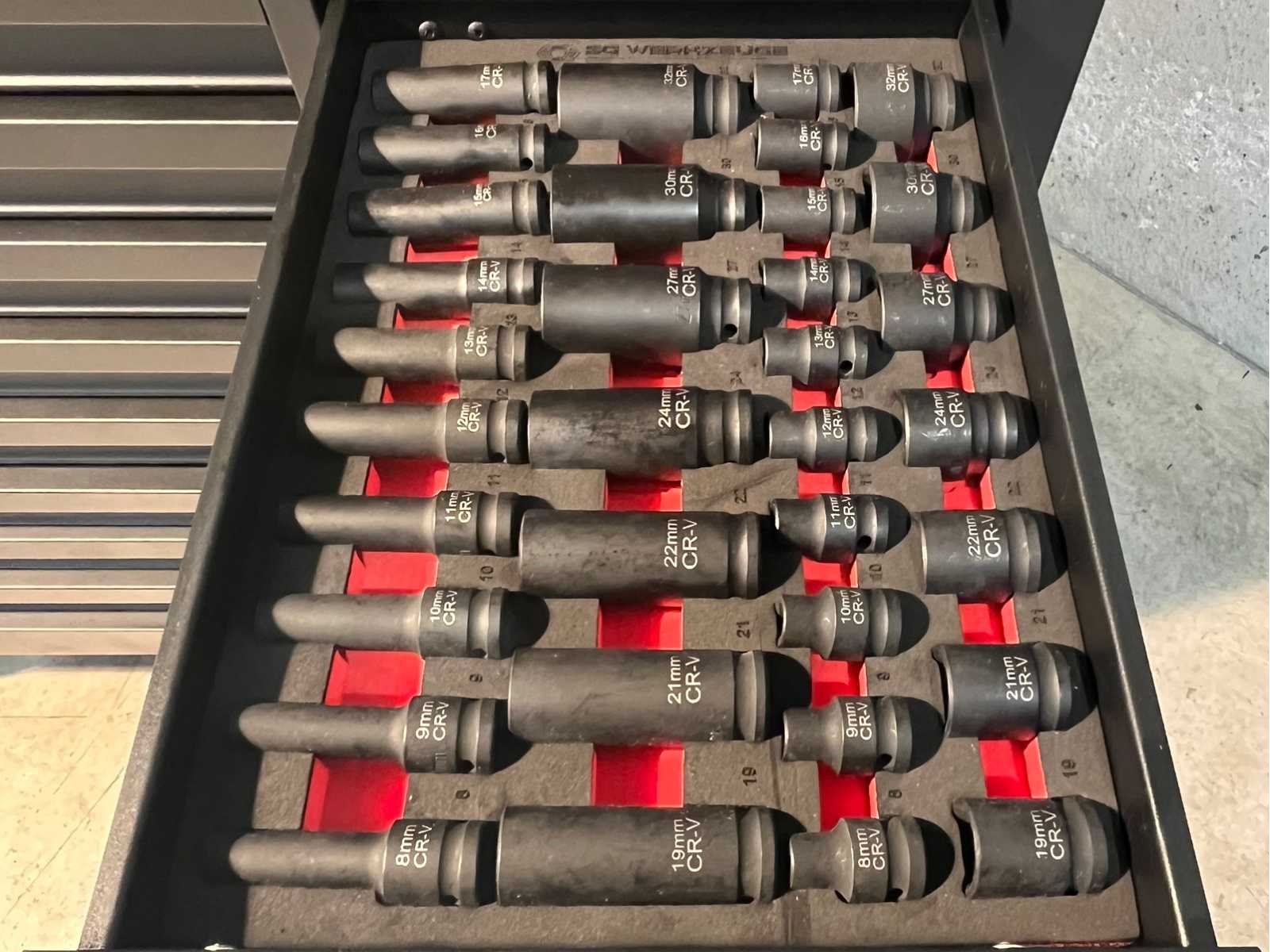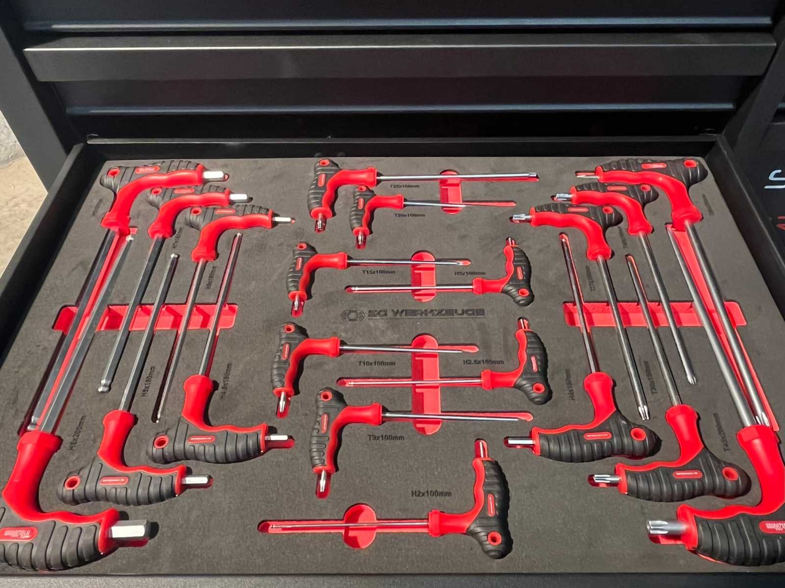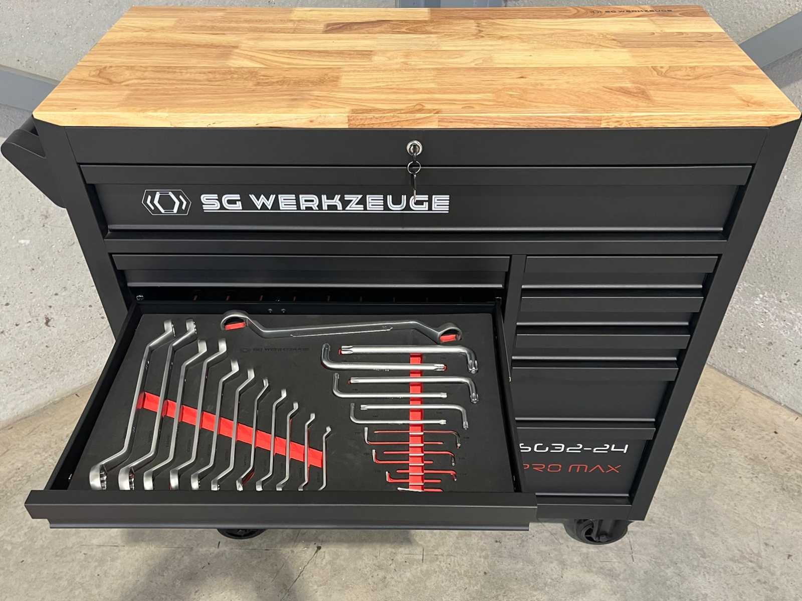 <ul> <li><strong>Merk:</strong> Stahlgruppe</li> <li><strong>Type:</strong> SG32-24</li> <li><strong>Aantal laden:</strong> 14 laden</li> <li><strong>Aantal gevulde laden:</strong> 11 gevulde laden</li> <li><strong>Materiaal:</strong> Chrome Vanadium gereedschap</li> <li><strong>Inhoud:</strong> <ul> <li>3 complete dopsleutelsets (1/2”, 3/8” & 1/4”)</li> <li>momentsleutel (20-210 Nm)</li> <li> ring-steeksleutelset (6-32 mm) + steek & ring-ratelsleutelset (8-19 mm)</li> <li>ringsleutelset (6-32 mm) & Torx sleutelset (T6-T70)</li> <li>beitels en pendrijvers (18 stuks)</li> <li>T-greep dopsleutels ( 6-14 mm) & vijlen (4 stuks)</li> <li>schroevendraaiers (21 stuks)</li> <li>T-greep inbussleutels (10 stuks) & T-greep Torxsleutels (10 stuks)</li> <li>diverse tangen (9 stuks)</li> <li>krachtdoppen (34 stuks)</li> <li>diverse hamers (3 stuks)</li> <li>VDE-gereedschap (9 stuks)</li> <li>enzovoort...</li> </ul> </li> <li><strong>Staat:</strong> ongebruikt, in de originele verpakking</li> </ul> Nee Merk: Stahlgruppe Type: SG32-24