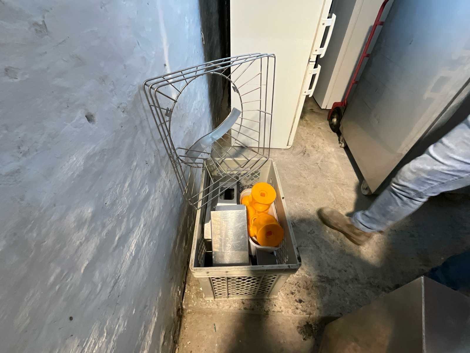 Met alle toebehoren No Merk: Zumex Type: Speed pro self service pod Materiaal: Inox Serienummer: 422733 Totale afmeting L: 53cm Totale afmeting Breedte: 68cm Totale afmeting Hoogte: 180cm