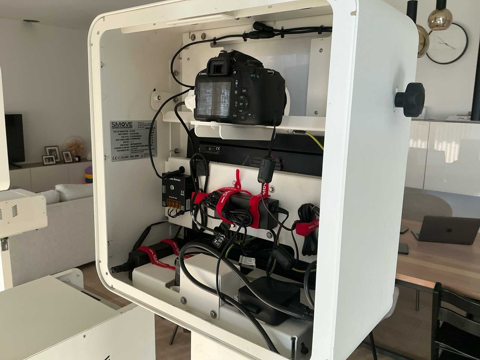 Smove fotobooth bestaande uit 1 fotocamera en printer, inclusief flightcase voor transport. Verkeert in werkende staat. De software dient door de koper te worden aangeschaft, tenzij anders overeengekomen met de verkoper. Nee Merk: 2022 Photobooth Model: Smove Wifi: true Video functie: true