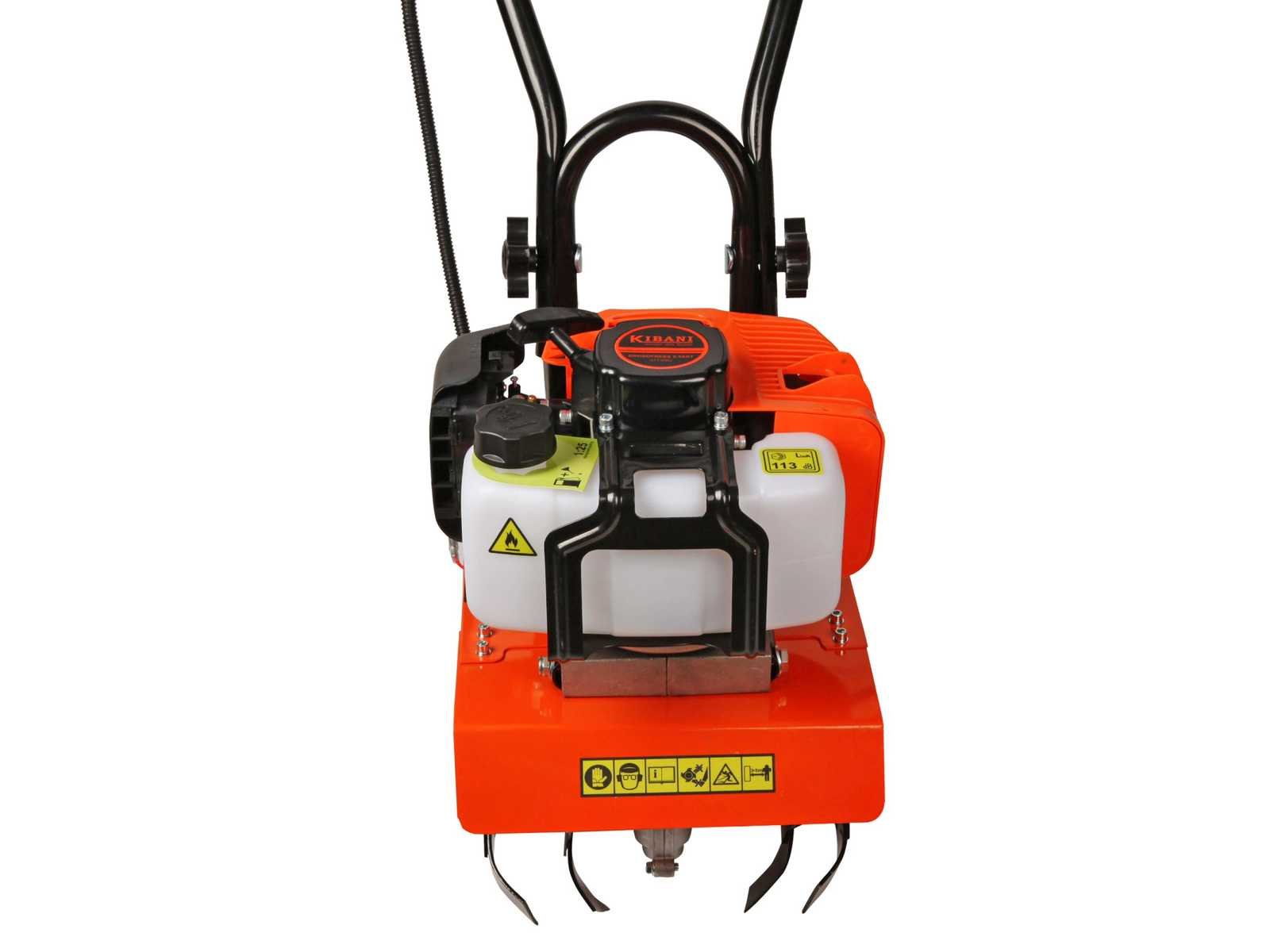 Gewicht 16 kg Afmetingen 80 × 40 × 70 cm Vermogen 52cc Stationair toerental 3000±200 toeren p/min Motor 2-takt Werkbreedte messen 300 mm Diepte messen 100-150 mm Inhoud brandstoftank 1.2 liter Type brandstof Euro 95 Mengverhouding 1:25 Type olie transmissie olie Transmissie vooruit/achteruit Materiaal grondfrees gepoedercoat staal Materiaal messen gehard staal Gewicht grondfrees 14 kg Keurmerken CE Merk Kibani® Nee Merk: Kibani Bouwjaar: 2025 Eigen gewicht: 16kg Brandstof: Benzine Totale afmeting L: 800mm Totale afmeting Breedte: 400mm Totale afmeting Hoogte: 700mm