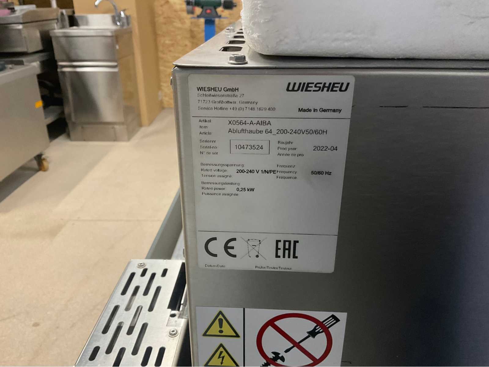 WIESHEU Euromat 64 S oven + WIESHEU Ablufthaube 64 afzuigkap – Jaar 2022 WIESHEU Euromat 64 S professionele bakkerijoven, jaar 2022, verkocht met de bijpassende WIESHEU Ablufthaube 64 afzuigkap. Compact en hoogpresterend pakket, ideaal voor bakkerijen, snackbars, foodtrucks, broodjeswinkels of productielaboratoria. Ovenkenmerken (Euromat 64 S): Model: 2500-A-BBBCBAA Jaar: 2022 Vermogen: 9,4 kW Voeding: 400 V / 3N/PE Huidige beoordeling: 13,6 A IP-klasse: IPX3 Dampdrukbereik: 150–600 kPa Serienummer: 10473533 Kenmerken van de kap (Ablufthaube 64): Model: X0564-A-AIBA Jaar: 2022 Voeding: 200–240 V Frequentie: 50/60 Hz Vermogen: 0,25 kW Serienummer: 10473524 Non Merk: Wiesheu Model: Ablufthaube 64 Product type: X0564-A-AIBA Kleur: Grijs Lengte: 600 Breedte: 400 Materiaal: Roestvrij staal