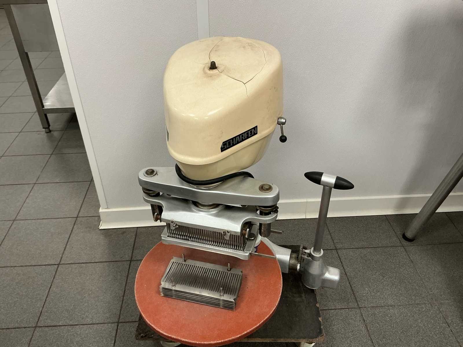 De machine bevindt zich in gebruikte maar werkende staat. No Merk: Scharfen Type: Vleesvermalser Aansluiting: 400V