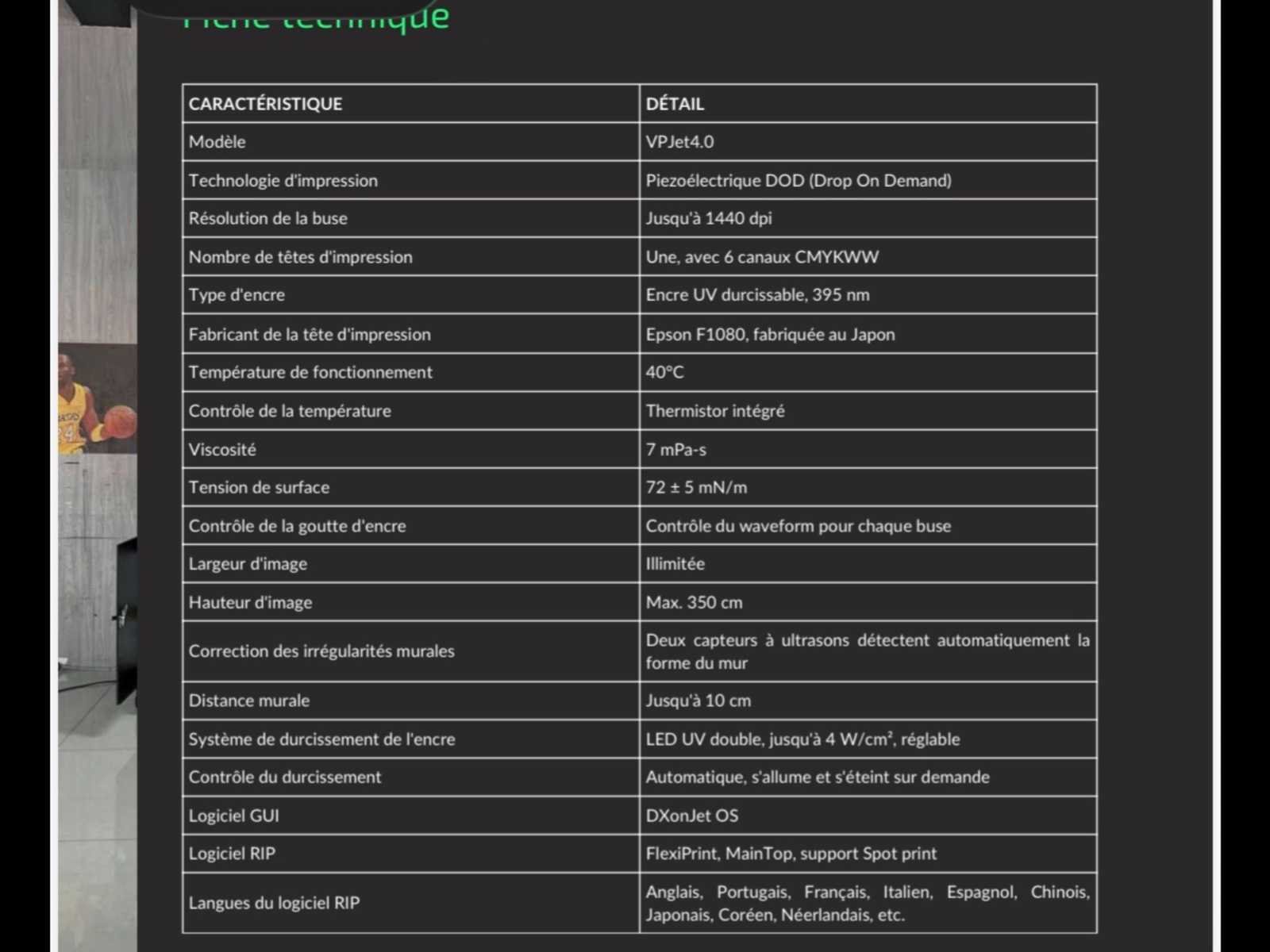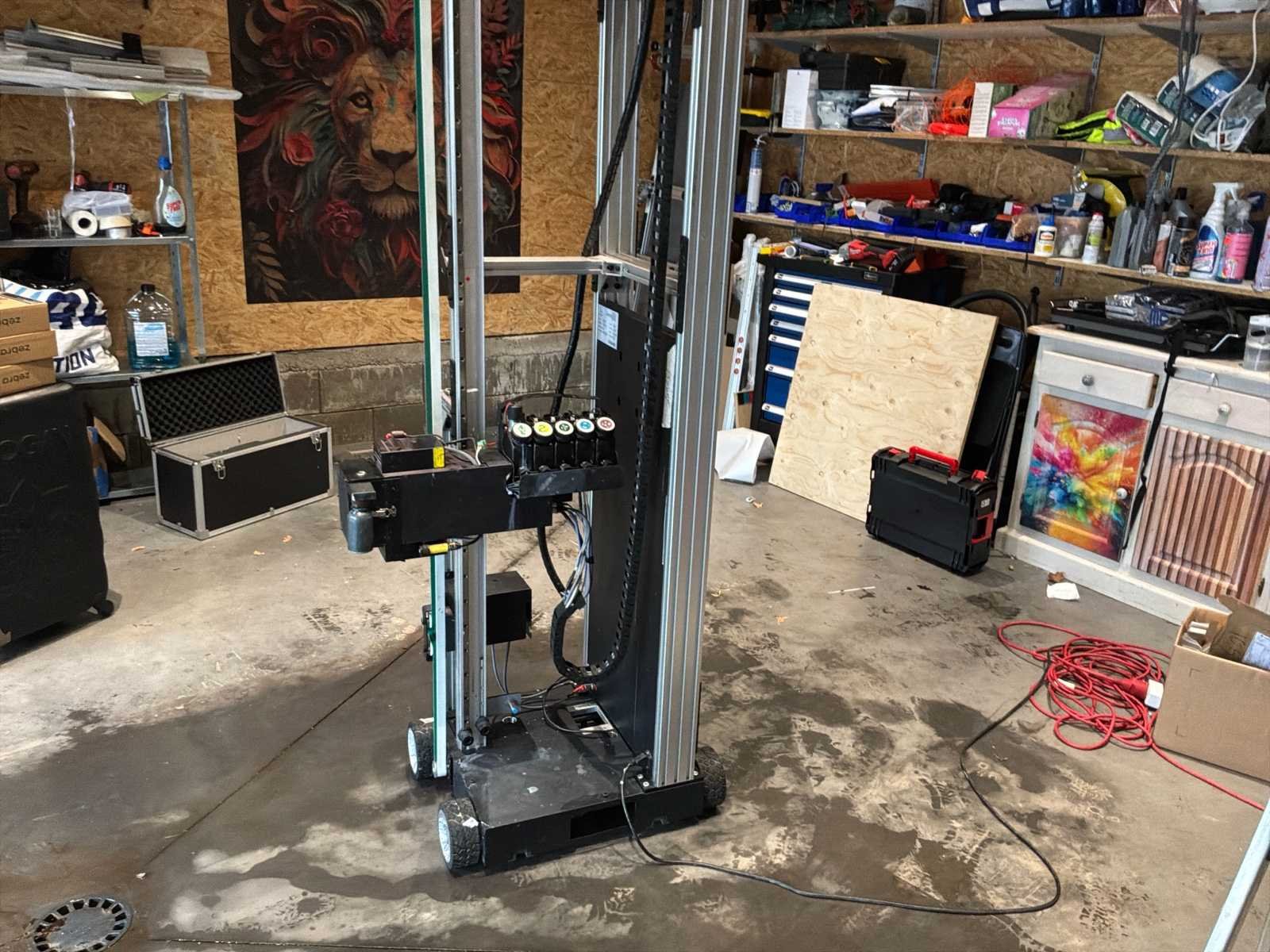 Professionele verticale wandprinter gebruikt UV LED-inkjettechnologie om direct op muren, stijve oppervlakken en andere verticale media te printen zonder papier of vinyl. Reserveonderdelen en bijna nieuwe staat van de printkop. Stabilisatorrail 5m 10 toepassingen Het gebruiksprogramma is inbegrepen evenals 6 flessen inkt Laatste interview: januari 2026 No Merk: DXonJet Model: VPJET4.0 Kleur: Grijs en zwart Gewicht: 70kg Lengte: 63cm Breedte: 63cm Hoogte: 140cm