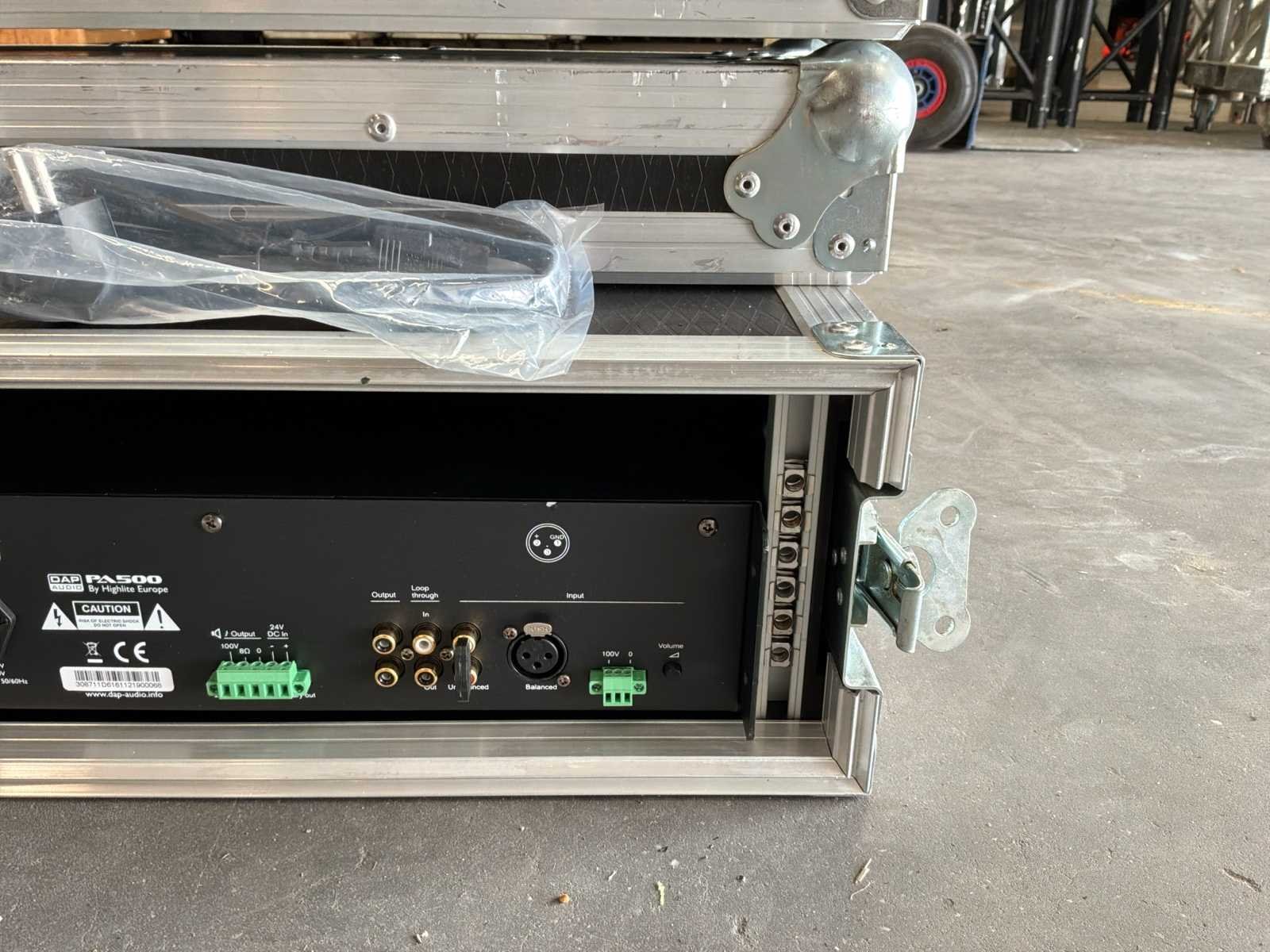 Gloednieuw en functioneel geleverd met flycase No Merk: DAP AUDIO Type: Pa500 Eindversterker: true Geïntegreerde versterker: true Stereo: true