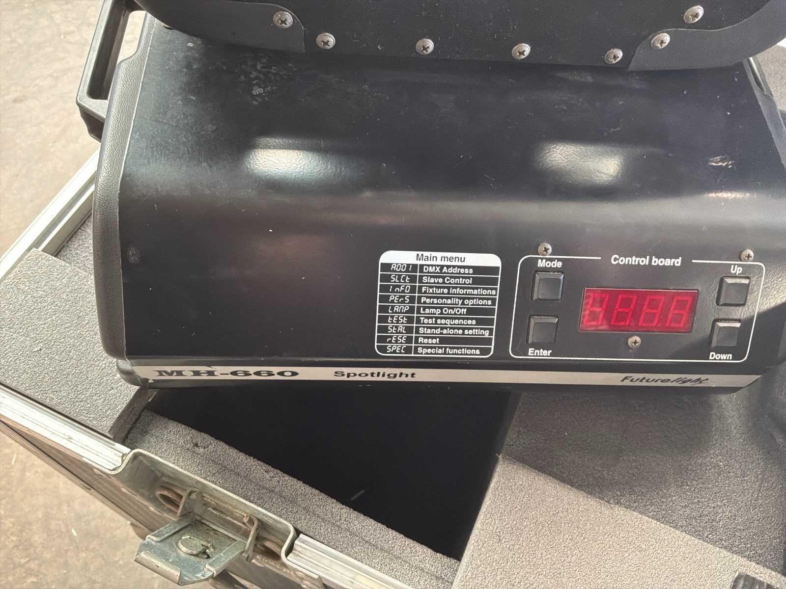 Geleverd met flycase No Merk: Future light Type: Mh-660 DMX: true Met flightcase: true Aansluiting: 220V