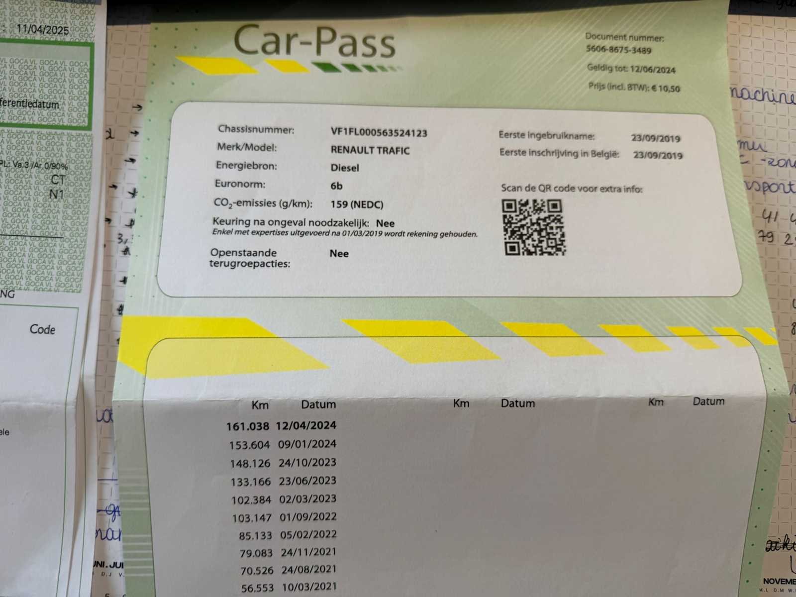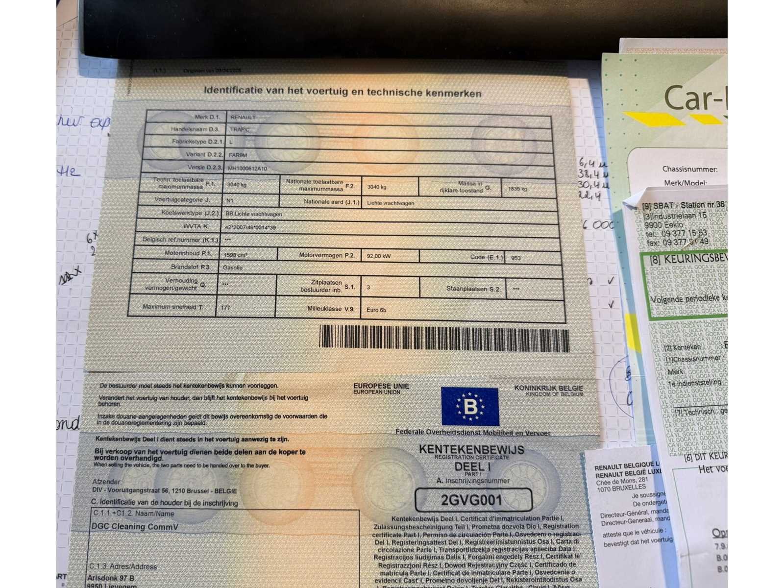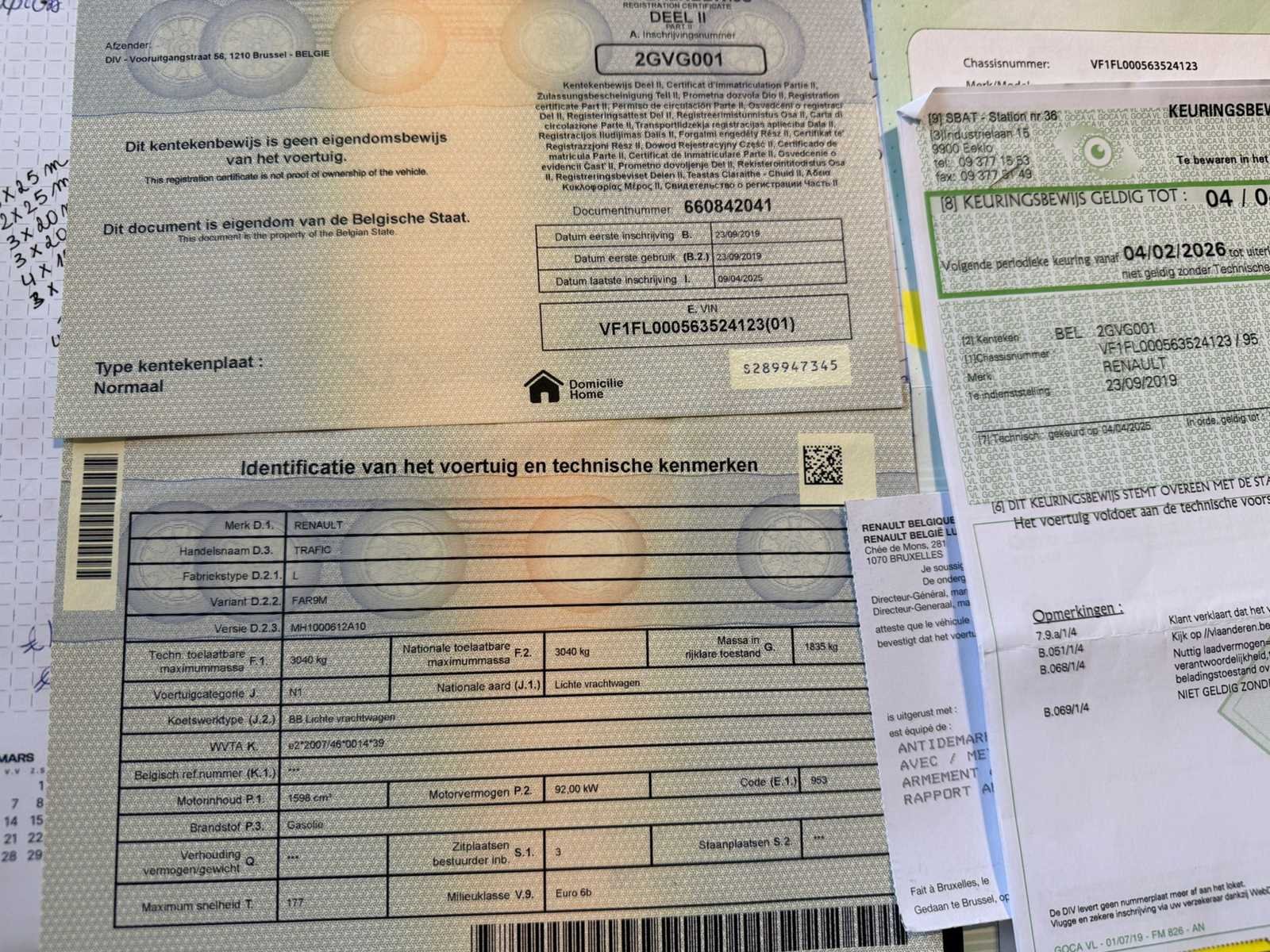 No Merk: Renault Model: Trafic Bouwjaar: 2019 Chassisnummer: VF1FL000563524123(01) Afgelezen kilometerstand: 221677km Cilinderinhoud: 1598cc Vermogen (kW): 92kW Brandstof: Diesel Datum eerste toelating: 23/09/2019 Transmissie: handgeschakeld Nationaliteit documenten: Belgisch Carrosserie: Lichte vrachtwagen Emissieklasse: Euro 6b Kentekenpapieren compleet?: true Boorddocumenten aanwezig?: true