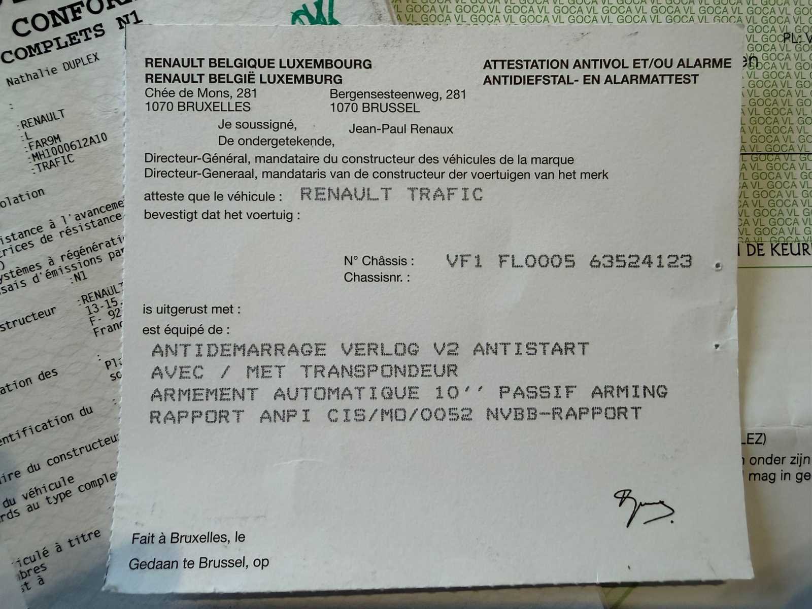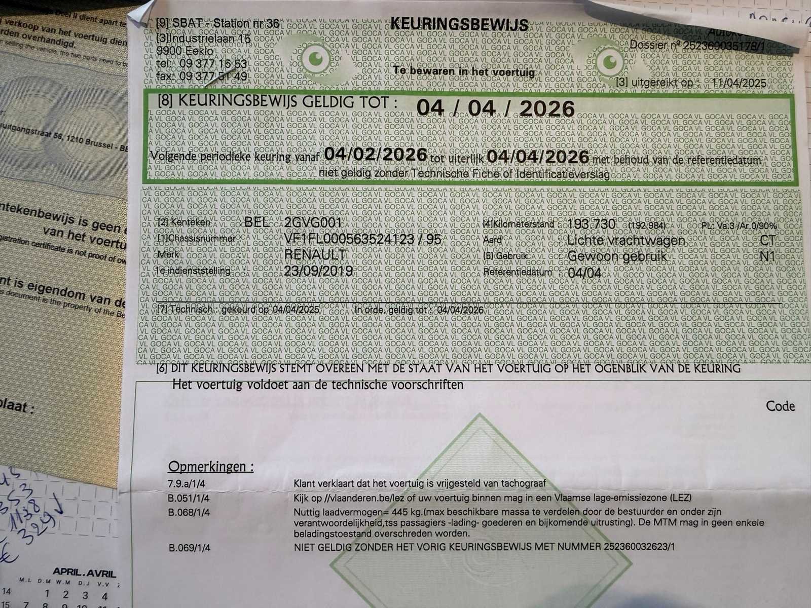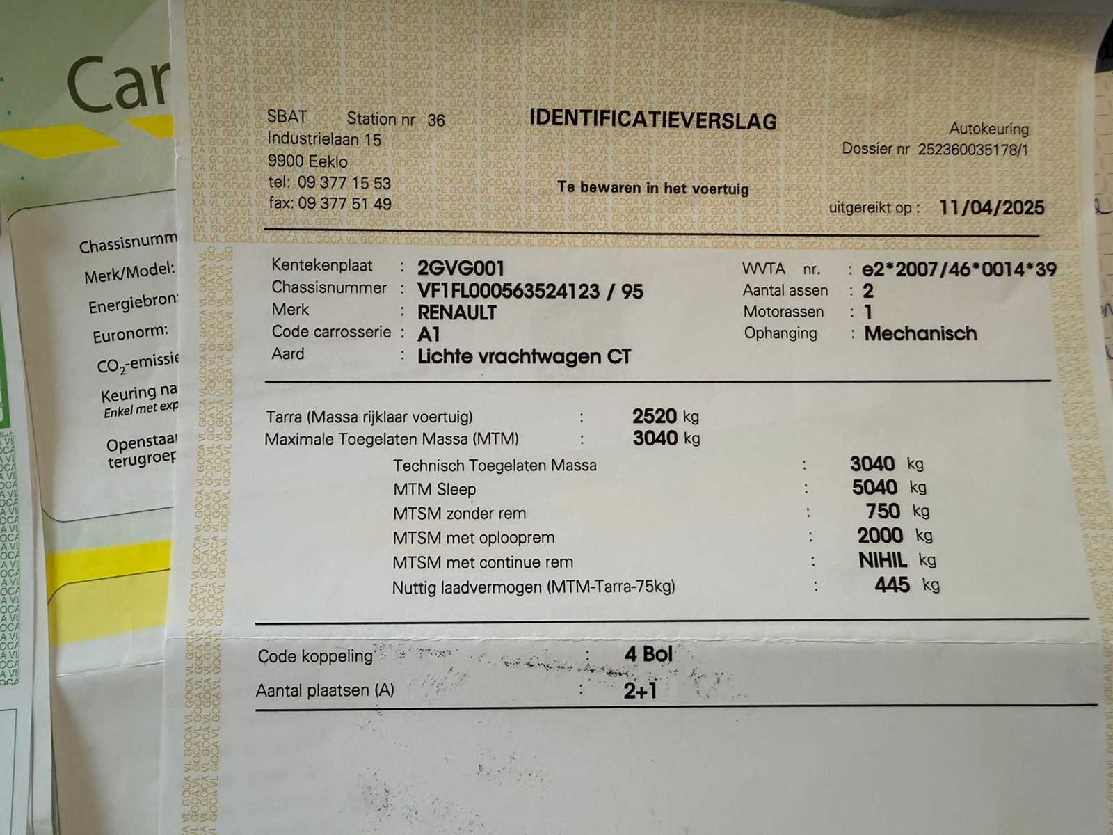No Merk: Renault Model: Trafic Bouwjaar: 2019 Chassisnummer: VF1FL000563524123(01) Afgelezen kilometerstand: 221677km Cilinderinhoud: 1598cc Vermogen (kW): 92kW Brandstof: Diesel Datum eerste toelating: 23/09/2019 Transmissie: handgeschakeld Nationaliteit documenten: Belgisch Carrosserie: Lichte vrachtwagen Emissieklasse: Euro 6b Kentekenpapieren compleet?: true Boorddocumenten aanwezig?: true