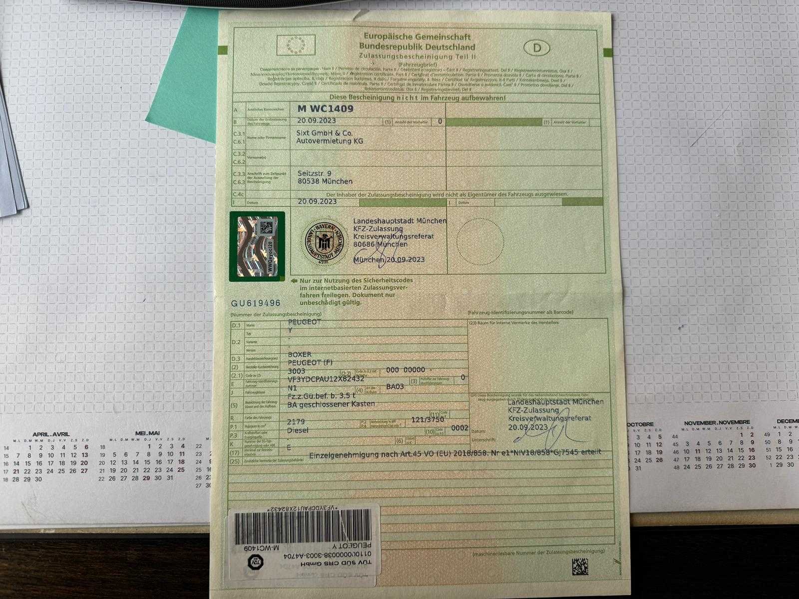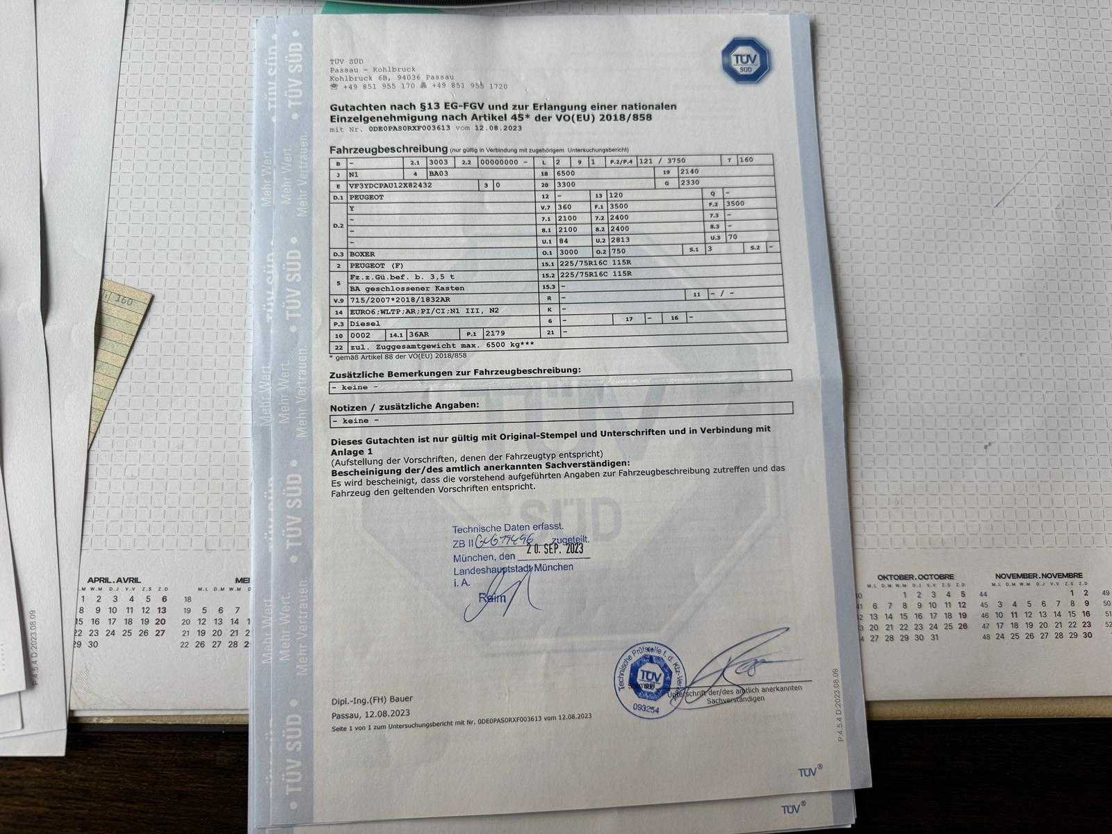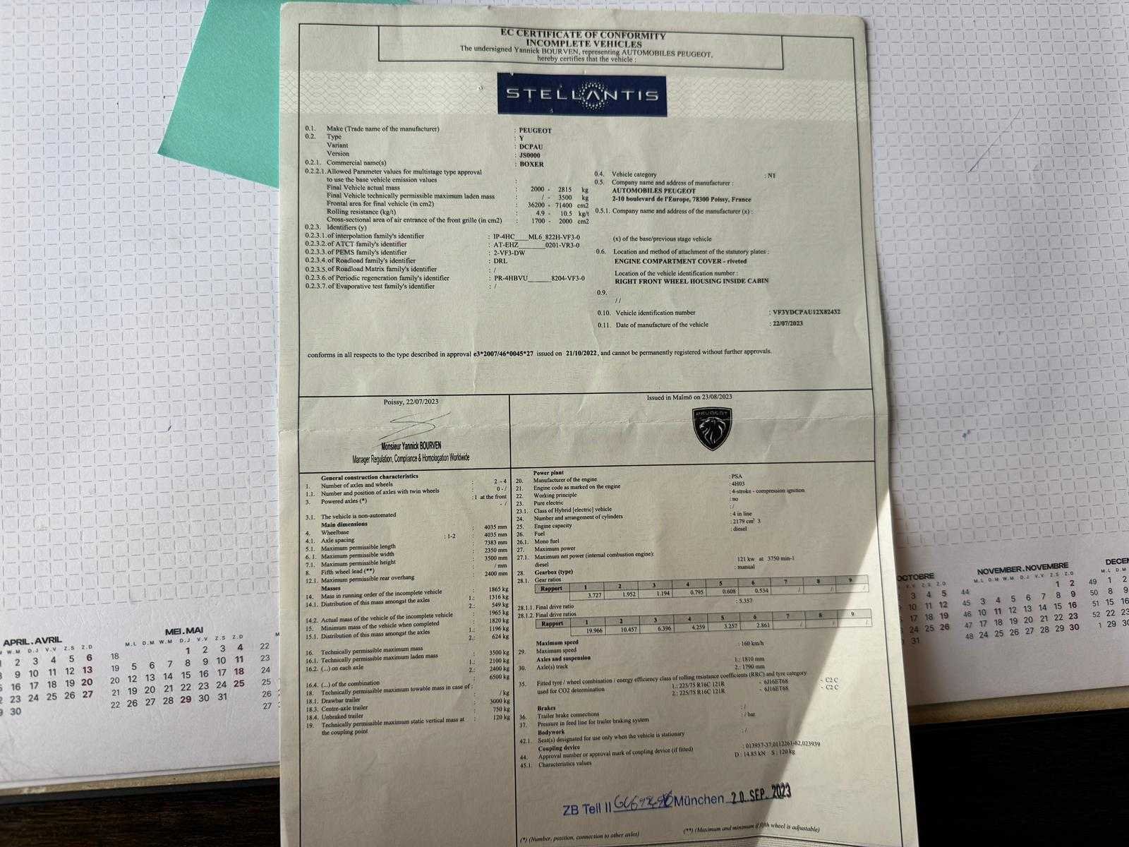 No Merk: Peugeot Type: Y Model: Boxer Bouwjaar: 2023 Chassisnummer: VF3YDCPAU12X82432 Afgelezen kilometerstand: 60910km Cilinderinhoud: 2179cc Vermogen (kW): 103kW Brandstof: diesel Aantal zitplaatsen: 3 Kleur: wit Nationaliteit documenten: Duits Carrosserie: Lichte vrachtwagen Emissieklasse: Euro 6 Boorddocumenten aanwezig?: true