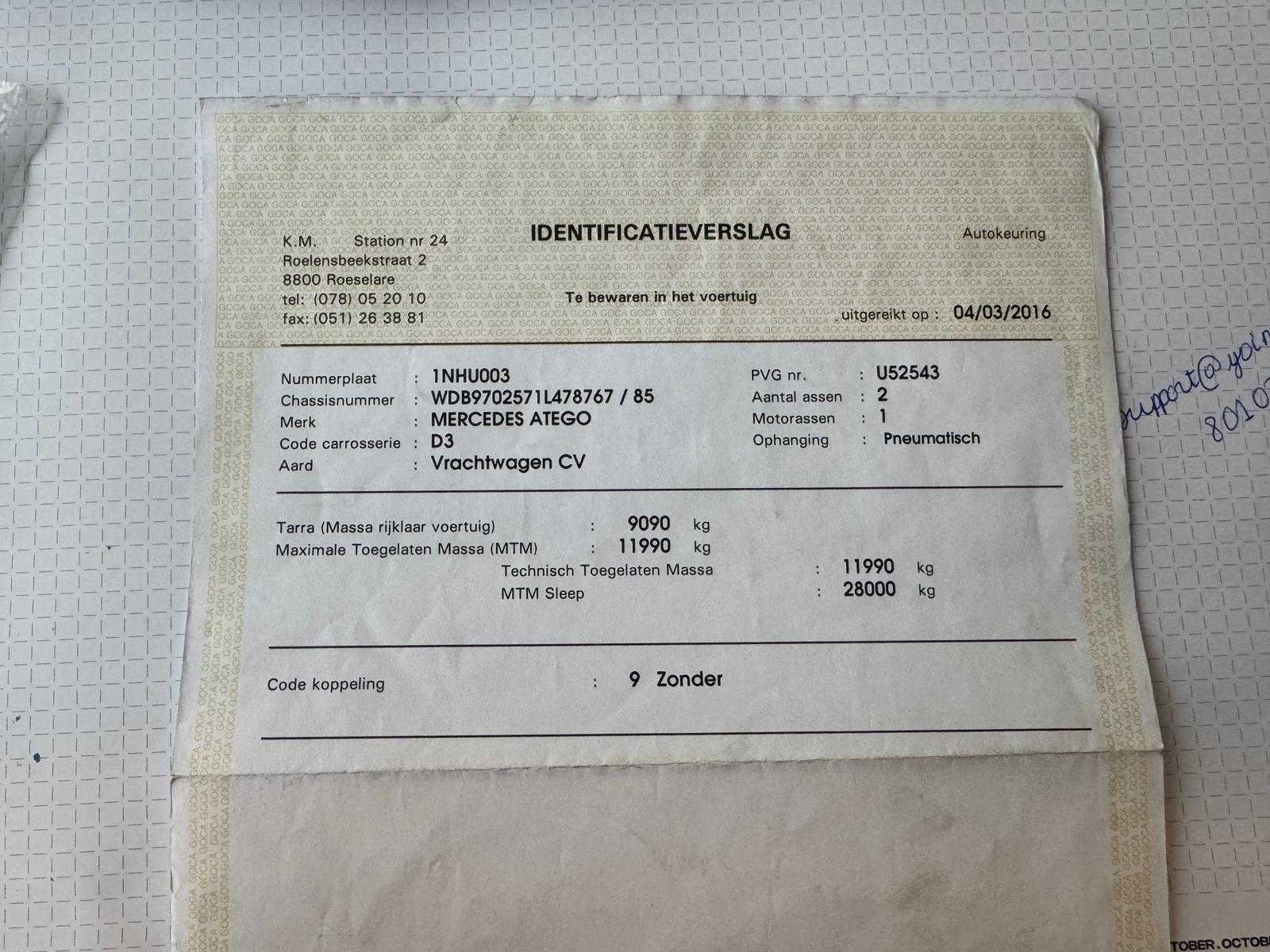 Vrachtwagen carosserie + interieur in nieuwe staat. kraan HIAB en laadbrug werken perfect. 268.443 km Euro 5 11/06/2010 6374 cc 210 kw 2 zitplaatsen nachtchauffage airco laadbrug kraan HIAB Technisch toegelaten massa : 11.990 kg MTM sleep : 28.000 kg Nee Merk: Mercedes Type: Atego 1229 RL/11.9 Bouwjaar: 2010 Chassisnummer VIN: WDB9702571L478767(01) Cilinderinhoud: 6374cc Kilometerstand bij opname: 268443km Datum eerste toelating: 11/06/2010 Fuel Type: Diesel Laadkraan: true Hydraulische laadklep: true Nationaliteit documenten: Belgisch Kentekenpapieren compleet?: true Handgeschakelde versnellingsbak: true Diesel: true
