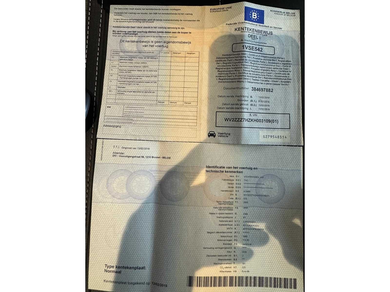 Carosserieschade No Merk: Volkswagen Type: Transporter Model: Kombi Bouwjaar: 2018 Chassisnummer: WV2ZZZ7HZKH003109(01) Afgelezen kilometerstand: 349000km Cilinderinhoud: 1968cc Vermogen (kW): 112kW Brandstof: Diesel Datum eerste toelating: 13/02/2019 Transmissie: automaat Aantal zitplaatsen: 2 Kleur: Grijs Energielabel: Euro 6b CO2-uitstoot NEDC: 223 Kentekenpapieren compleet?: true Boorddocumenten aanwezig?: true