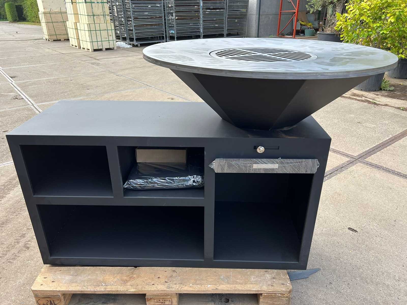 Diameter bakplaat : 1000 mm Afmeting Onderstel : 1300 x 500 mm Hoogte : 1000 mm Incl. beschermhoes ! No