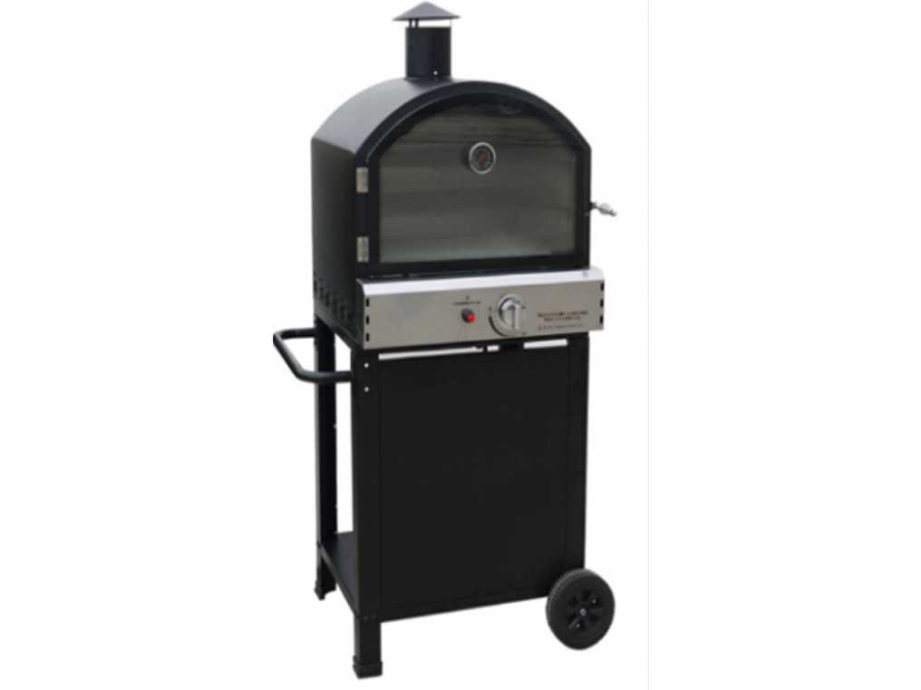 Sice : 800 x 680 x 1430 mm Materiaal van brander : 304 Stainless steel Buiten materiaal : Staal met powder coating Glazen deur met stalen handvat Grote van kook ruimte : 491 x 427 mm Gas used : Propane gas Food safe Pizza stones ice : 380 x 355 mm Full view front window with temp. gauge No