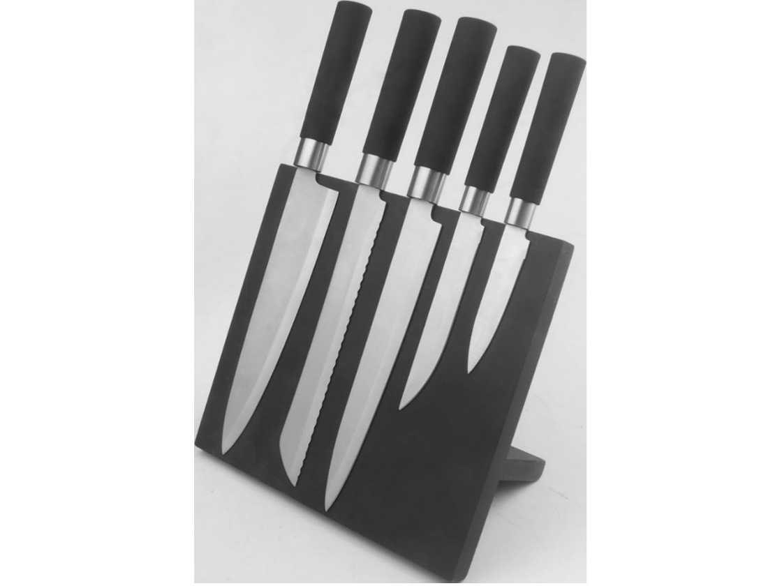 6-delige messenset : Koksmes 8"(1.5mm) Broodmes 8"(1.5mm) Snijmes 8” (1.5mm) Officemes 5” (1.2mm) Vouwmes 3” (1.2mm) Magnetisme messenhouder. No