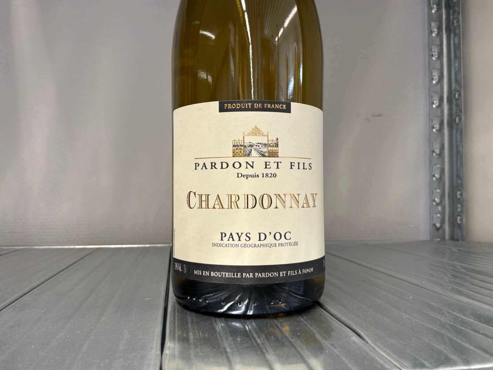 Nee Merk: Chardonnay Pays d’Oc Pardon et fils Jaargang: 2018 Land: Frankrijk Alcohol percentage: 13% Inhoud: 75cl Met doos: true
