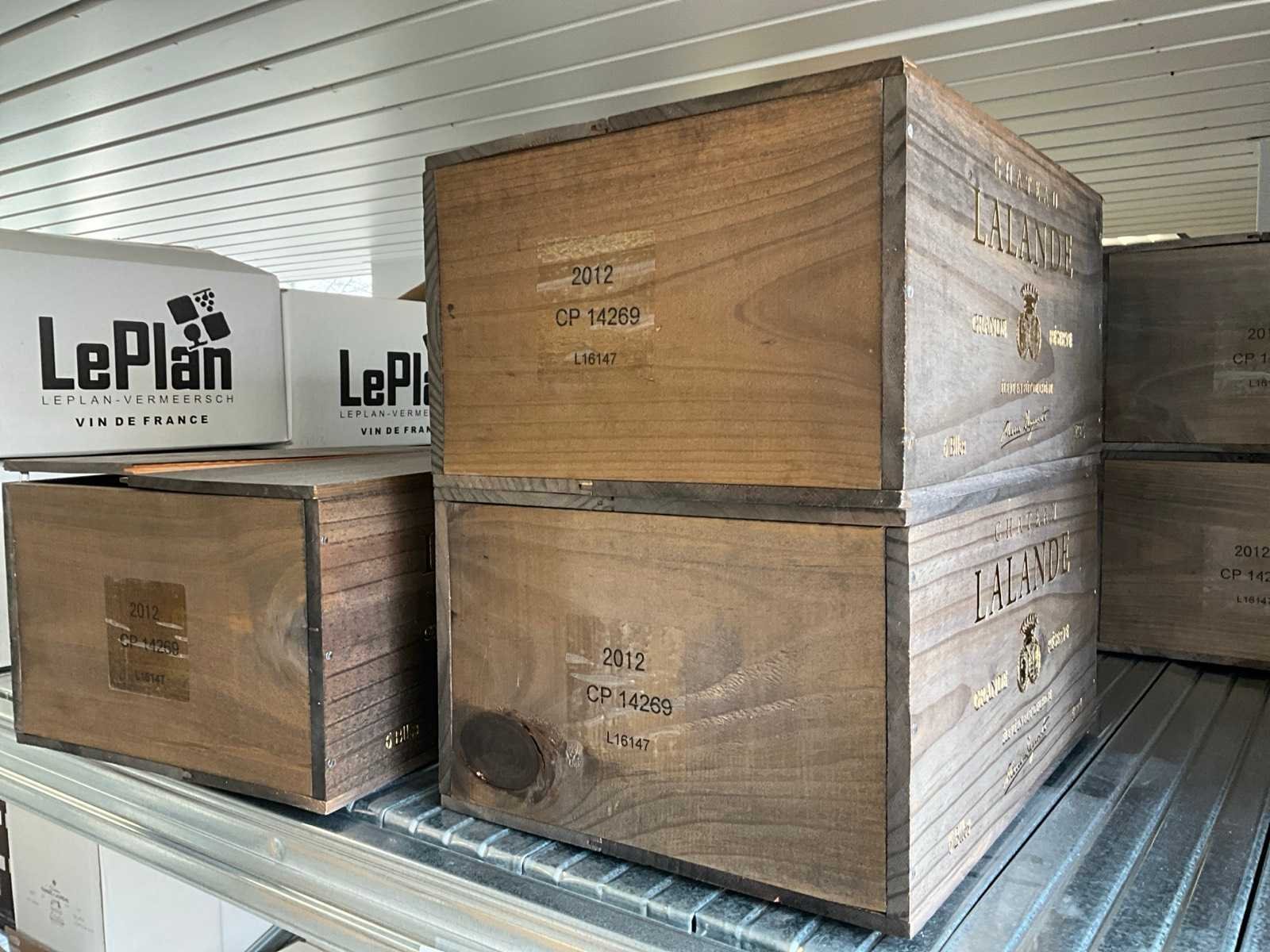Waaronder liggende in 4 gesloten kisten, 1 geopende Nee Merk: Château Lalande Jaargang: 2012 Alcohol percentage: 13.5% Inhoud: 75cl