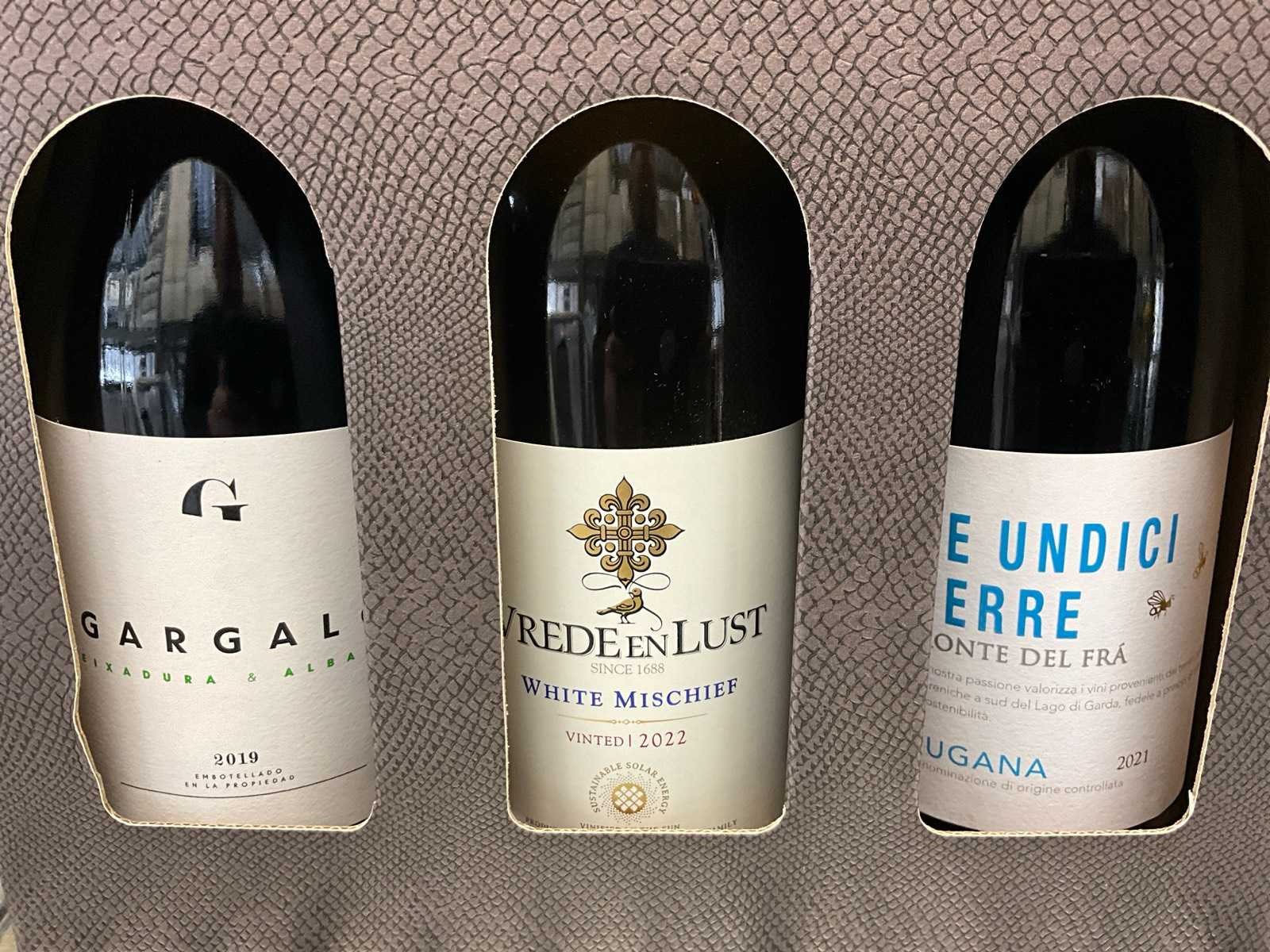 Waaronder 9x Gargalo T&E, Vrede en Lust white mischief, Le Undici Terre Monte del Frá liggende in geschenkverpakking. Nee
