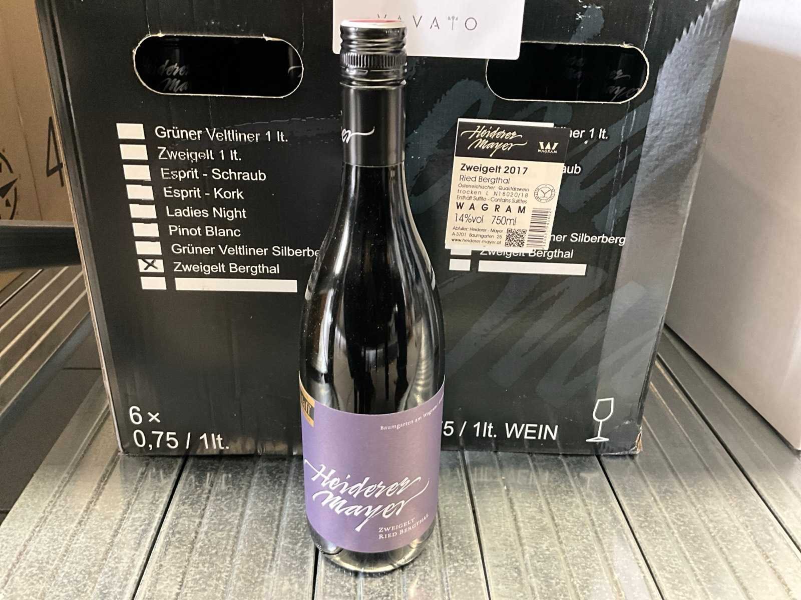 Liggende in 4 dozen Nee Merk: Heiderer Mayer Jaargang: 2017 Product type: Zweigelt Bergthal Alcohol percentage: 14% Inhoud: 75cl