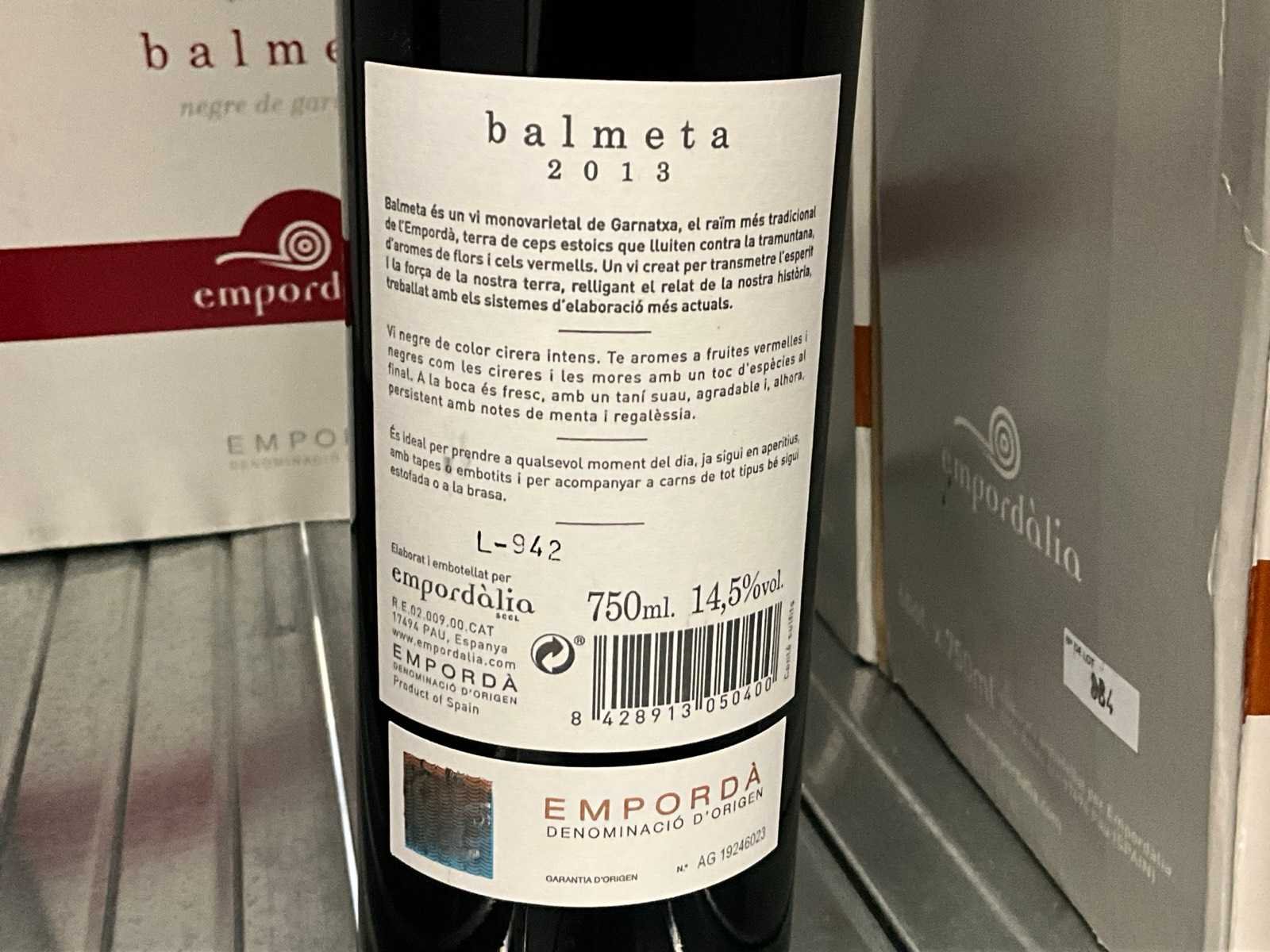 Nee Merk: Empordàlia Jaargang: 2013 Product type: Balmeta Alcohol percentage: 14.5% Inhoud: 75cl