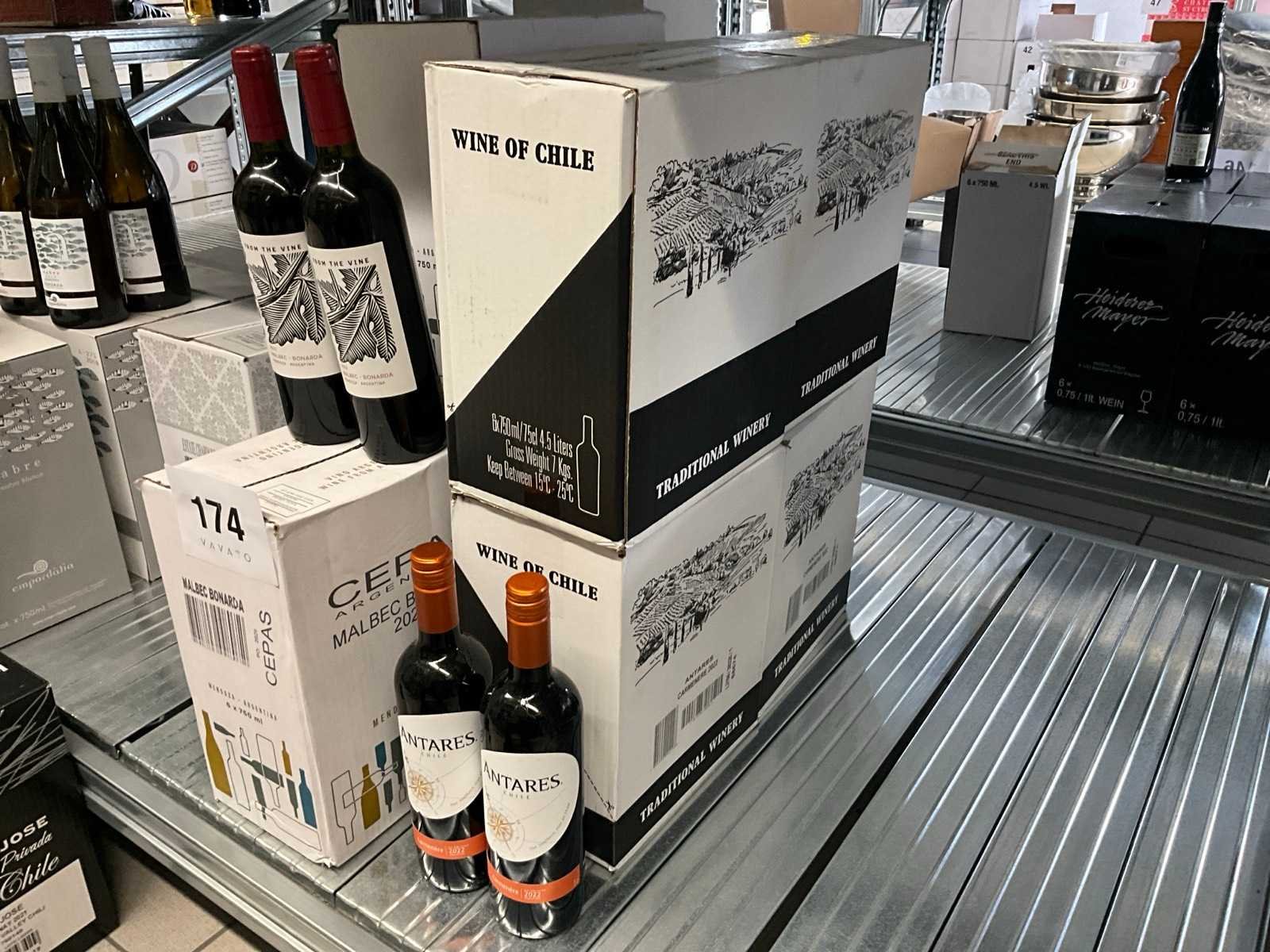 Bestaande uit 26fl Antares Carmenère 2022, 20fl Cepas Bonarda 2021, liggende in 7 gesloten doze Nee