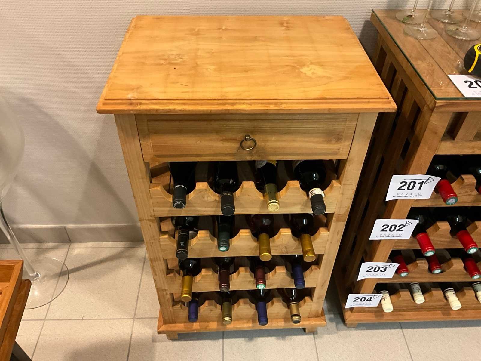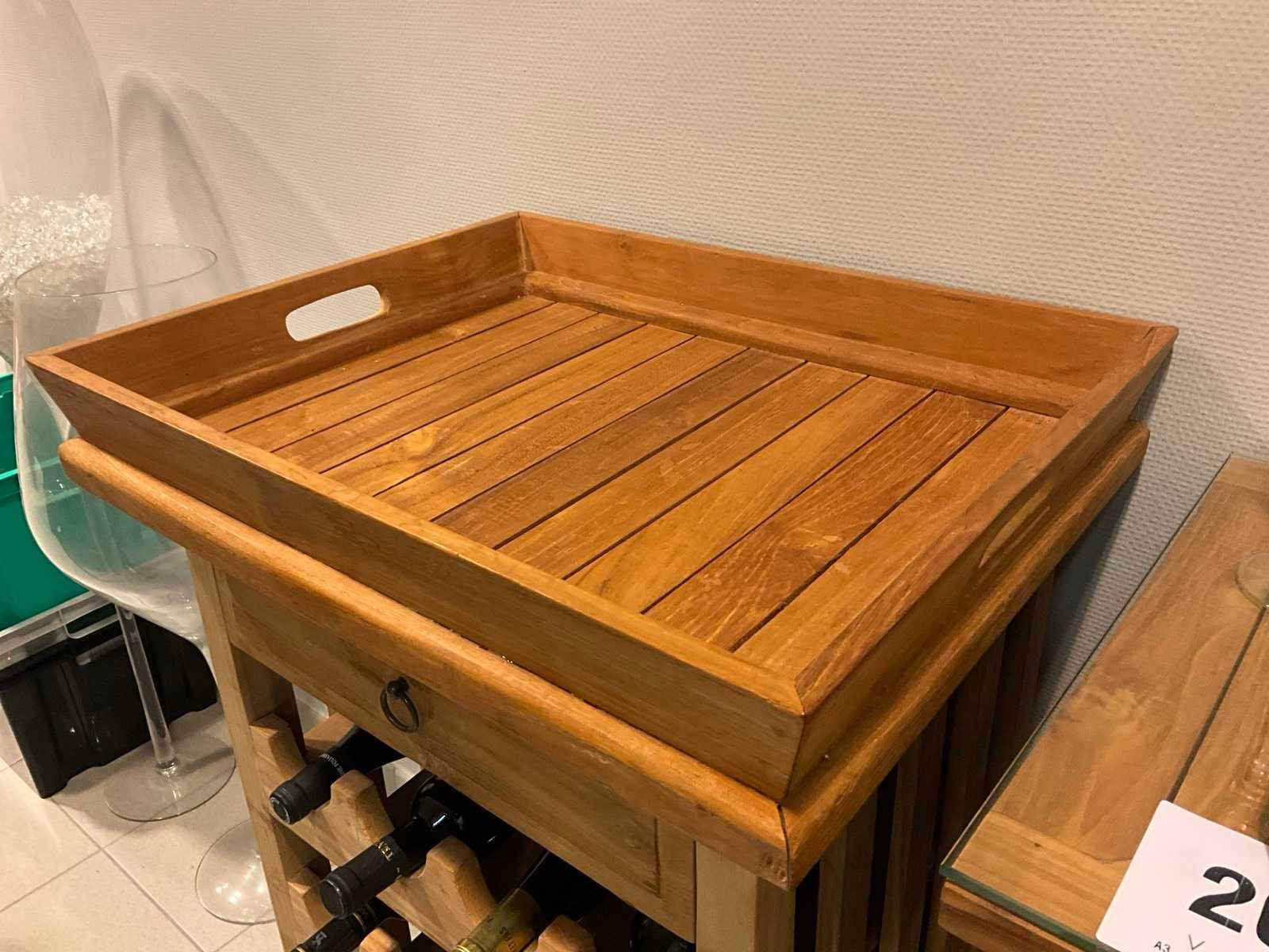 Compleet met dienblad en 16 diverse wijnen. Nee Totale afmeting L: 53cm Totale afmeting Breedte: 40cm Totale afmeting Hoogte: 90cm