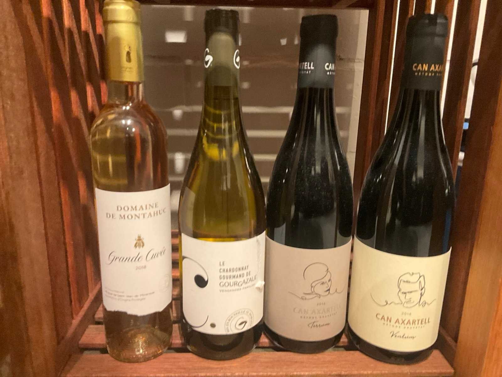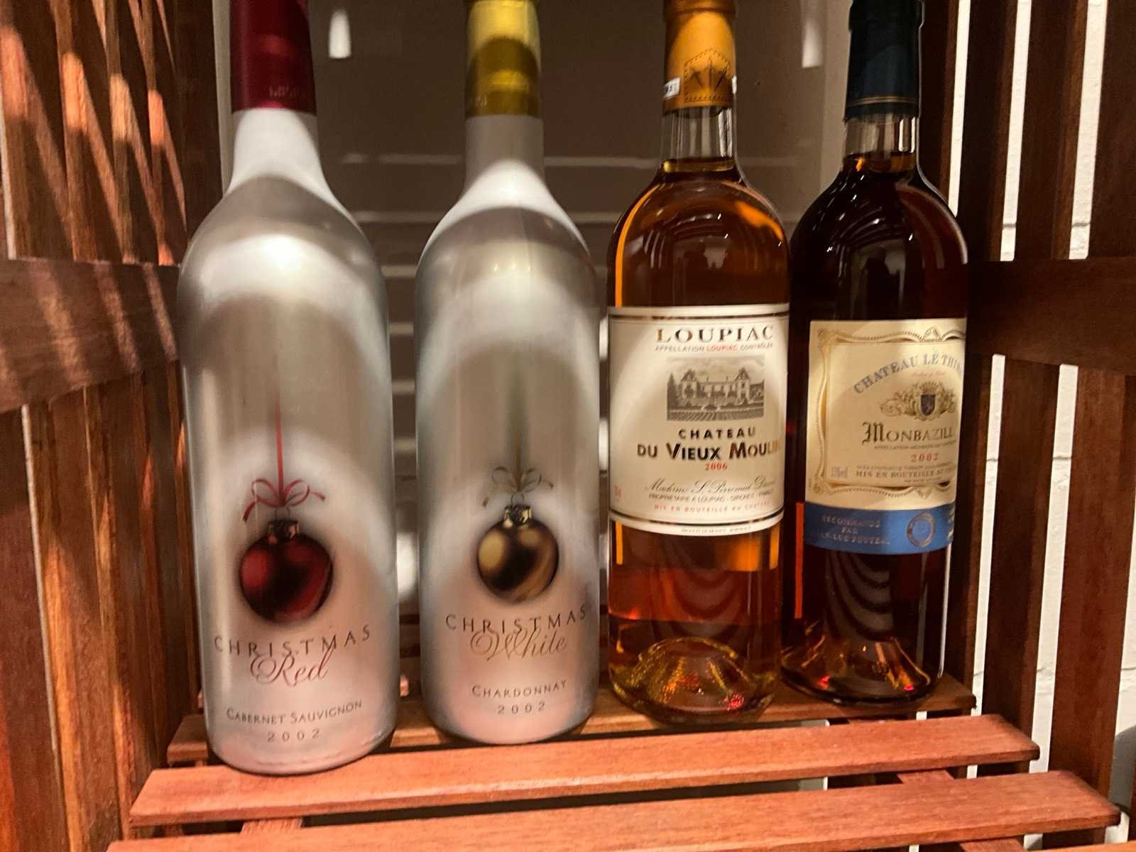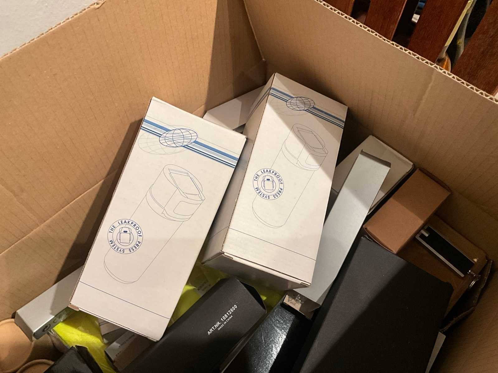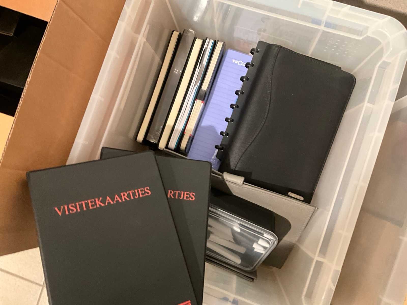 Waaronder 17fl diverse wijnen, 2 houten opbergrekken, diverse glazen, geschenkartikelen, wegwerpbekers, kurkentrekkers, diverse Balmain balpennen, enige kantoorartikelen Nee