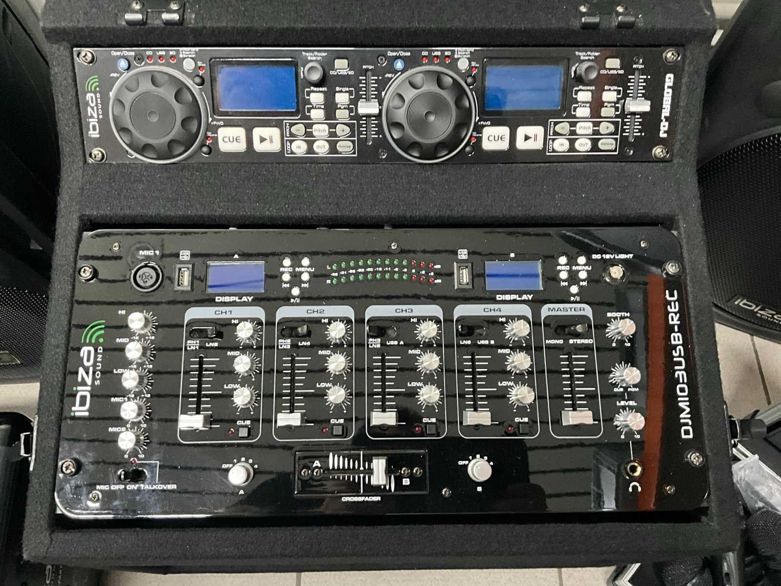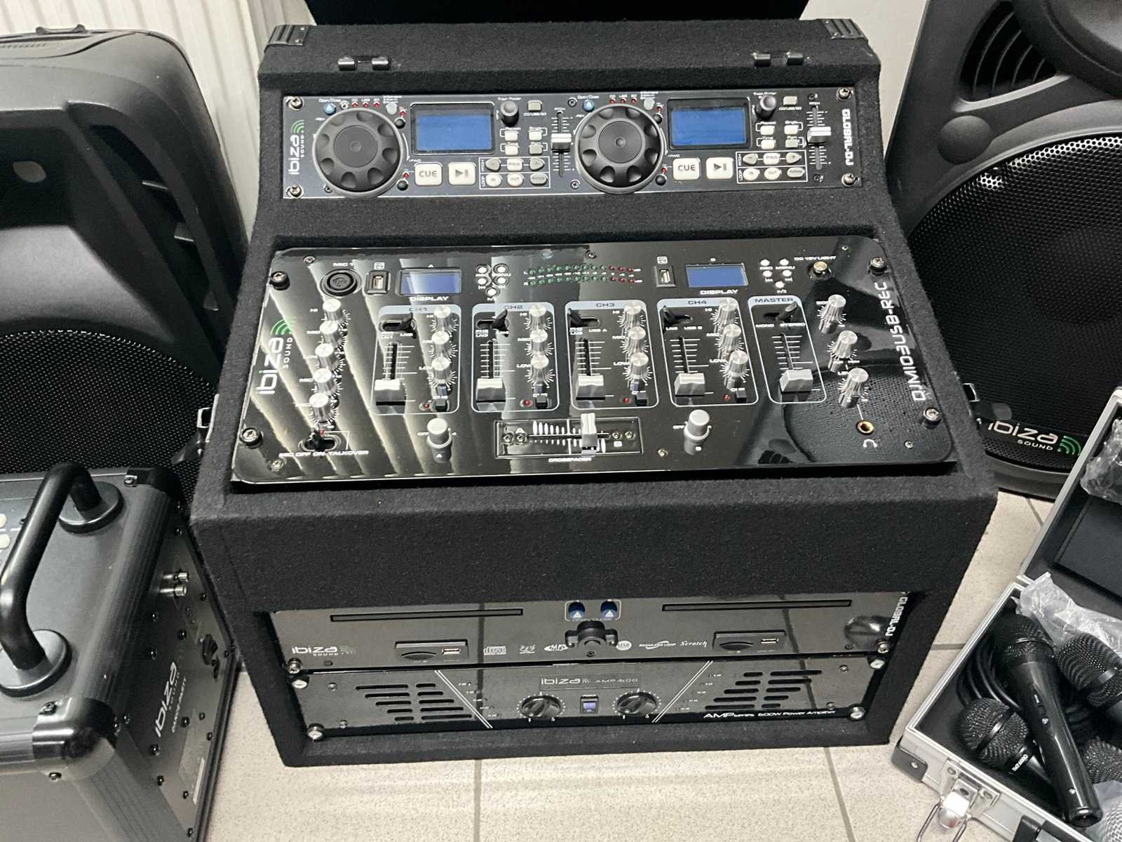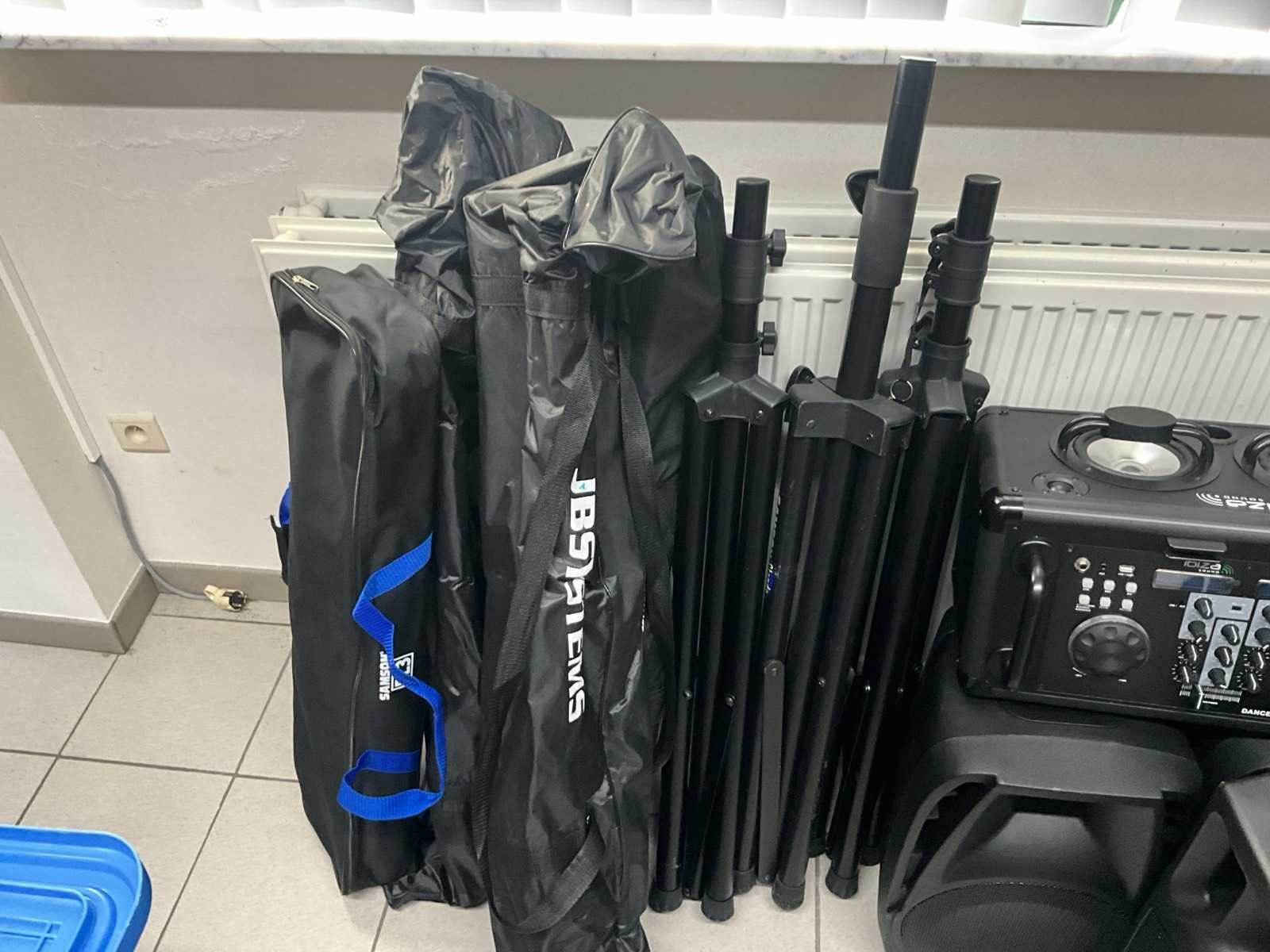 Waaronder 2x Ibizasound mengpaneel, 2x Ibizasound speaker, 2x Divine luidspreker, 1x QTX luidspreker, 5 diverse microfoons waaronder Sennheiser, 9x diverse portafoons, 2 diverse platenspelers Lenco, 6 diverse statieven, 1x flightcase en diverse bekabeling, Hifi systeem Pioneer Nee