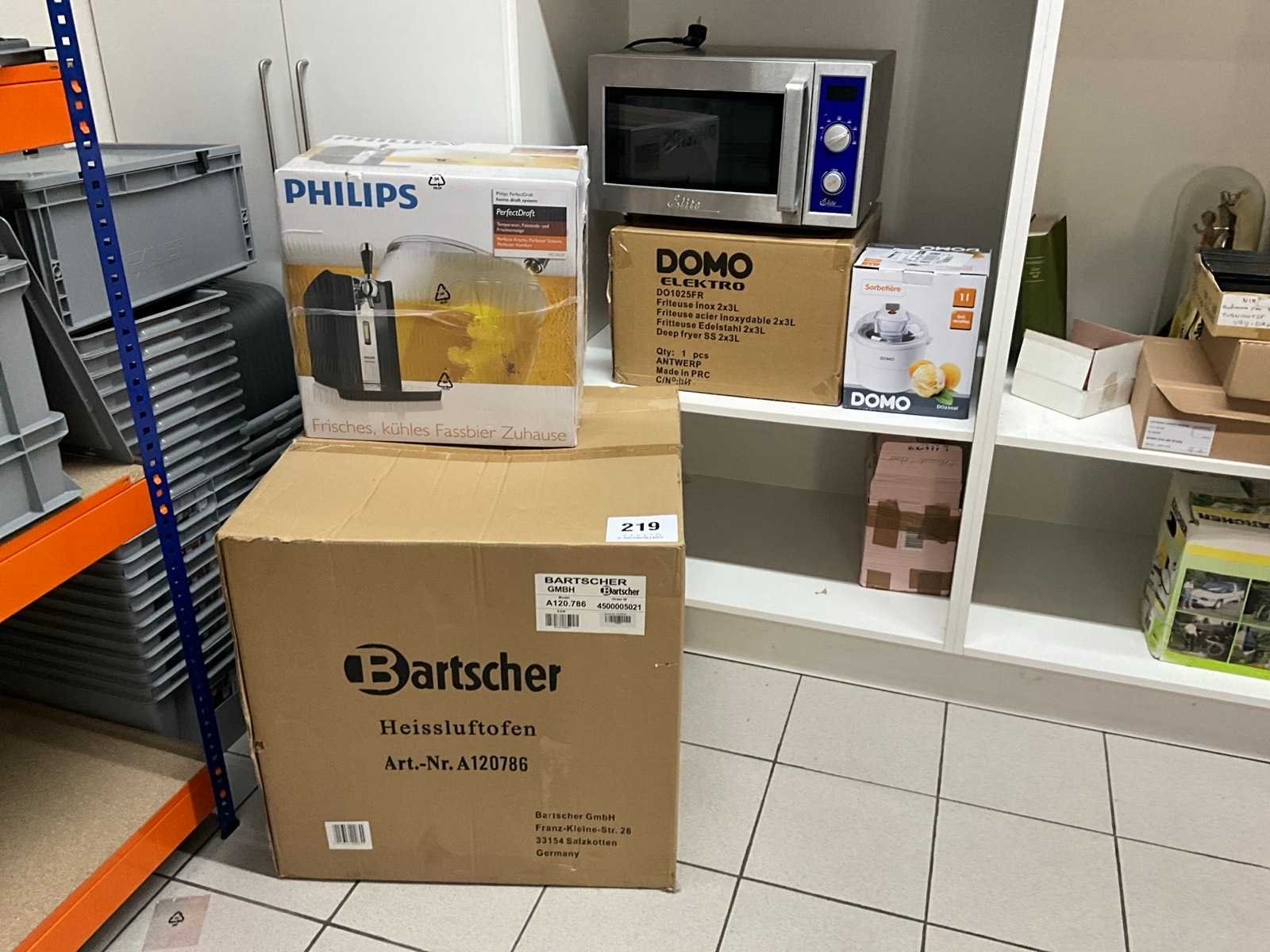 Waaronder Heteluchtoven BARTSCHER A120, Philips PerfectDraft, microgolf Elite, friteuse Domo, sorbetière Domo Nee