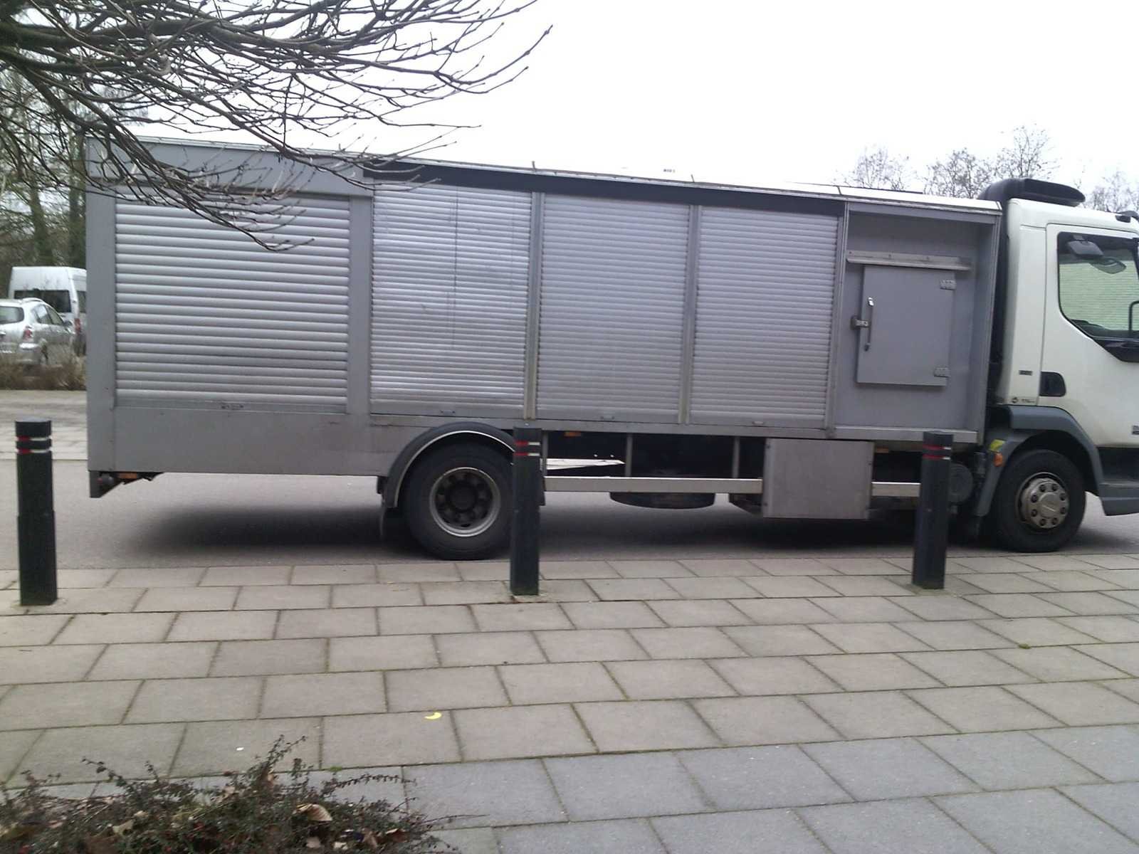 Opbouw (origineel op Daf CF) Frigo: 80cm diep x 160cm breed x 130cm hoog Open deel midden: 310cm lang Laadbak achteraan: 165cm x165cm hoog x 210cm breed Afmeting: 600cm lang x 222cm breed x 175cm hoog Inclusief koelcompressor en spatborden No Lengte: 600cm Breedte: 222cm Hoogte: 175cm Leveringsvoorwaarden: Niet gefundeerd - onverpakt