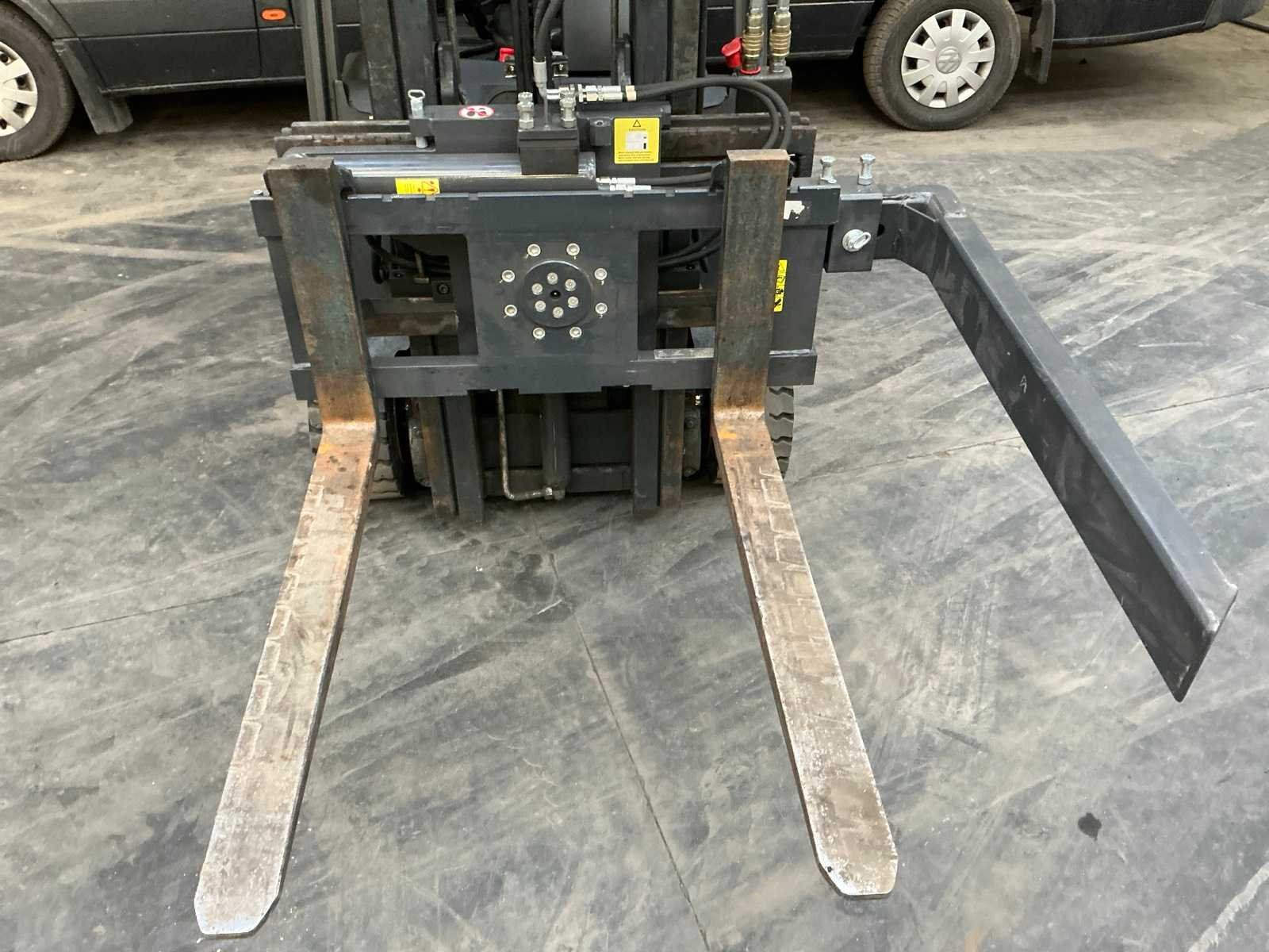 Voor heftruck met FEM 2 vorkenbord , capaciteit 2500 kg Nee Merk: MAC Type: 180 °Rotator Bouwjaar: 2024 Eigen gewicht: 250kg Totale afmeting L: 1200mm Totale afmeting Breedte: 250mm Totale afmeting Hoogte: 600mm